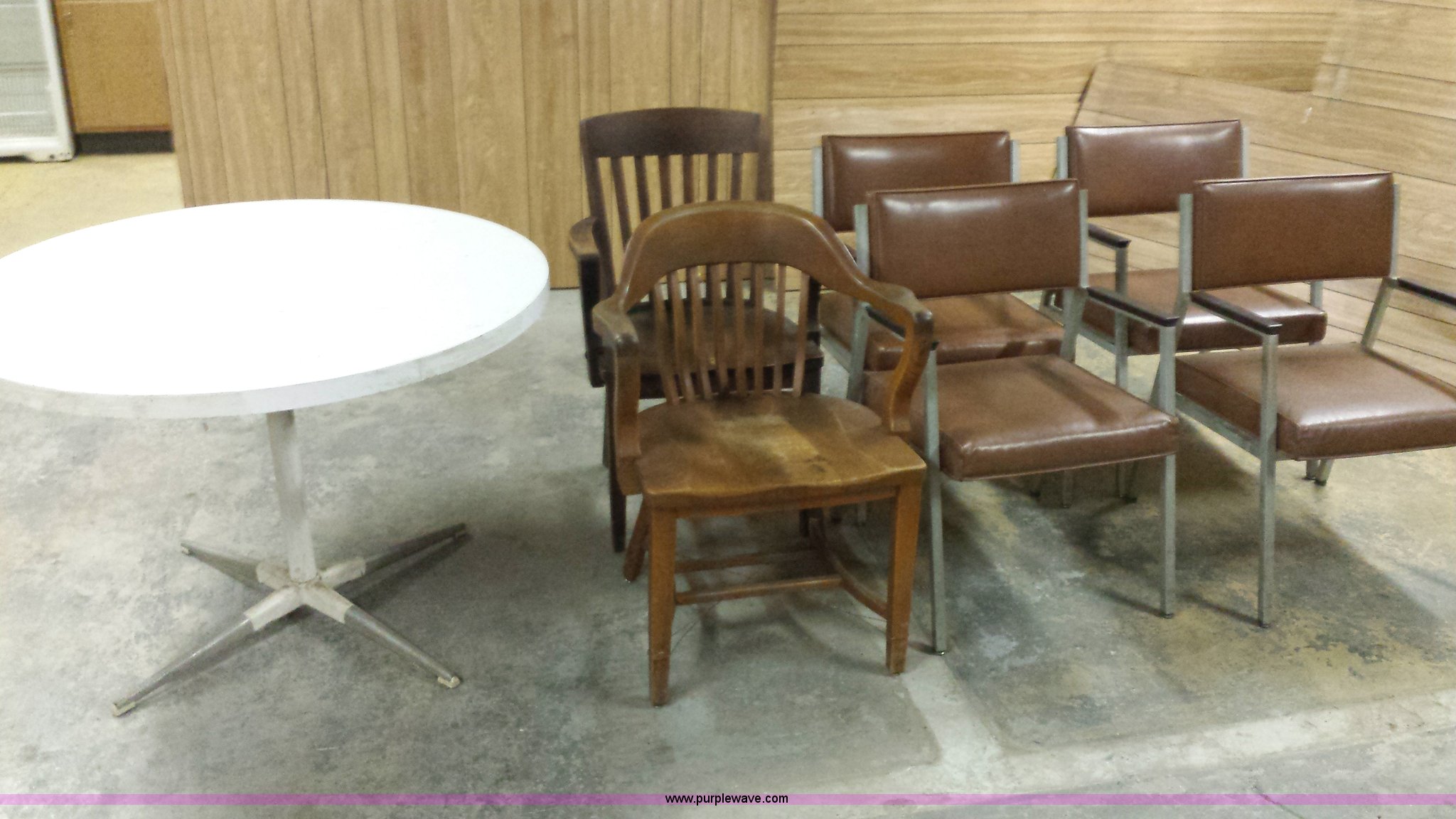 Purple Wave is selling a used Furniture in Missouri. This item is a Assorted tables and chairs with the following: Assorted tables and chairs. City of Higginsville. 1922 Main. Higginsville, MO 64037
