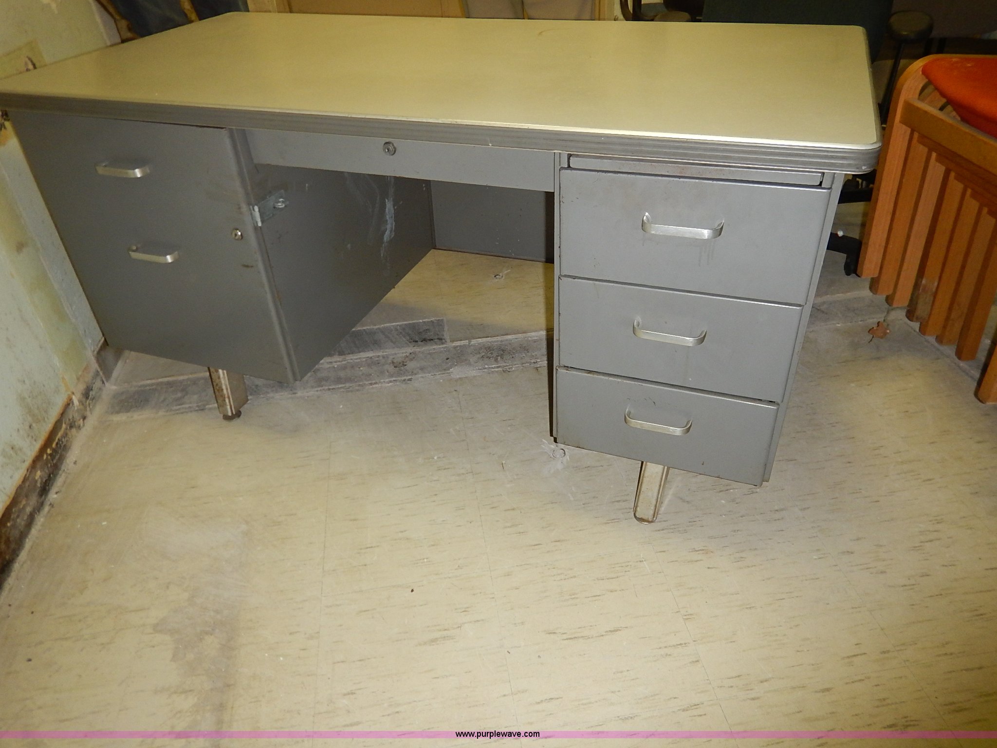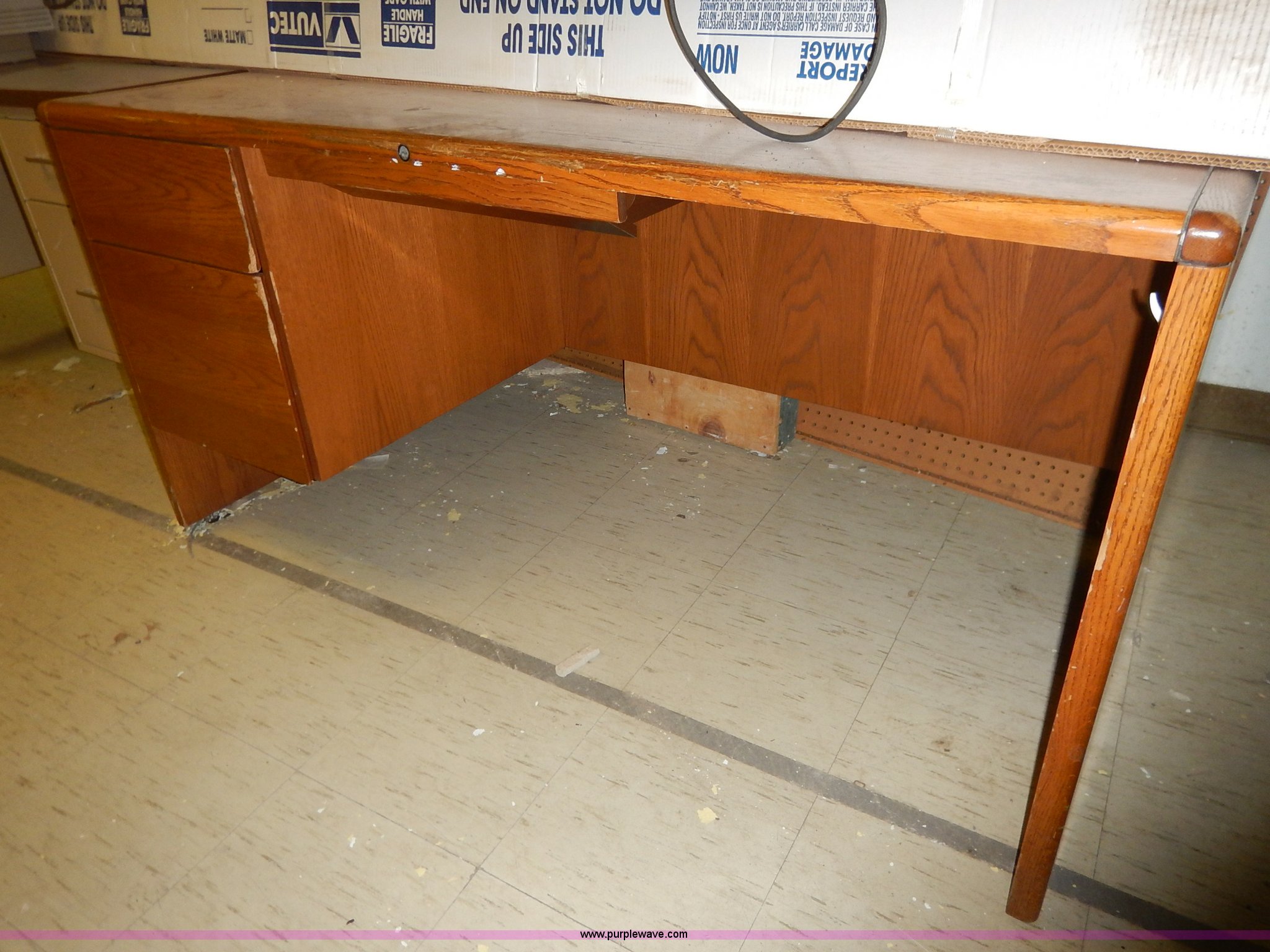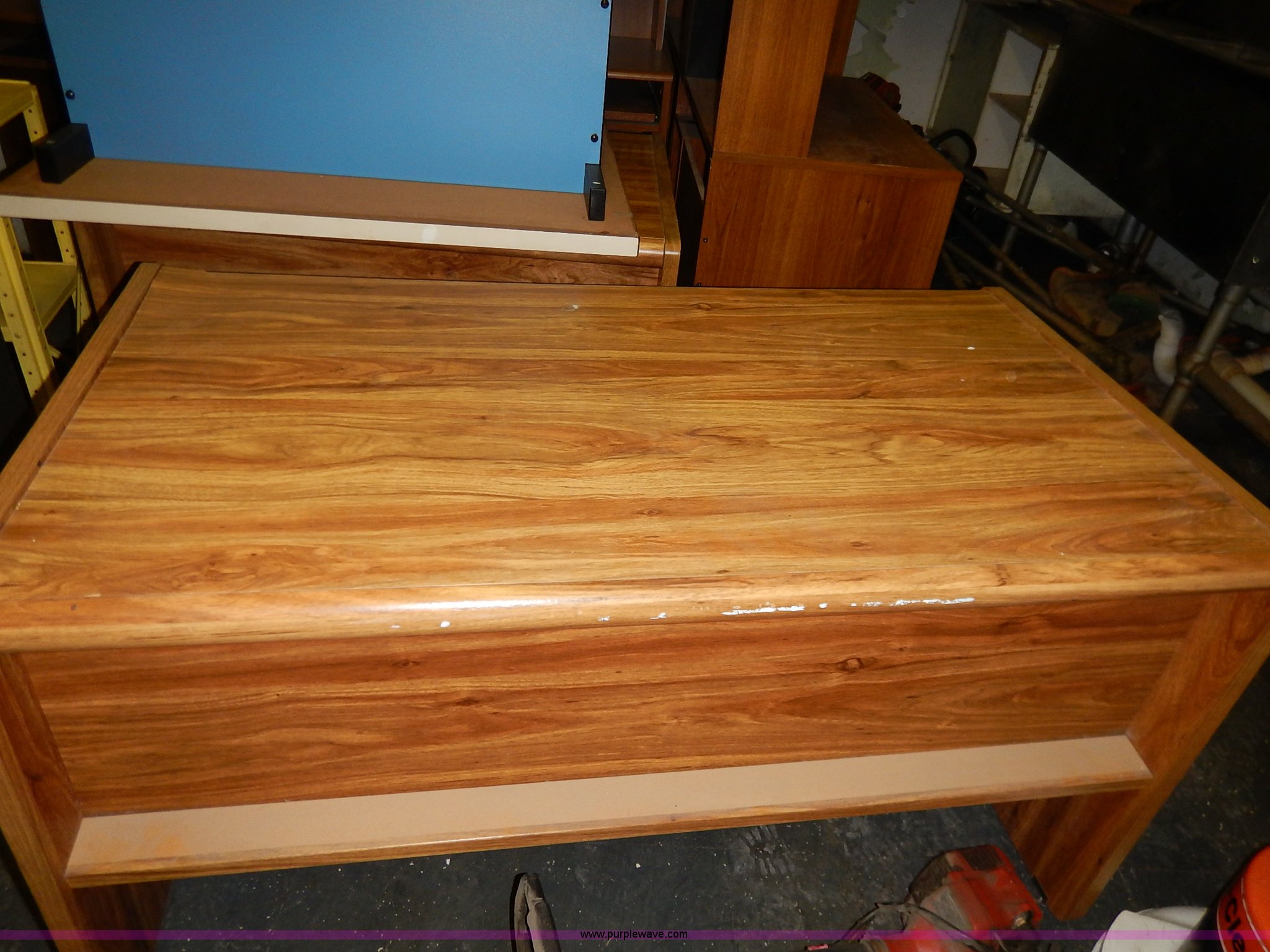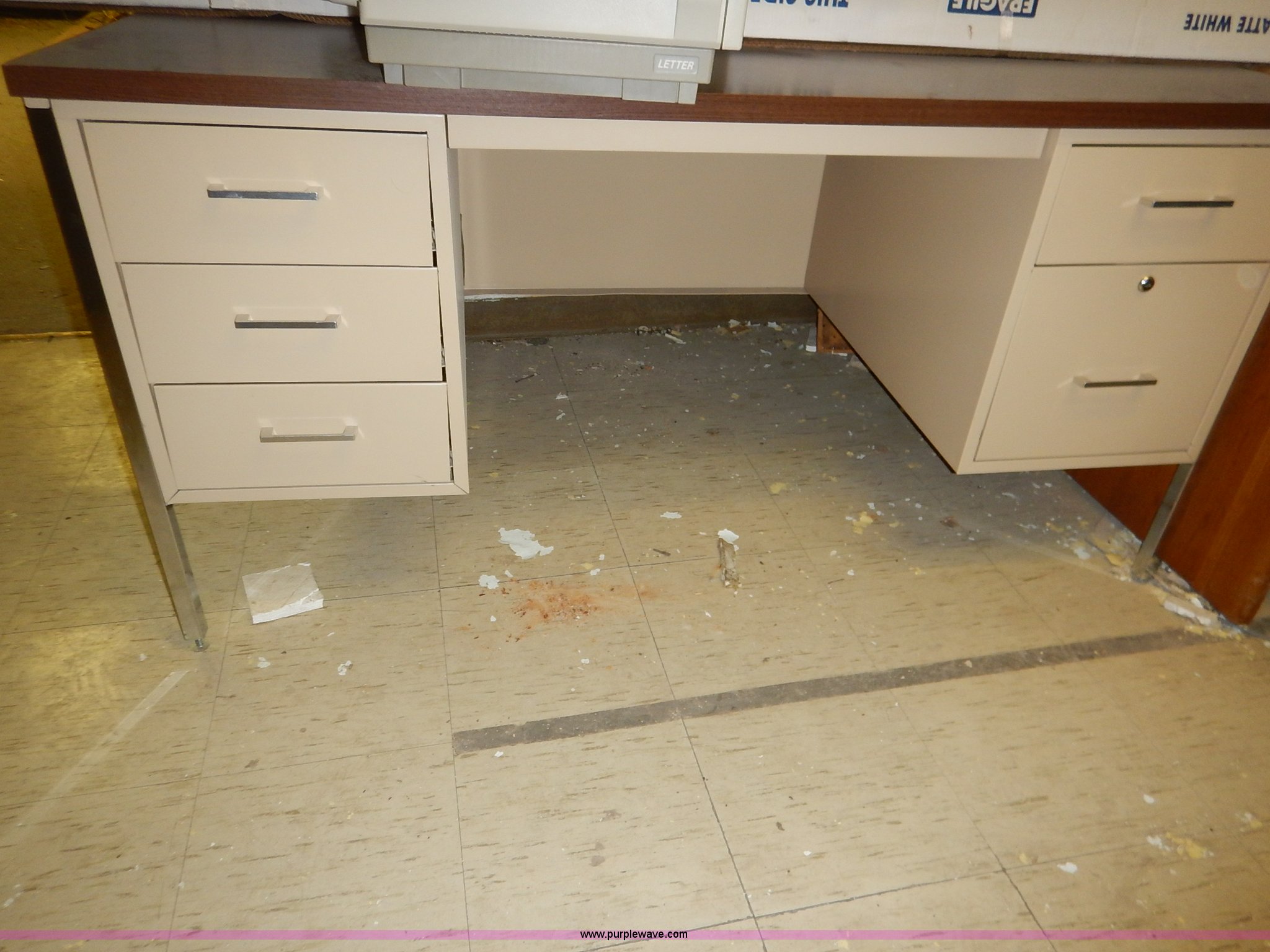 Purple Wave is selling a used Office Supplies and Equip. in Kansas. This item is a Assorted office equipment with the following: (4) computer stands, (5) desks, (3) book shelves, (2) printer stands, (2) metal shelves