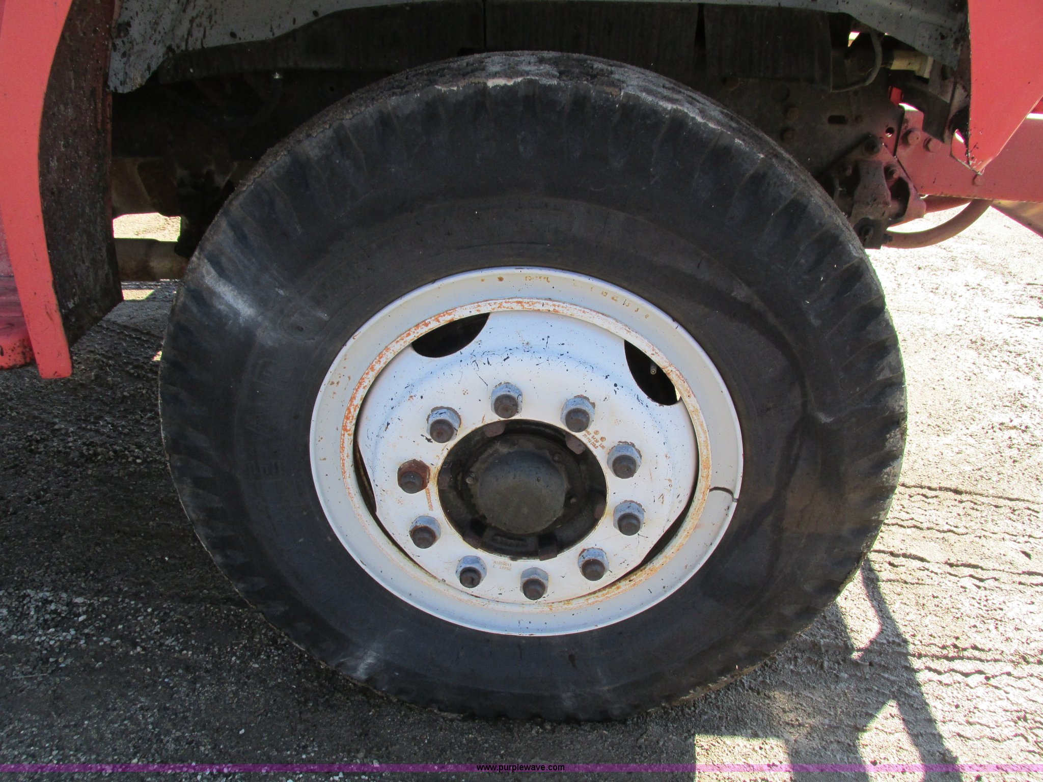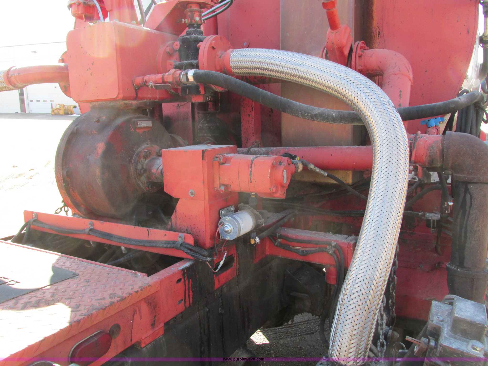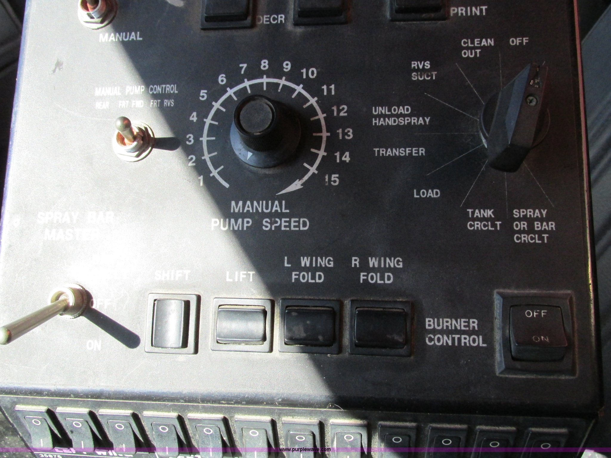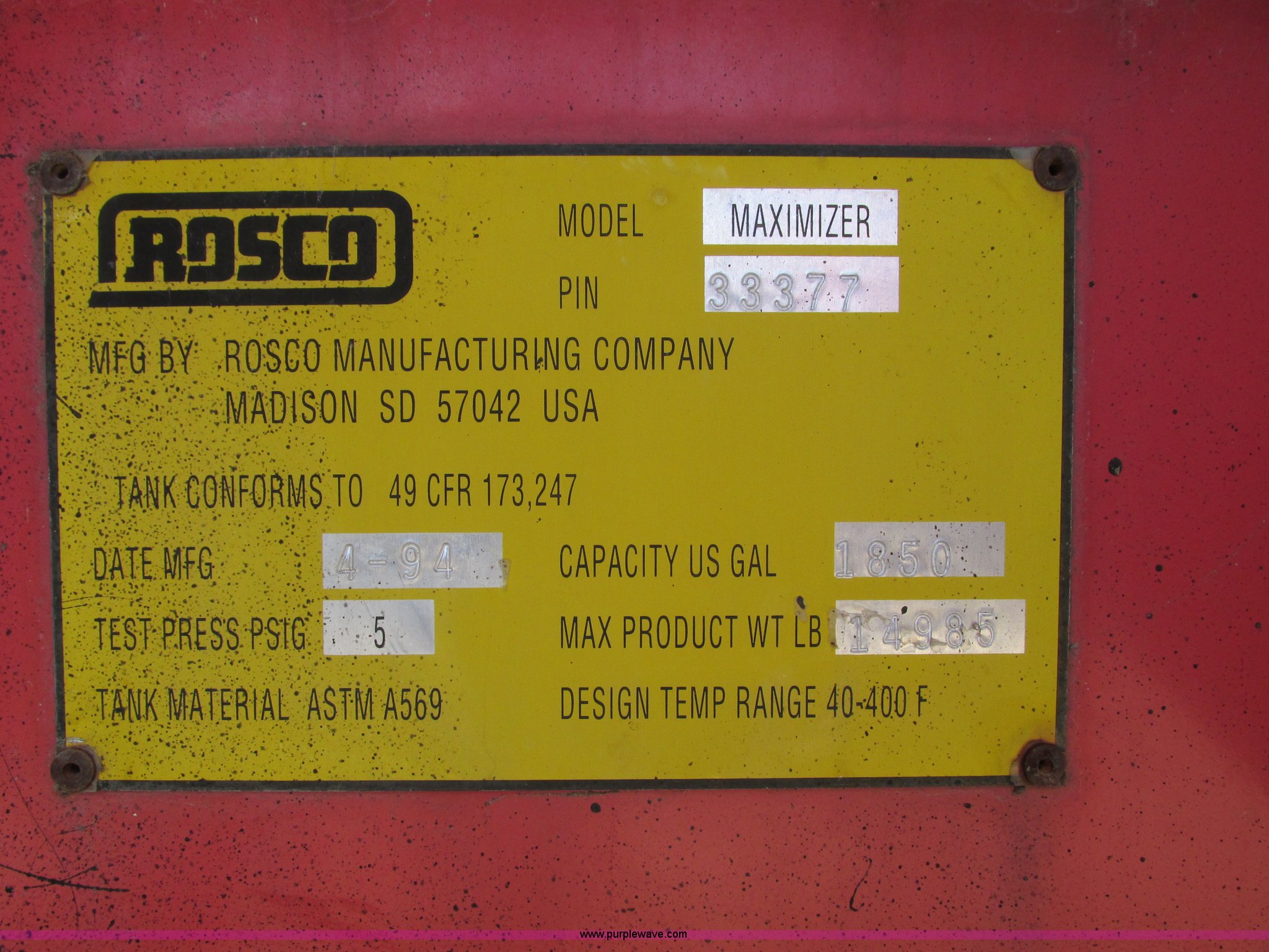 Purple Wave is selling a used Oil Distributor Truck in Iowa. This item is a 1994 Ford F700 oil distributor truck with the following: 9,419 miles on odometer, Cummins ISB 5.9L L6 diesel engine, Five speed manual transmission, Heat, AM/FM/cassette, Circulating fan, Rosco EZ-15 controller in cab, Rosco Maximizer distributor, 1,850 gallon tank, 14,985 lbs max weight, Ground speed external radar, (36) nozzles on spray bar, Left and right hydraulic fold, Hand wand hose, External wash down hose, External tank, Diesel fuel burner, Rear manual controls, Serial 33377, External hydraulic pump, Full time live hydrualics, 50 gallon fuel tanks, Front mount PTO, Spring suspension, Air brakes, 10.00-20 front tires, 11.00-20 rear tires, GVWR 33,000 lbs, FAWR 10,000 lbs, RAWR 23,000 lbs