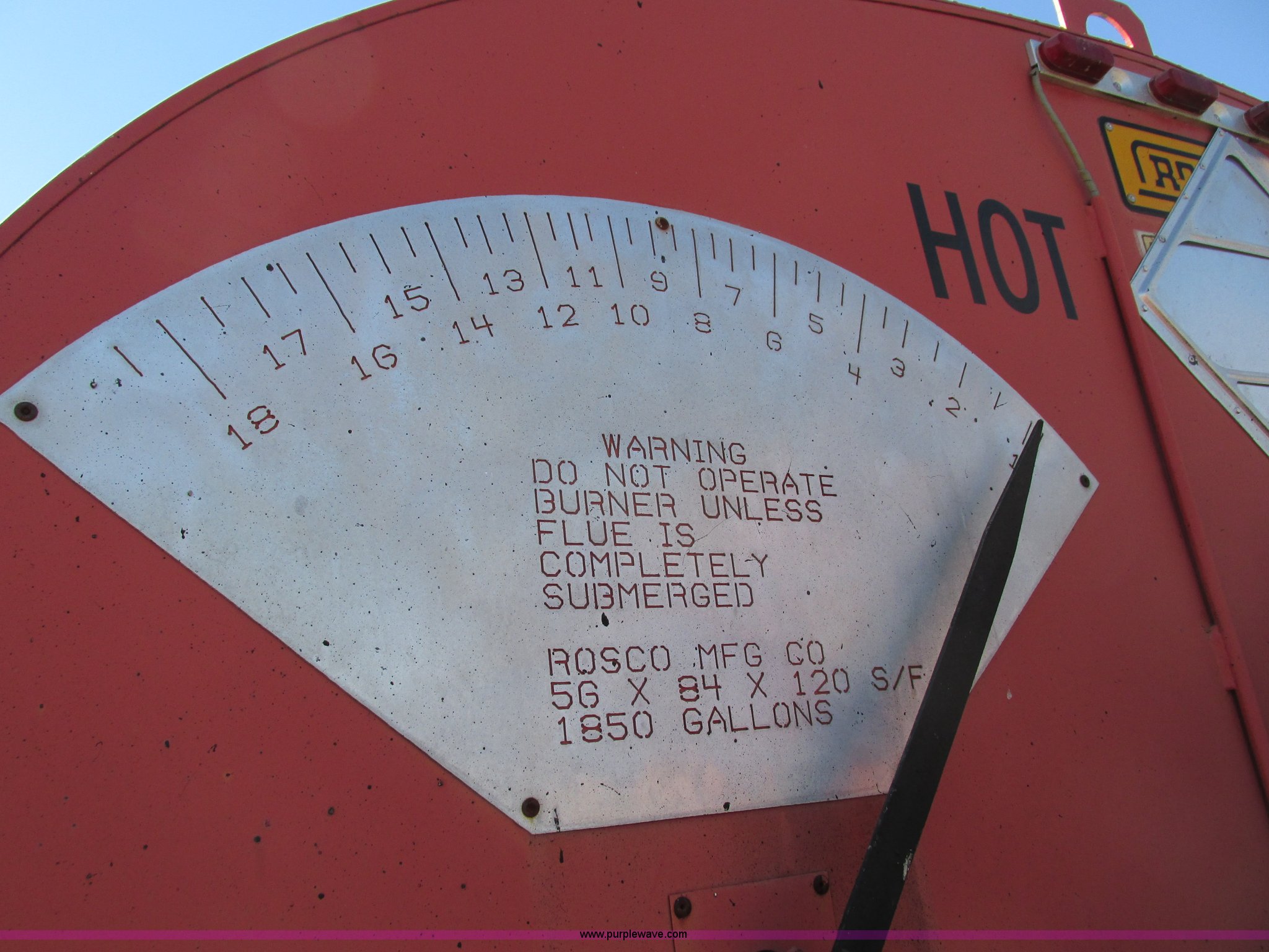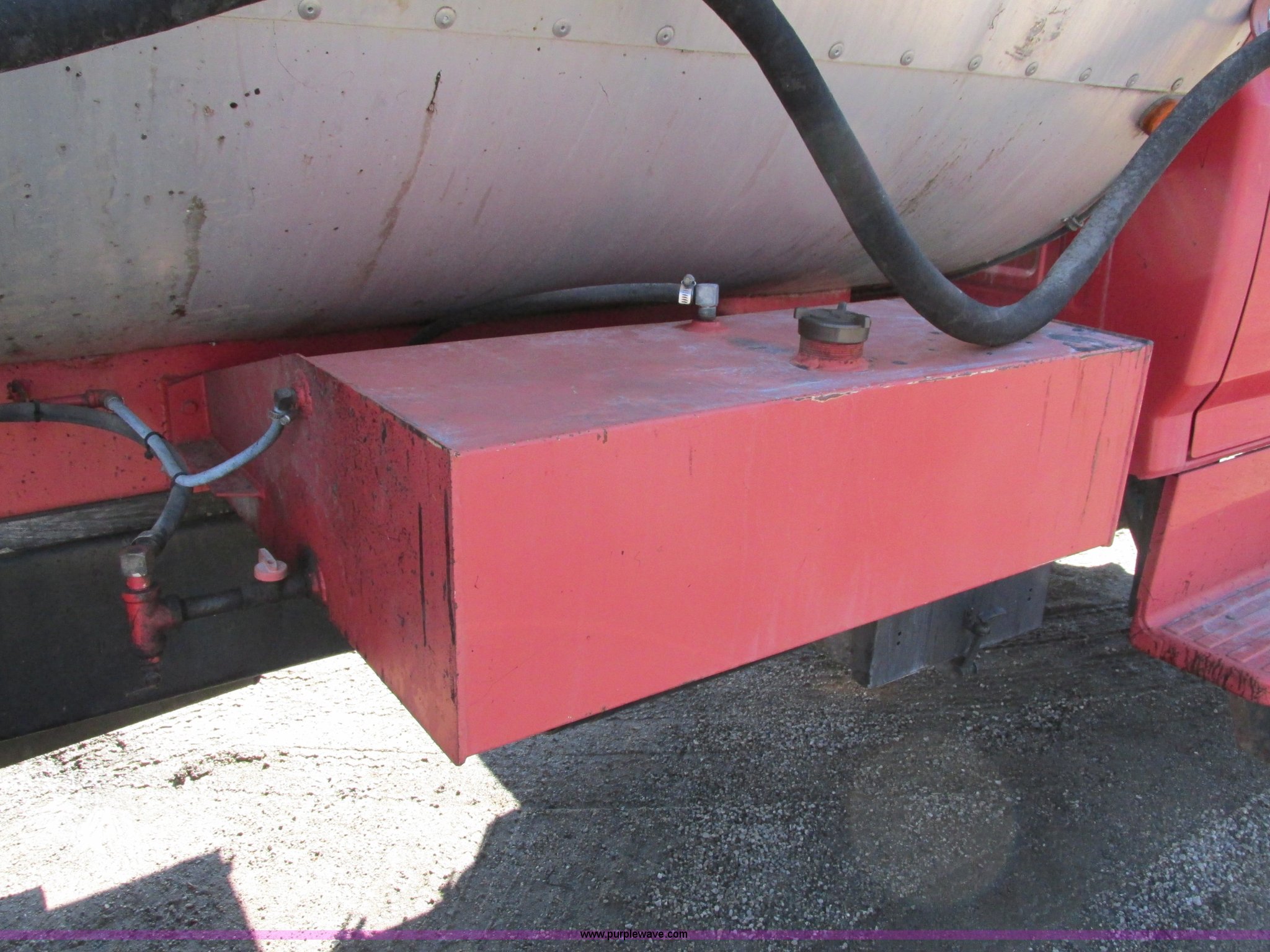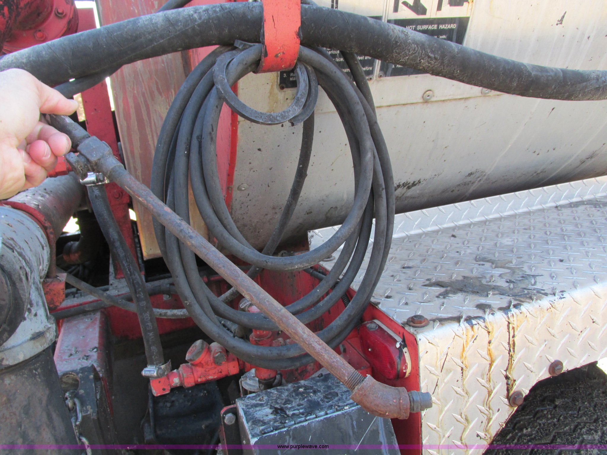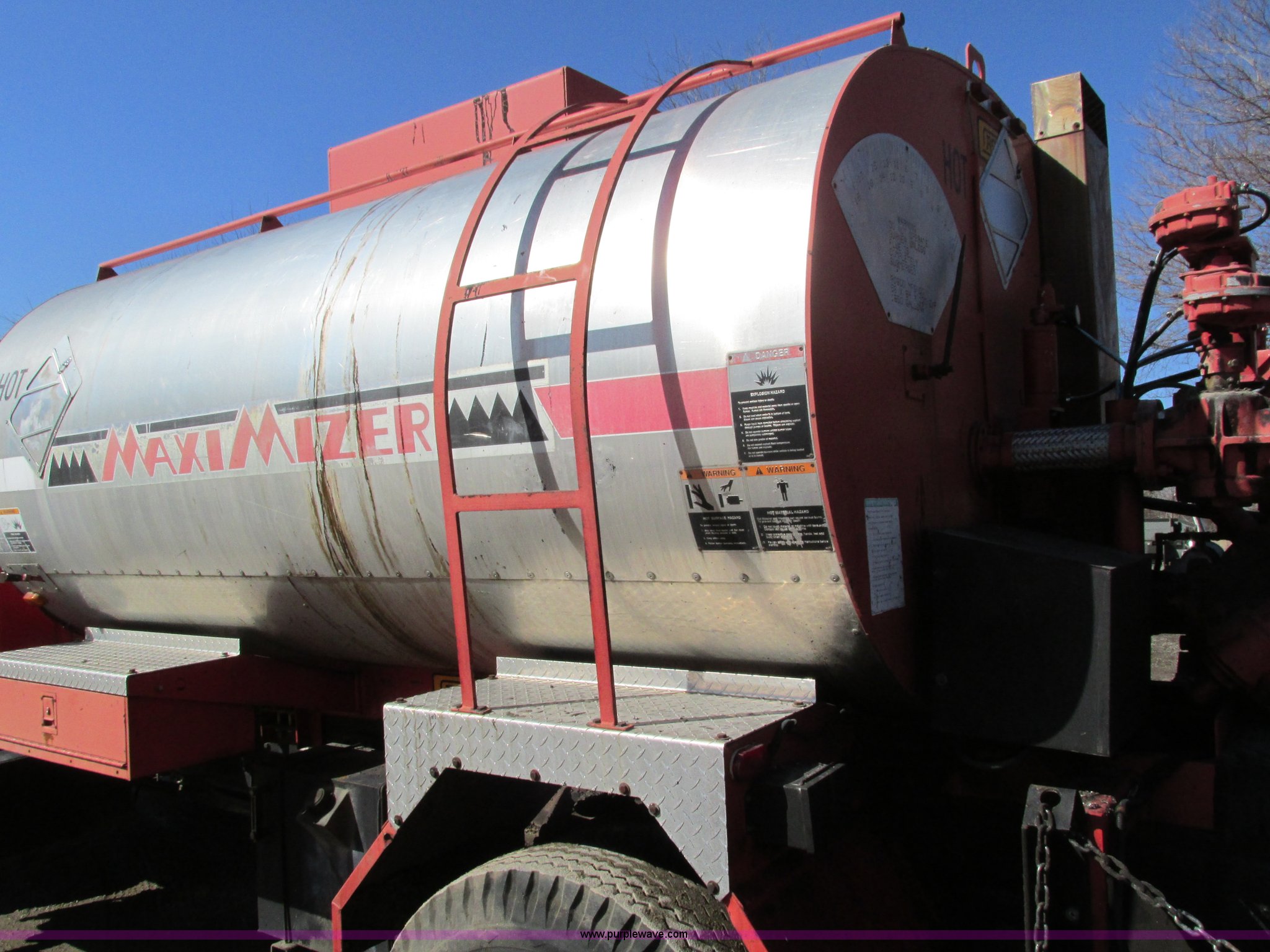 Purple Wave is selling a used Oil Distributor Truck in Iowa. This item is a 1994 Ford F700 oil distributor truck with the following: 9,419 miles on odometer, Cummins ISB 5.9L L6 diesel engine, Five speed manual transmission, Heat, AM/FM/cassette, Circulating fan, Rosco EZ-15 controller in cab, Rosco Maximizer distributor, 1,850 gallon tank, 14,985 lbs max weight, Ground speed external radar, (36) nozzles on spray bar, Left and right hydraulic fold, Hand wand hose, External wash down hose, External tank, Diesel fuel burner, Rear manual controls, Serial 33377, External hydraulic pump, Full time live hydrualics, 50 gallon fuel tanks, Front mount PTO, Spring suspension, Air brakes, 10.00-20 front tires, 11.00-20 rear tires, GVWR 33,000 lbs, FAWR 10,000 lbs, RAWR 23,000 lbs