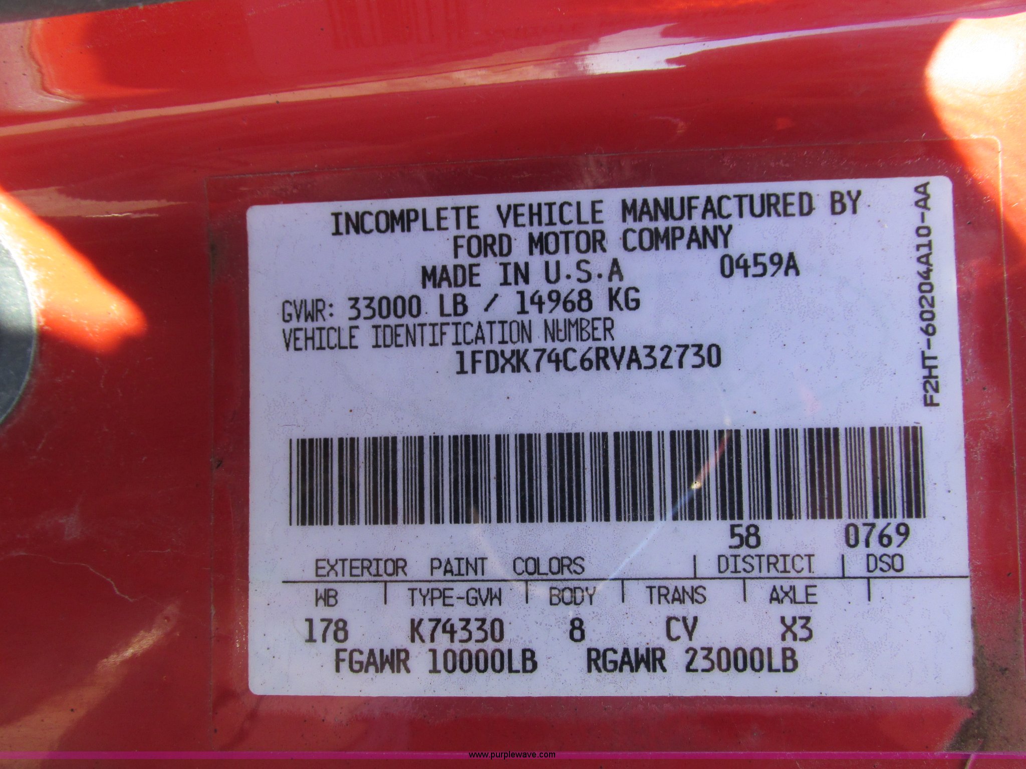 1994 Ford F700 oil distributor truck. 9,419 miles on odometer, Cummins ISB 5.9L L6 diesel engine, Five speed manual transmission, Heat, AM/FM/cassette, Circulating fan, Rosco EZ-15 controller in cab, Rosco Maximizer distributor 1,850 gallon tank, 14,985 lbs max weight, Ground speed external radar, (36) nozzles on spray bar, Left and right hydraulic fold, Hand wand hose, External wash down hose External tank, Diesel fuel burner, Rear manual controls, Serial 33377, External hydraulic pump Full time live hydrualics, 50 gallon fuel tanks, Front mount PTO, Spring suspension, Air brakes, 10.00-20 front tires, 11.00-20 rear tires, GVWR 33,000 lbs, FAWR 10,000 lbs, RAWR 23,000 lbs. 1FDXK74C6RVA32730. City of Burlington. 3510 Division Street. Burlington, IA 52601