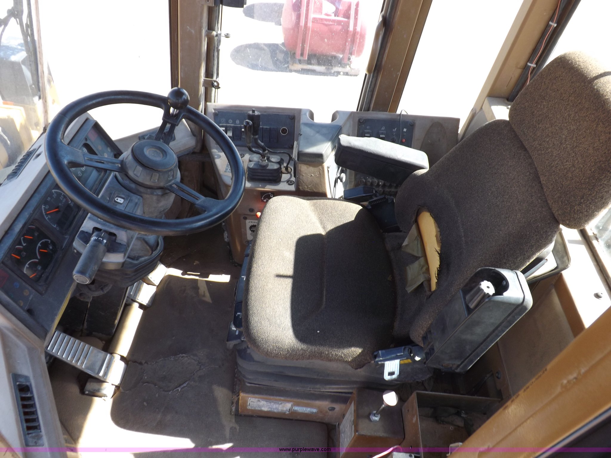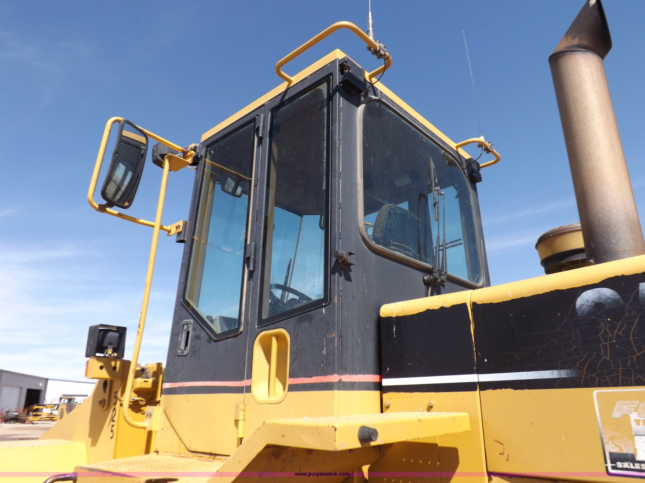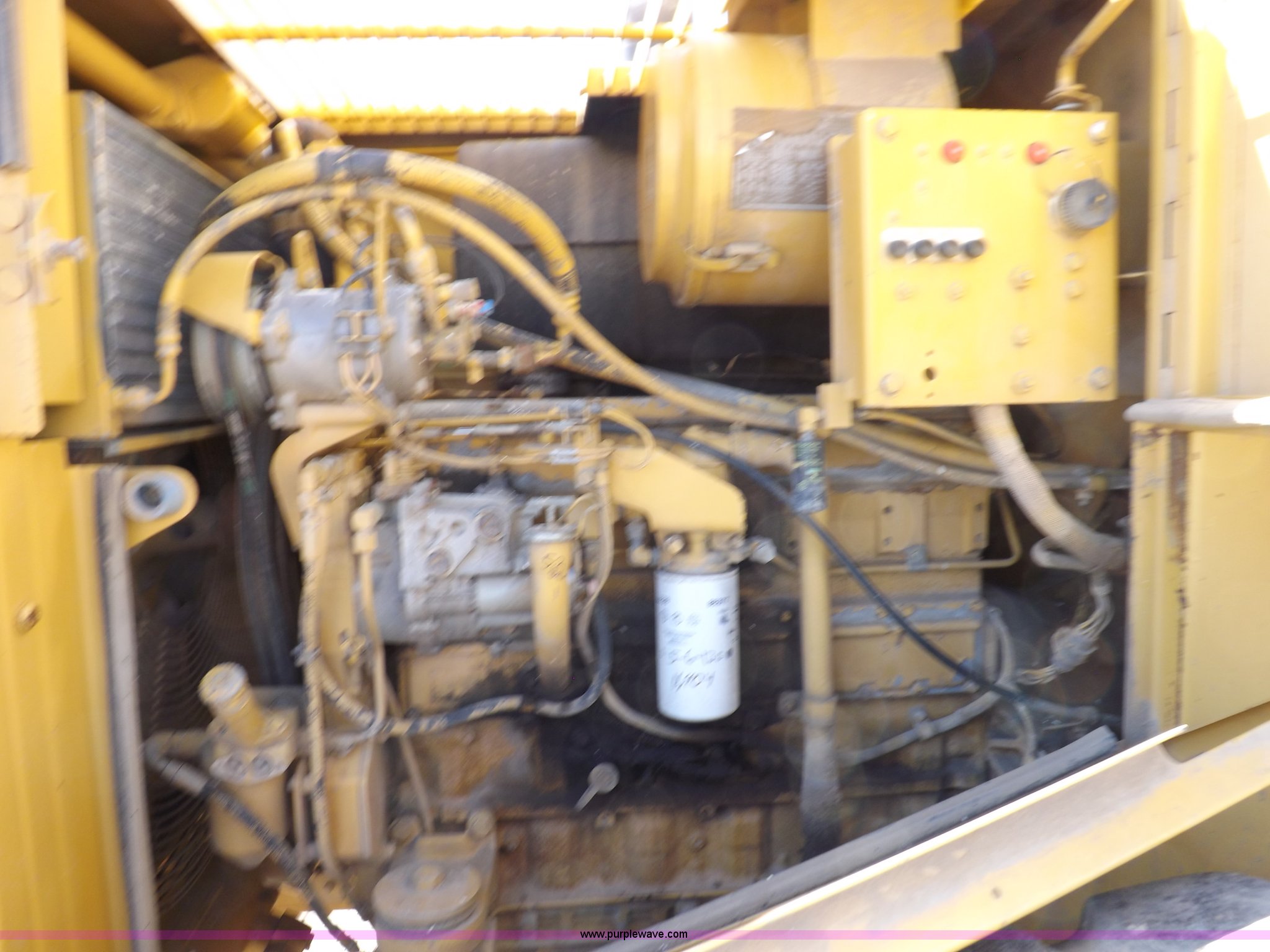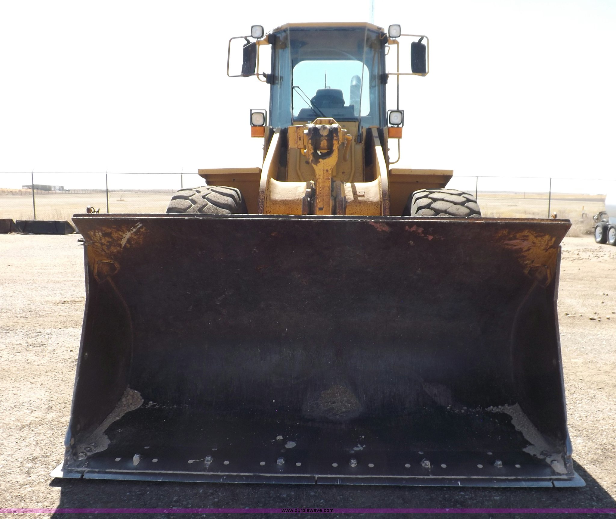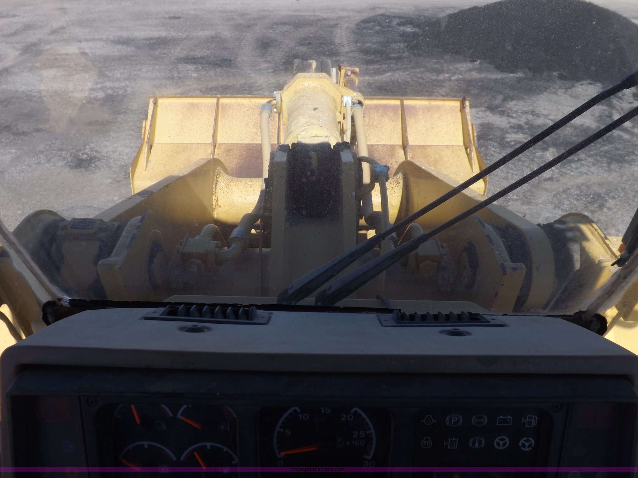 Purple Wave is selling a used Wheel Loader in Kansas. This item is a 1995 Caterpillar 950F Series II wheel loader with the following: 11,547 hours on meter, Caterpillar 3116 six cylinder turbo diesel engine, Shuttle shift transmission, 4F-4R gears, AC and heat, AM/FM/cassette, Tilt steering wheel, Two lever control, Front and rear wipers, Front and rear work lights, Caterpillar 9'W bucket, Approx. 3.5 yard capacity, Bolt-on cutting edge, 23.5-25 tires, 36,521 lbs. base operating weight, Interior/exterior cosmetic damage, Right front corner glass cracked, Seat upholstery damaged, Engine is weak, Serial 5SK01752
