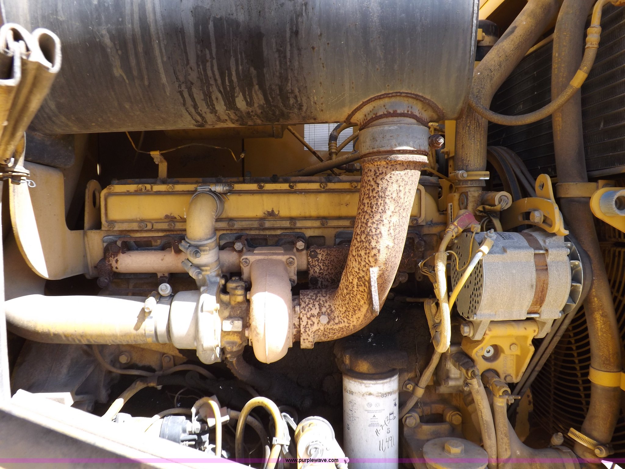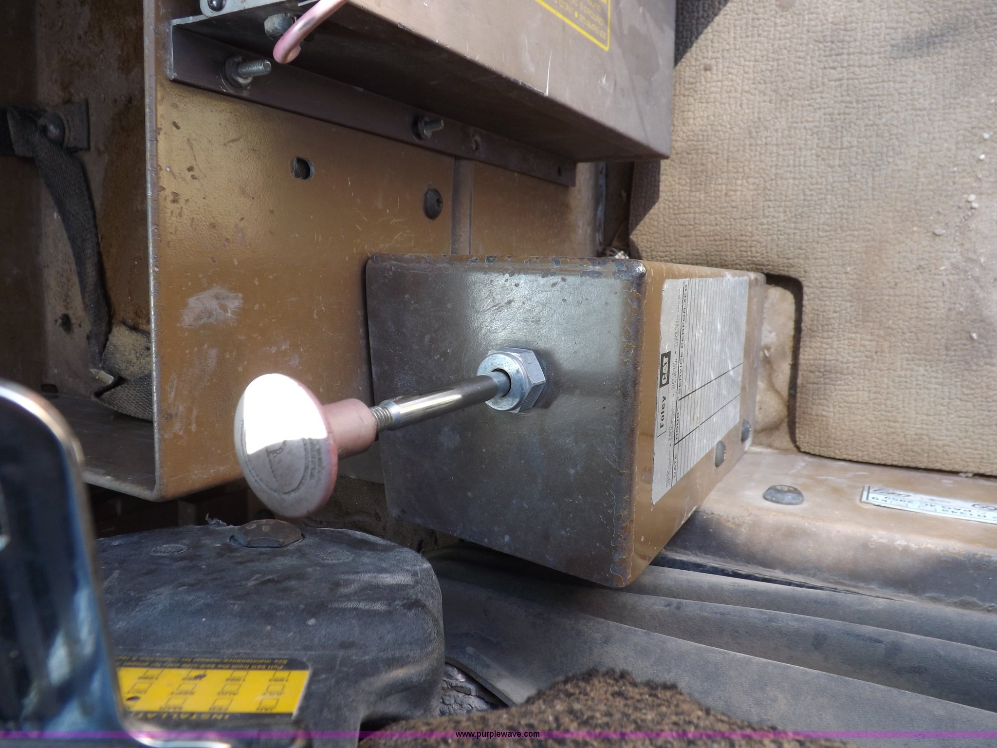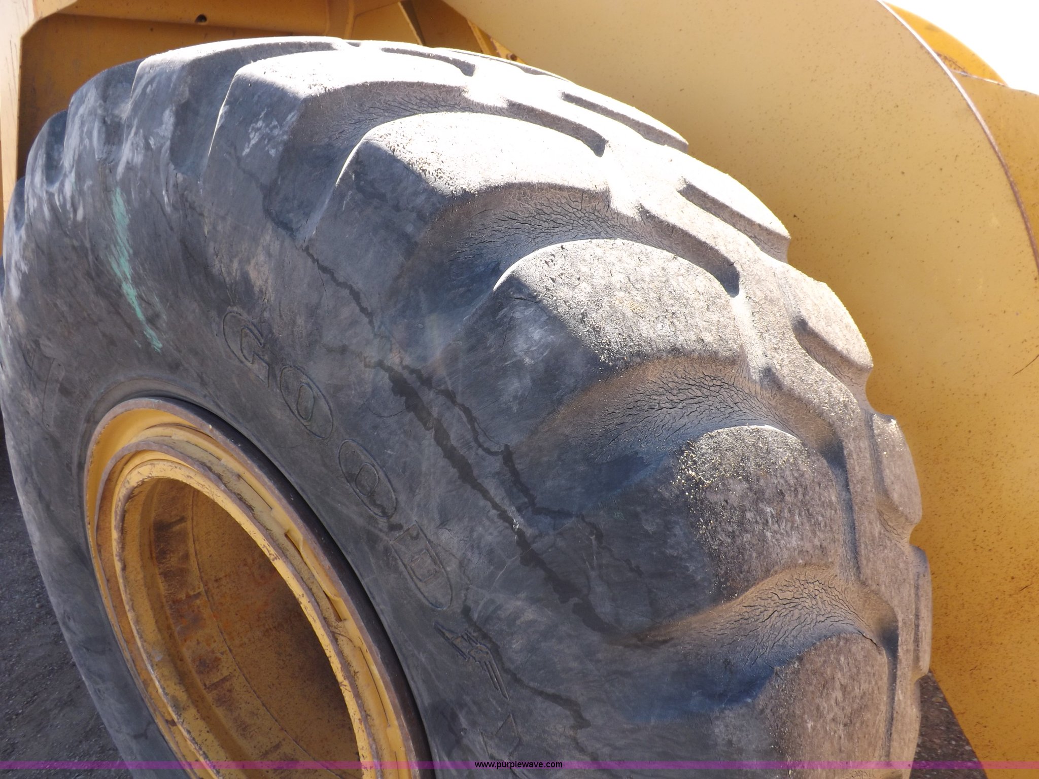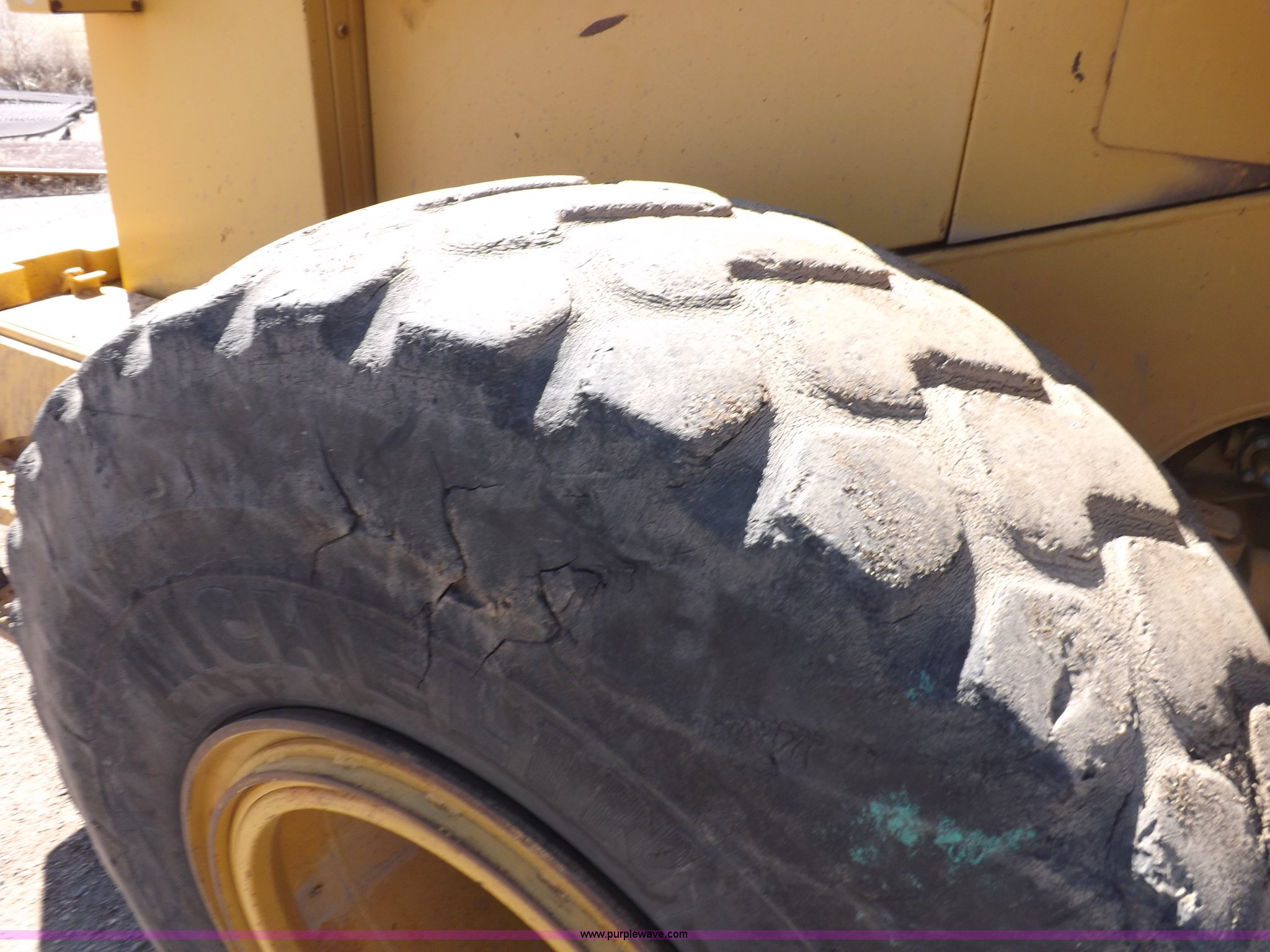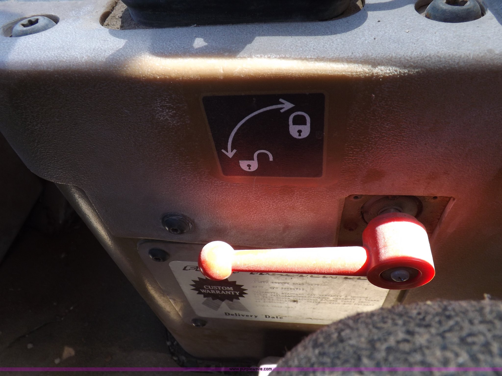 Purple Wave is selling a used Wheel Loader in Kansas. This item is a 1995 Caterpillar 950F Series II wheel loader with the following: 11,547 hours on meter, Caterpillar 3116 six cylinder turbo diesel engine, Shuttle shift transmission, 4F-4R gears, AC and heat, AM/FM/cassette, Tilt steering wheel, Two lever control, Front and rear wipers, Front and rear work lights, Caterpillar 9'W bucket, Approx. 3.5 yard capacity, Bolt-on cutting edge, 23.5-25 tires, 36,521 lbs. base operating weight, Interior/exterior cosmetic damage, Right front corner glass cracked, Seat upholstery damaged, Engine is weak, Serial 5SK01752