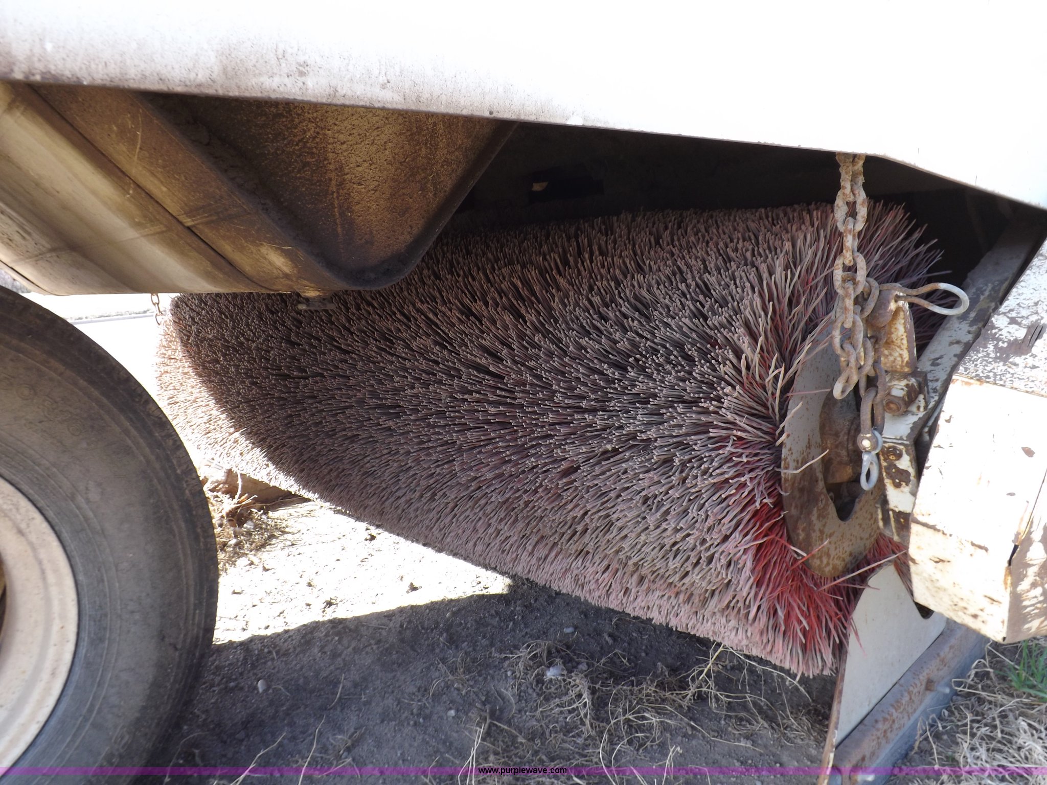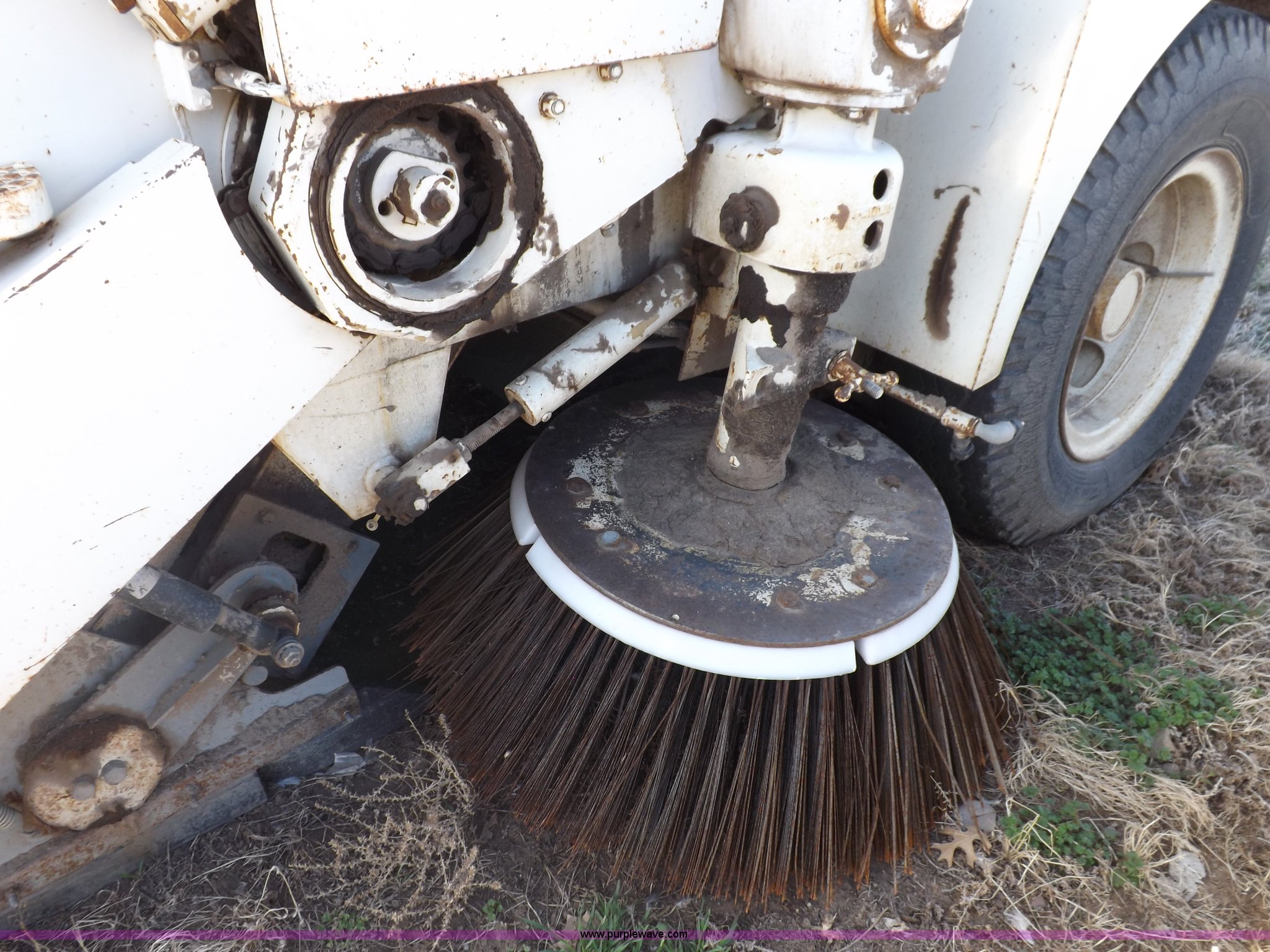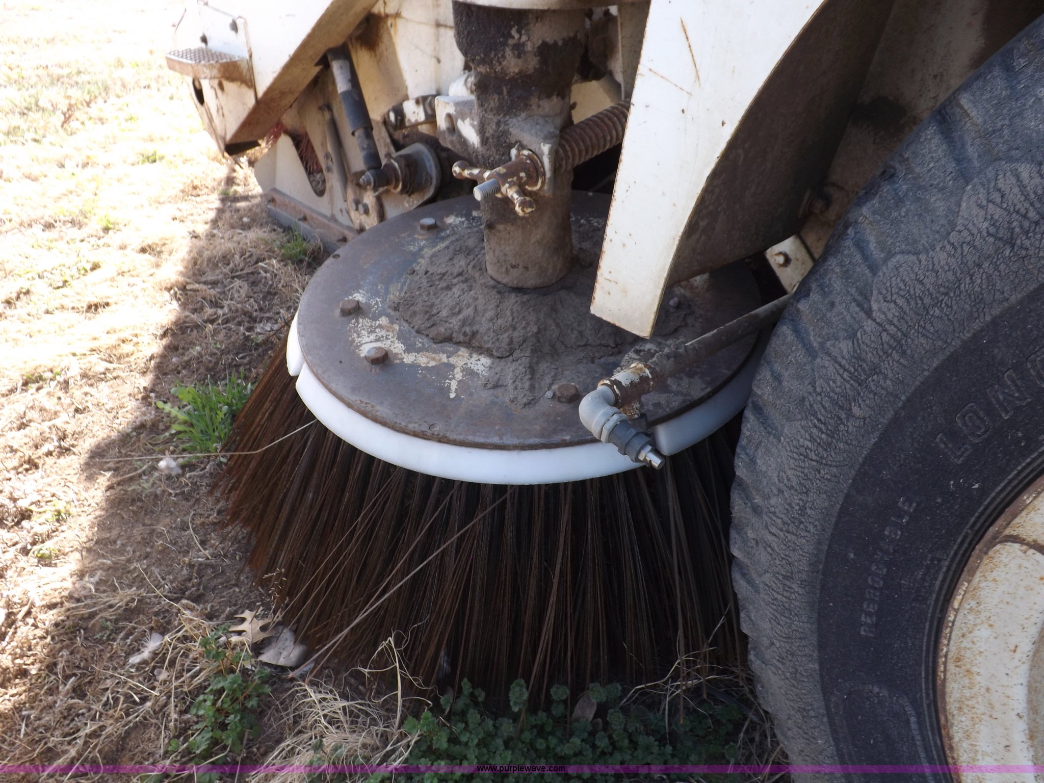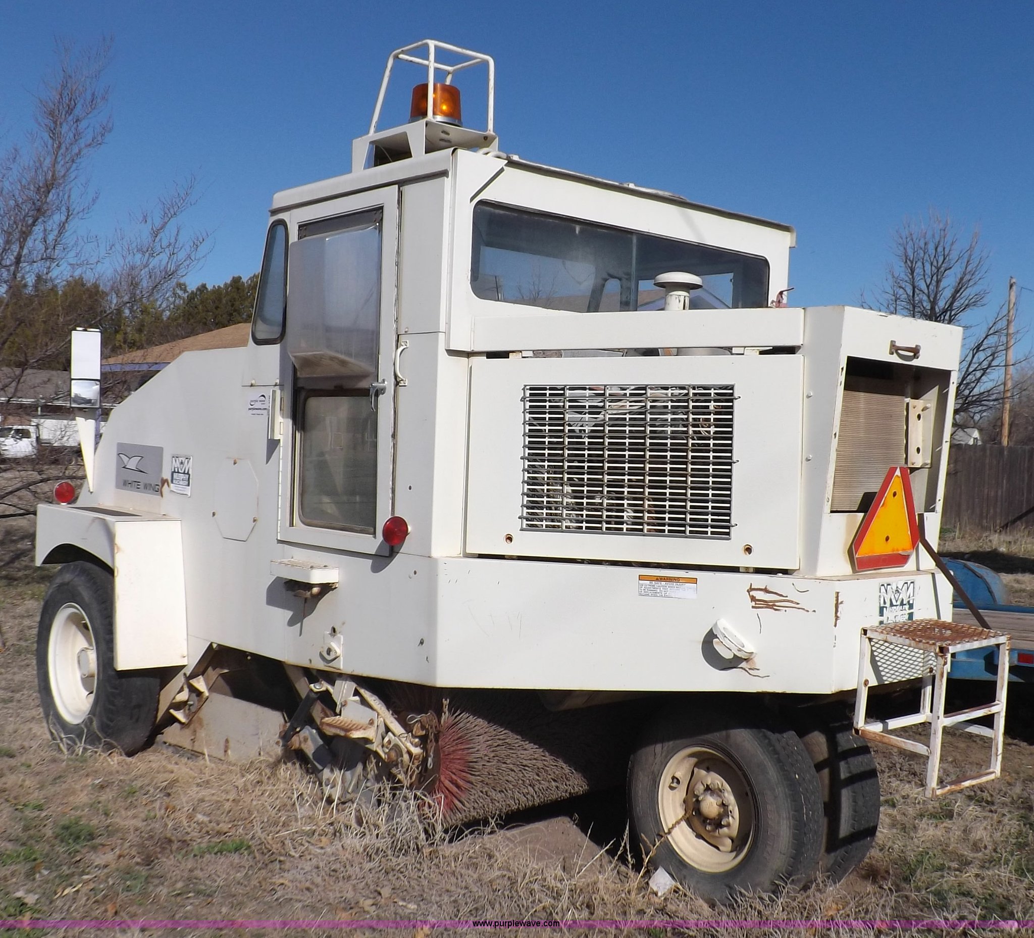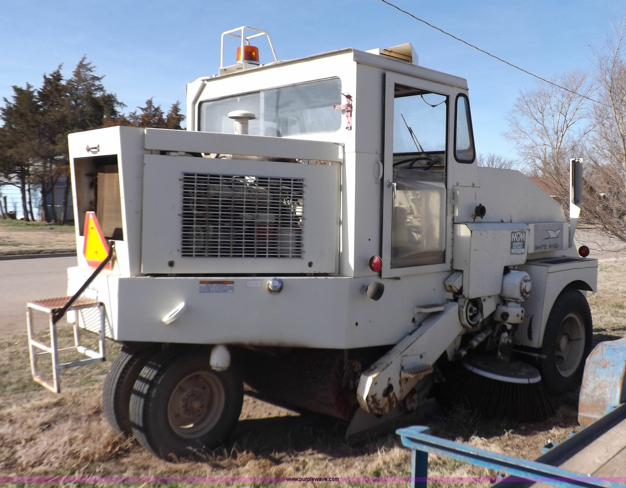 Purple Wave is selling a used Sweeper in Kansas. This item is a Elgin White Wing street sweeper with the following: 852 miles on odometer, 884 hours on meter, International 354 C.I.D. V8 gas engine, Two speed hydrostatic transmission, 200 gallon water tank, Four yard capacity hopper, 24"W curb broom, 5.5'W poly main broom, 10.00-20 drive tires, 7.50-16 steer tires, Operational when parked approx. one year ago, Serial T21615
