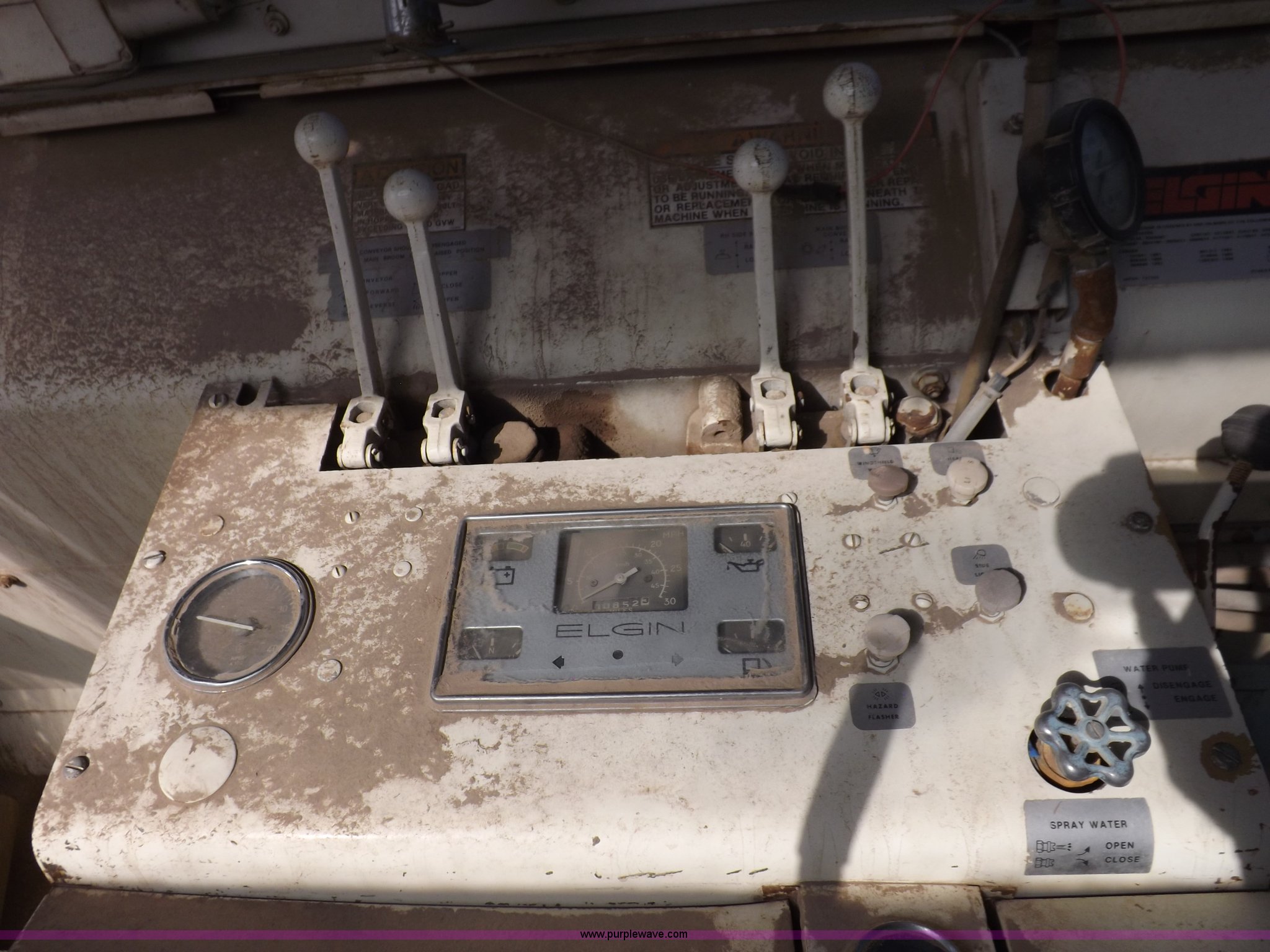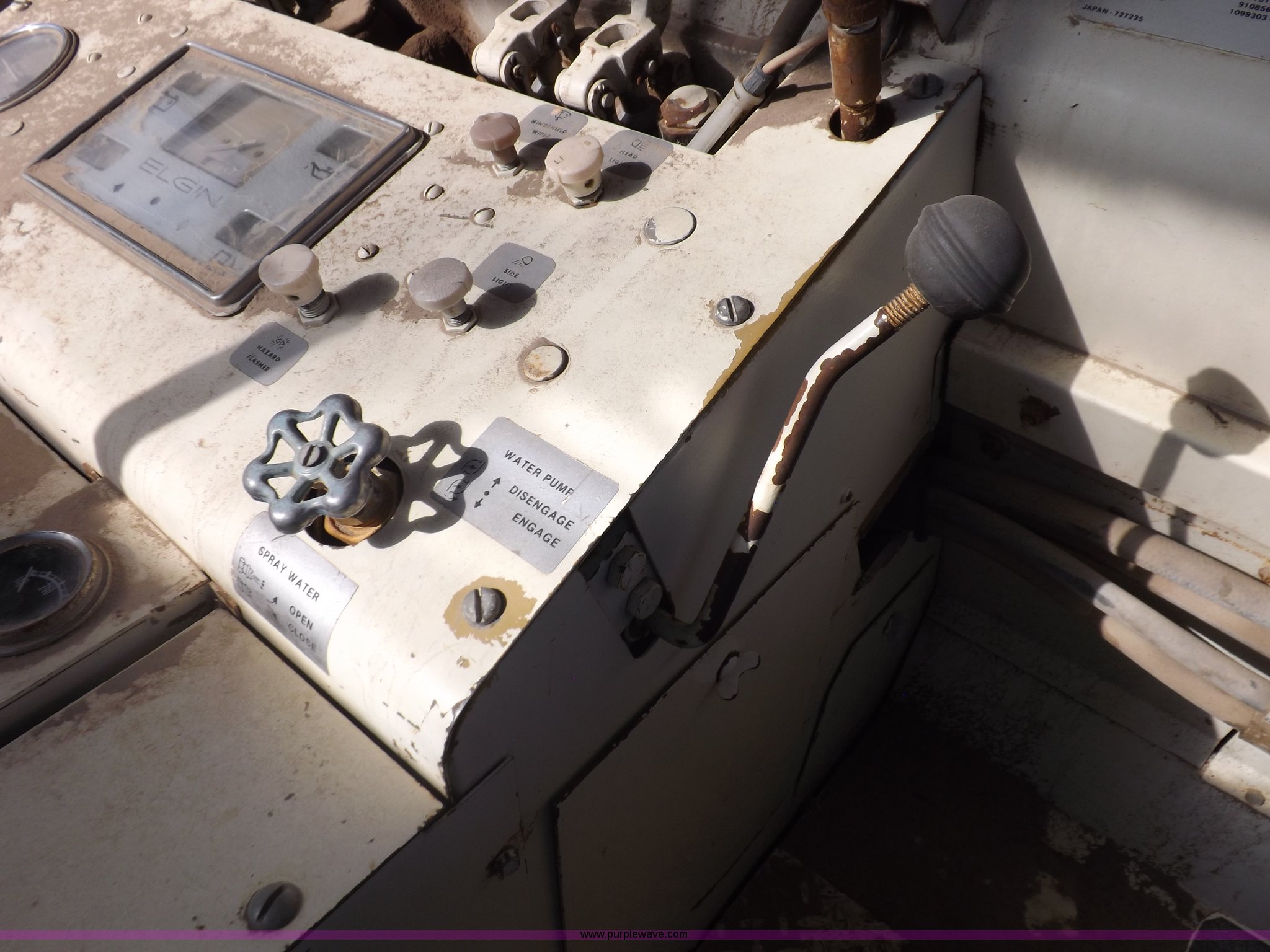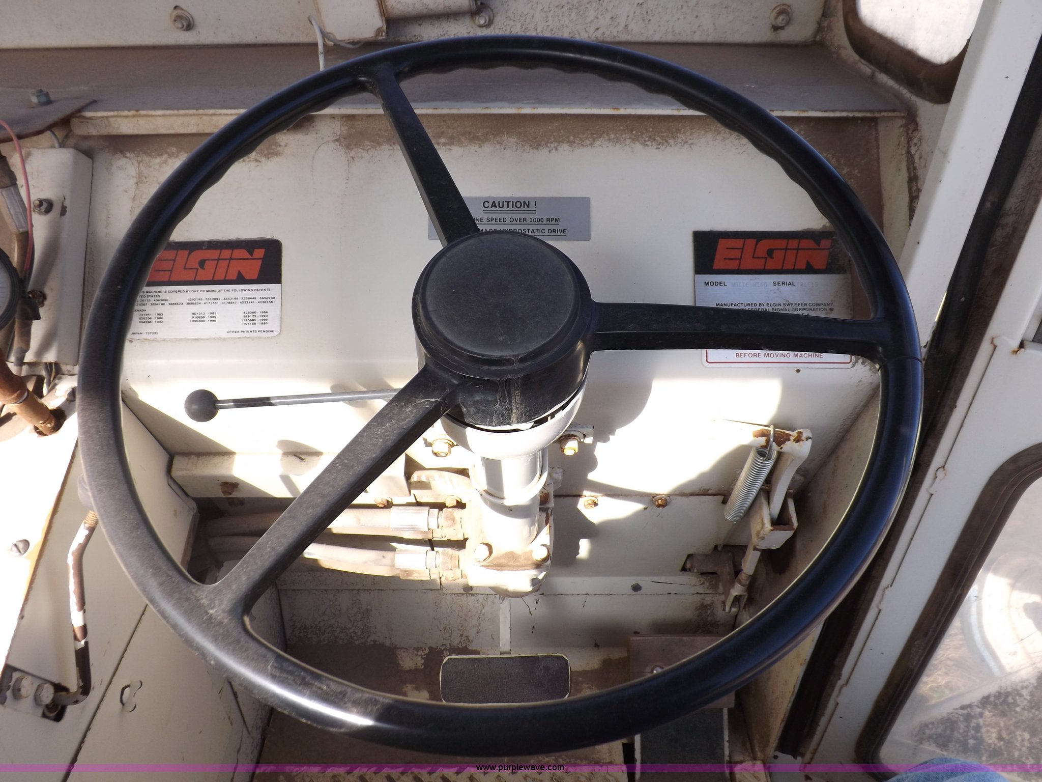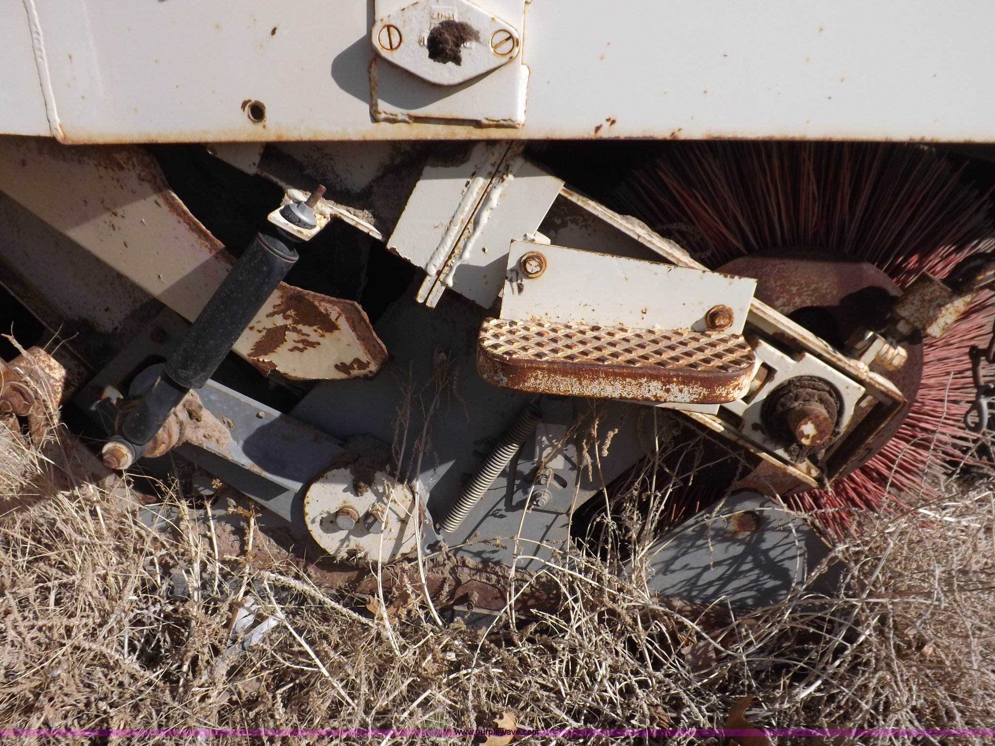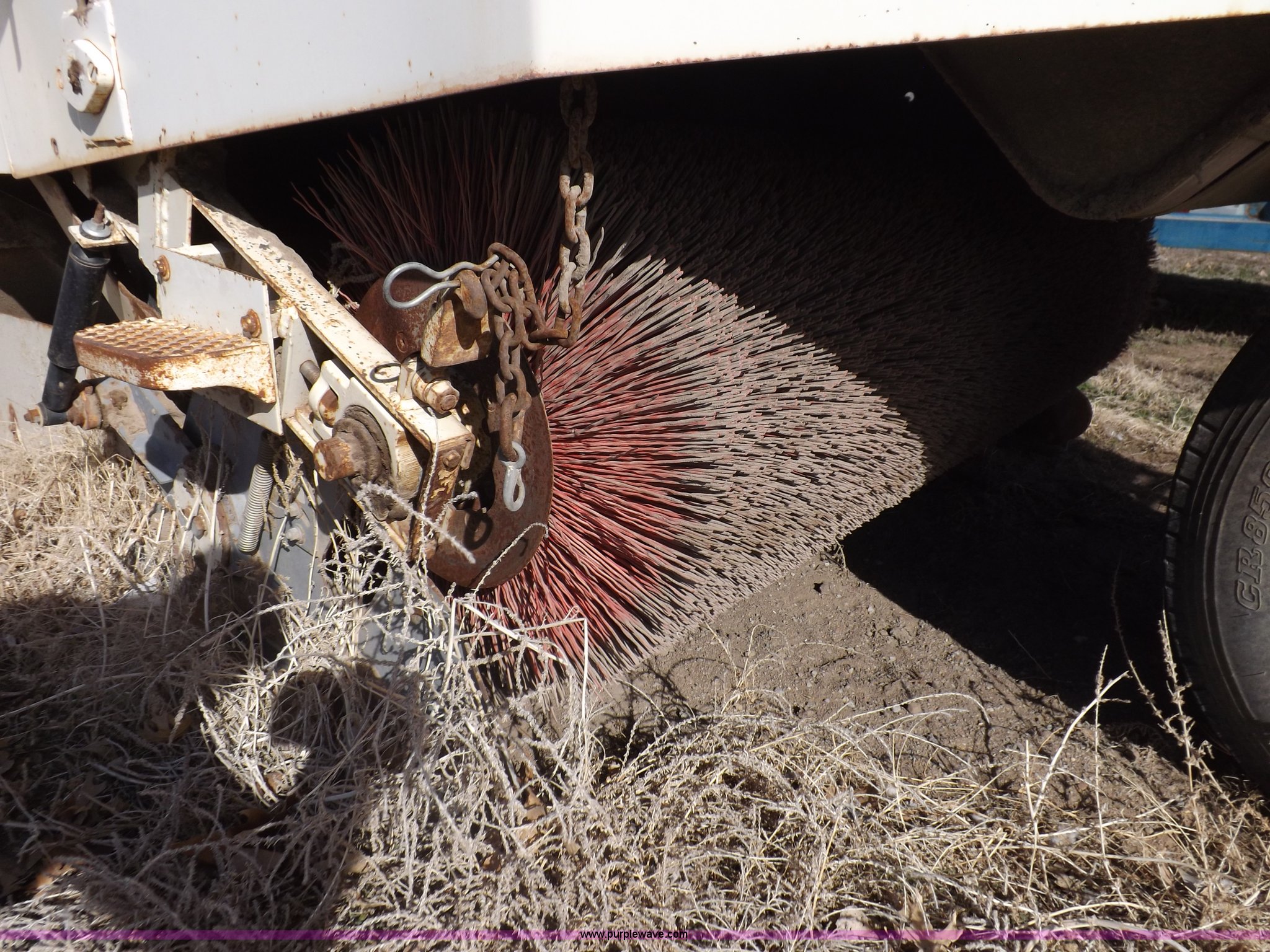 Purple Wave is selling a used Sweeper in Kansas. This item is a Elgin White Wing street sweeper with the following: 852 miles on odometer, 884 hours on meter, International 354 C.I.D. V8 gas engine, Two speed hydrostatic transmission, 200 gallon water tank, Four yard capacity hopper, 24"W curb broom, 5.5'W poly main broom, 10.00-20 drive tires, 7.50-16 steer tires, Operational when parked approx. one year ago, Serial T21615