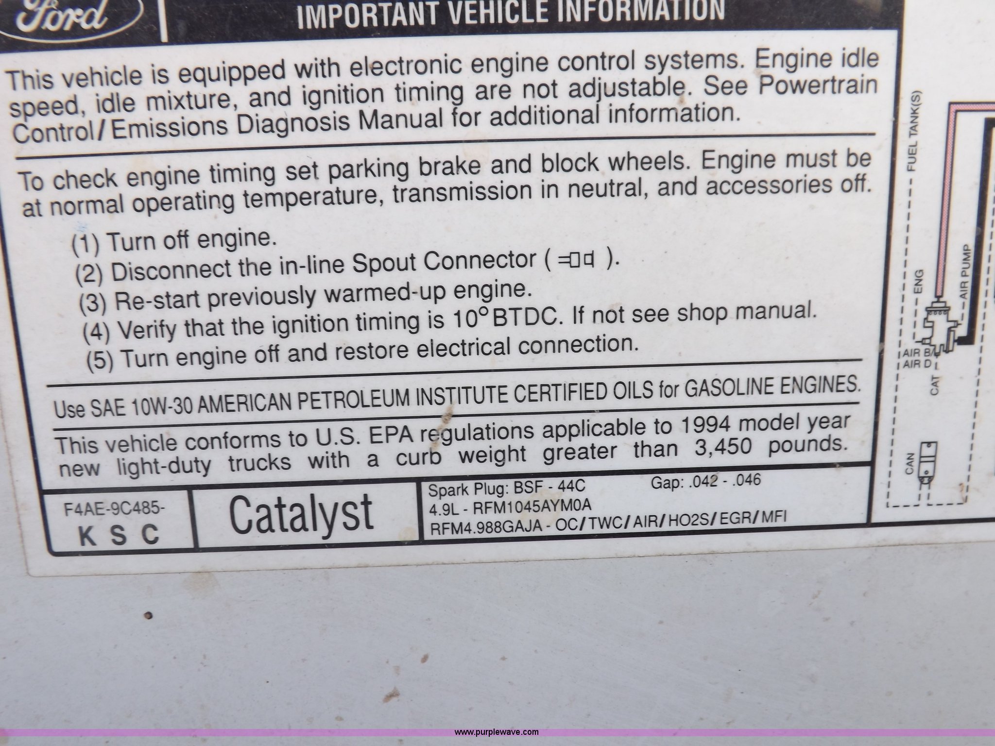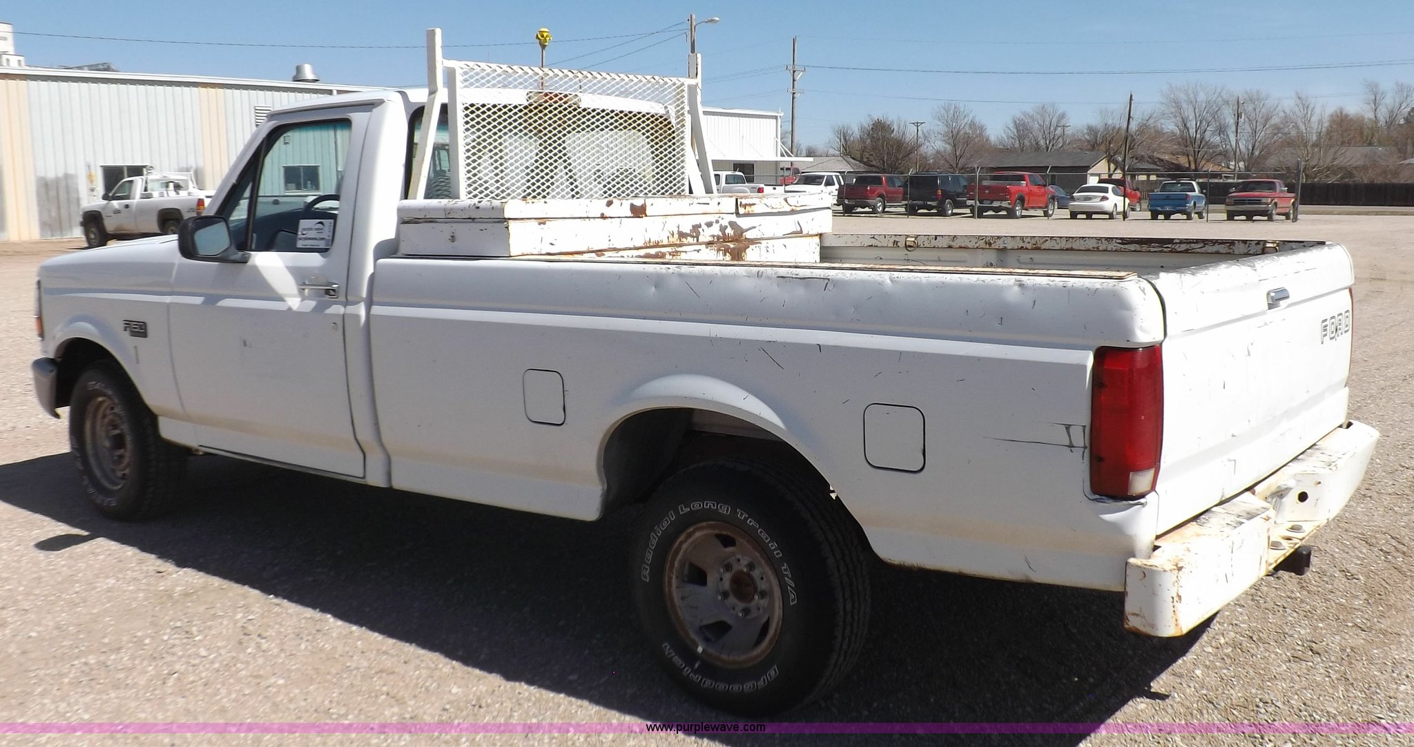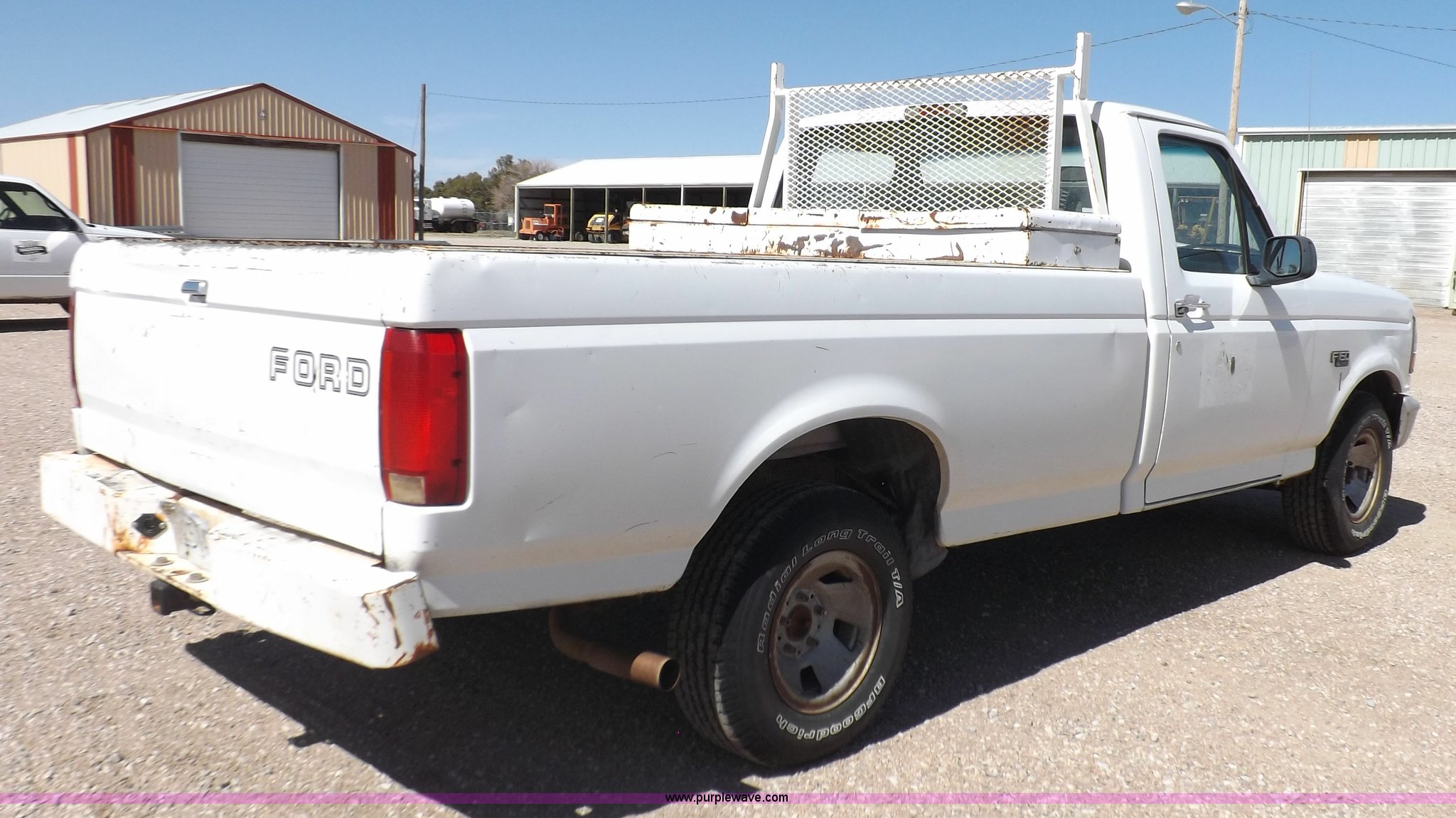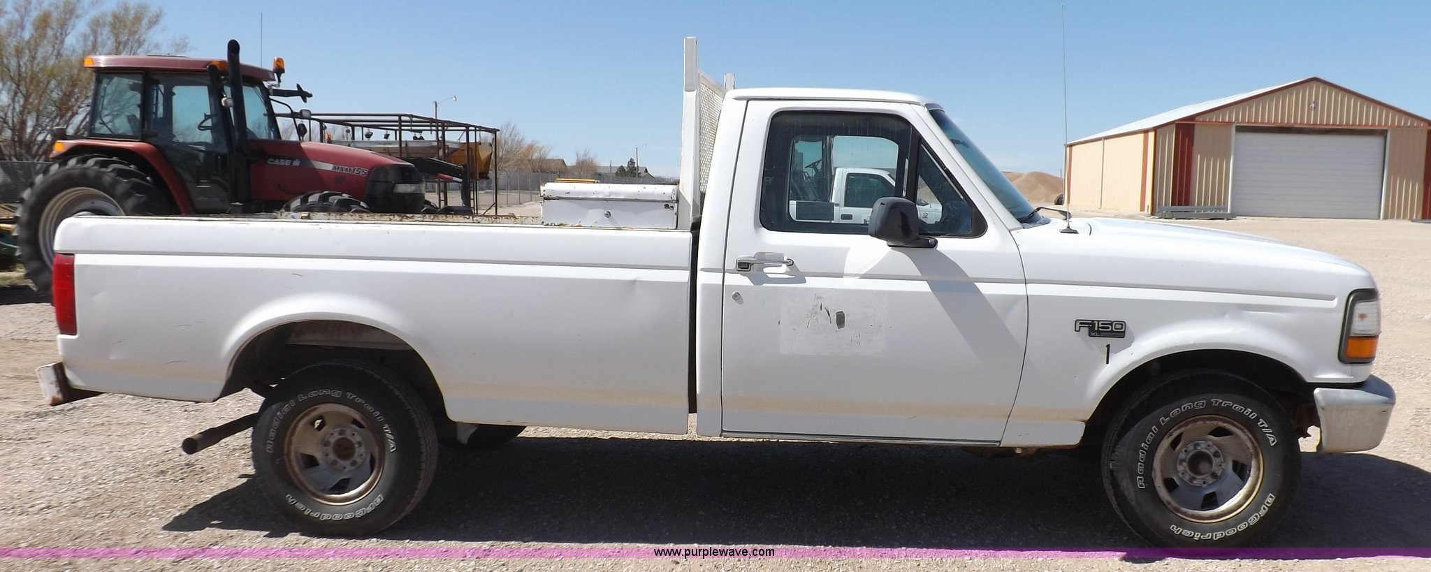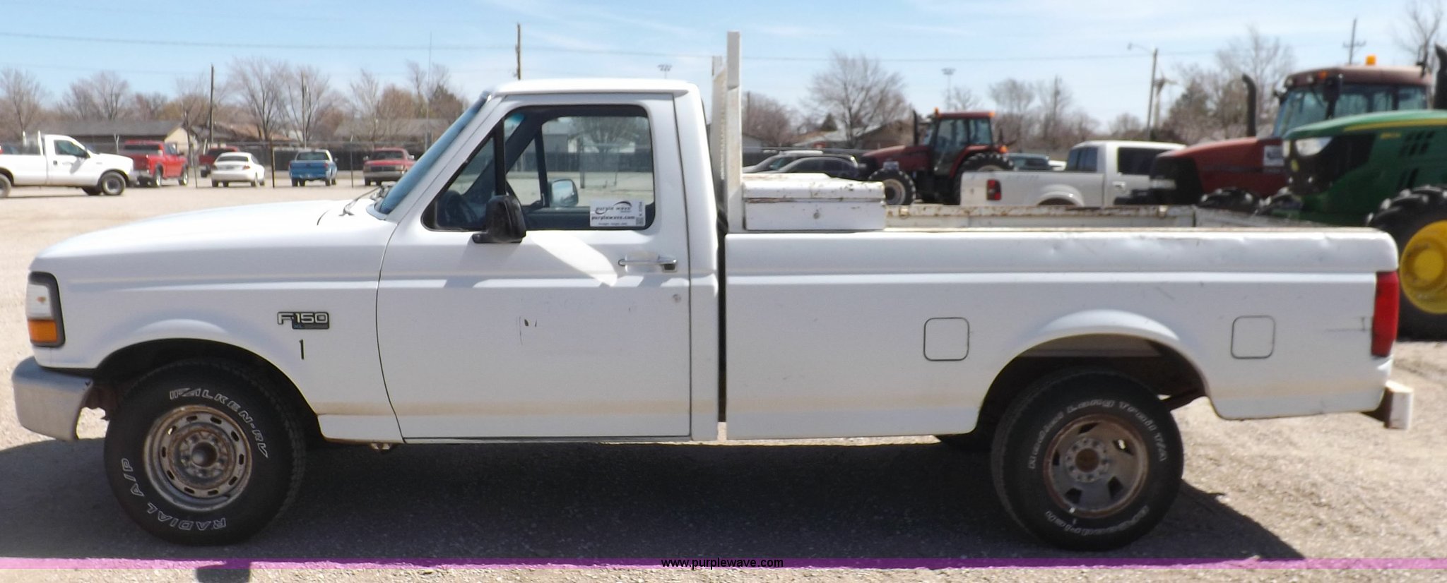 Purple Wave is selling a used 1/2 Ton Pickup or Van in Kansas. This item is a 1994 Ford F150 XL pickup truck with the following: 140,195 miles on odometer, 4.9L L6 OHV 12V gas engine, Five speed manual transmission, Heat, AM/FM, Manual windows and locks, Vinyl interior, Long bed, Headache rack, Crossover toolbox, Bottom is broken, Dual fuel tanks, Trailer wiring, 235/75R15 tires, Interior/exterior cosmetic damage, Rear bumper damage, Paint damage, Hail damage, Front bumper damage, Unit# 1