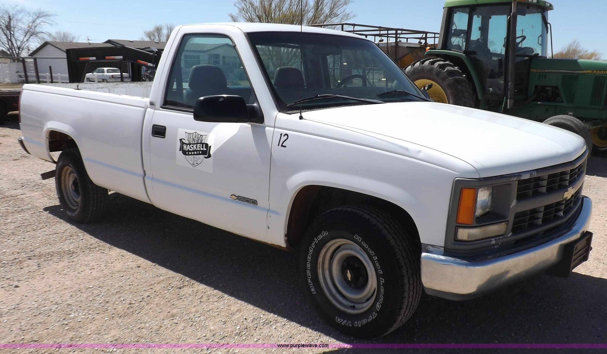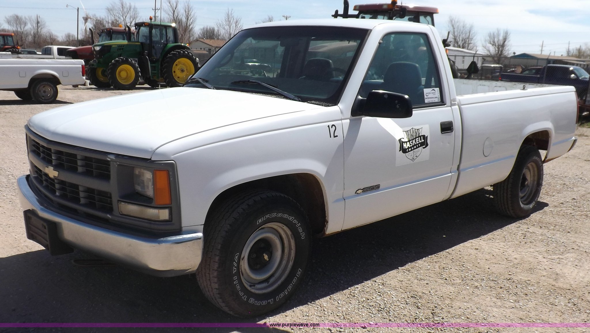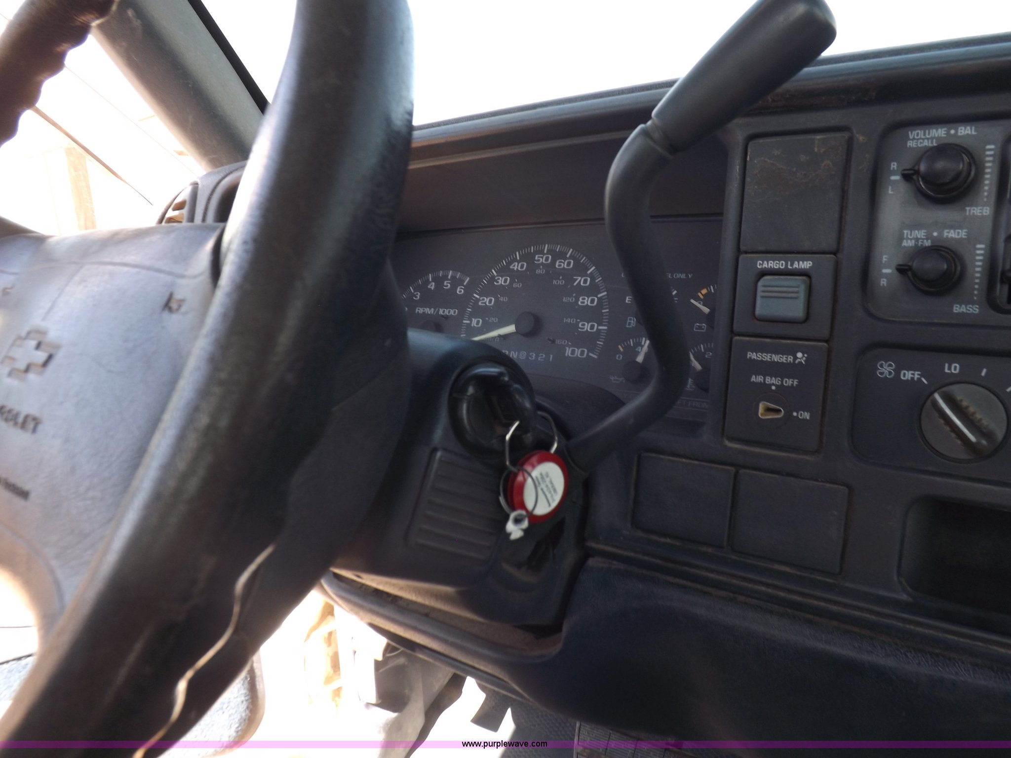 Purple Wave is selling a used 1/2 Ton Pickup or Van in Kansas. This item is a 1997 Chevrolet Cheyenne 1500 pickup truck with the following: 167,416 actual miles, 5.0L V8 VIH 16V gas engine, Automatic transmission, AC and heat, Tilt, Cruise, AM/FM/cassette, Manual windows and locks, Cloth interior, Long bed, Receiver hitch, 235/75R15 tires, Interior/exterior cosmetic damage, Hail damage, Seat torn, Unit# 12