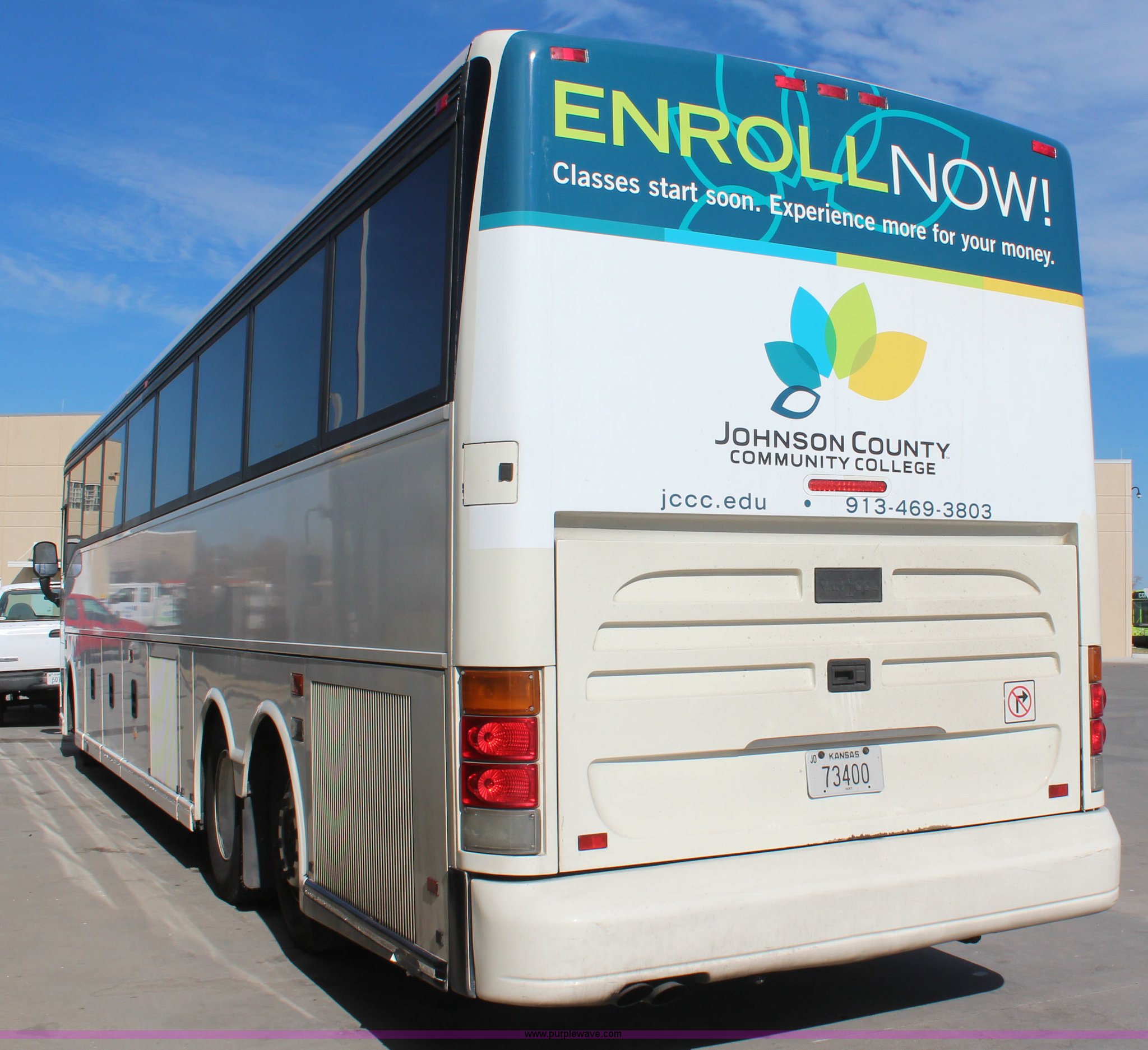 Purple Wave is selling a used Bus in Kansas. This item is a 2002 Van Hool C2045L bus with the following: 151,900 miles on odometer, Approximately 692,000 actual miles, Cummins ISM six cylinder diesel engine, Allison automatic transmission, AC and heat, AM/FM/CD, Cloth interior, PA system, Bathroom, (4) television monitors, Overhead light, 57 passenger capacity, Overhead storage, Air suspension, Air brakes, 315/80R22.5 tires, Unit# TRN401