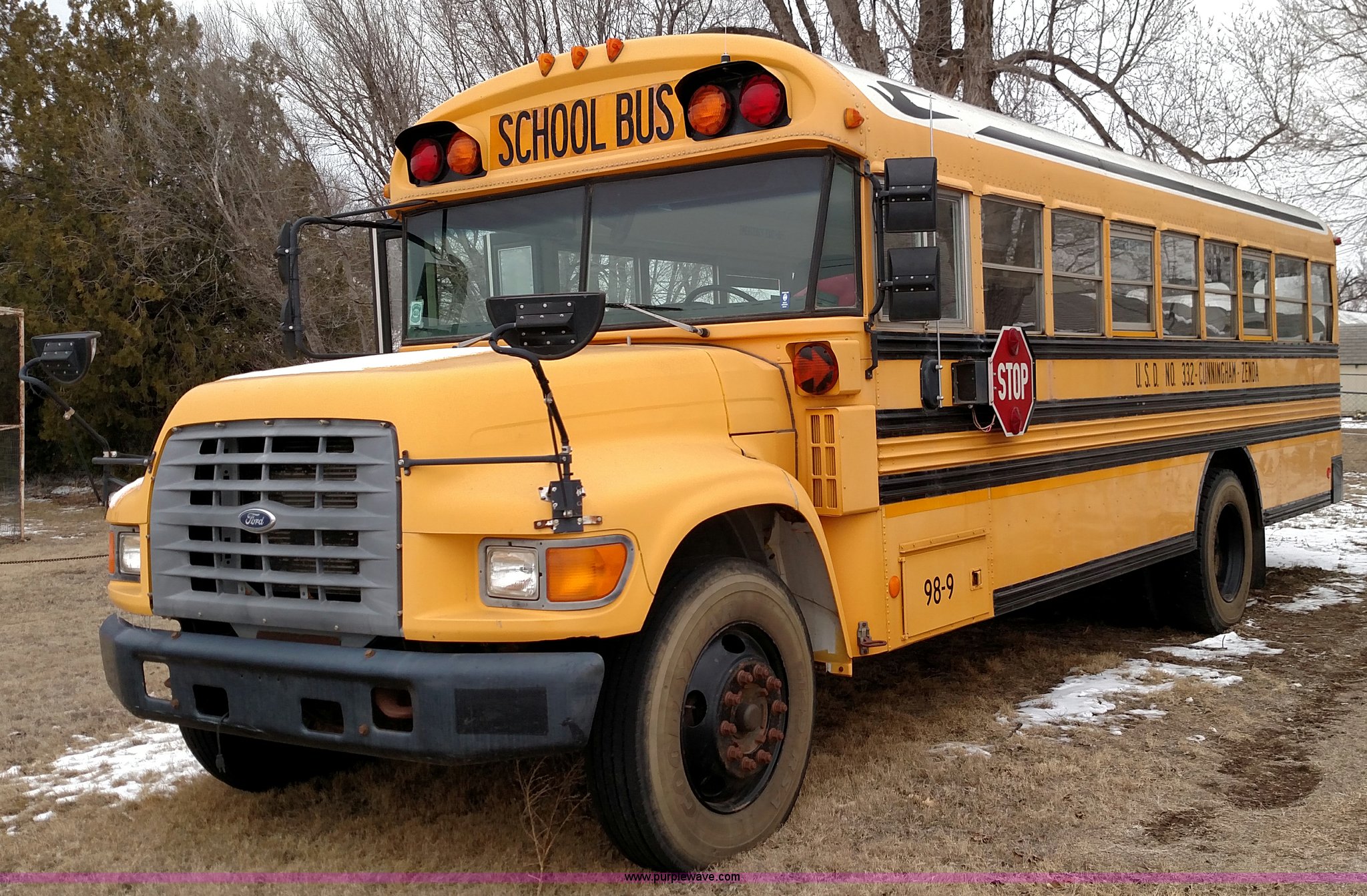 This 1998 Ford B800 school bus will sell to the highest bidder regardless of price.