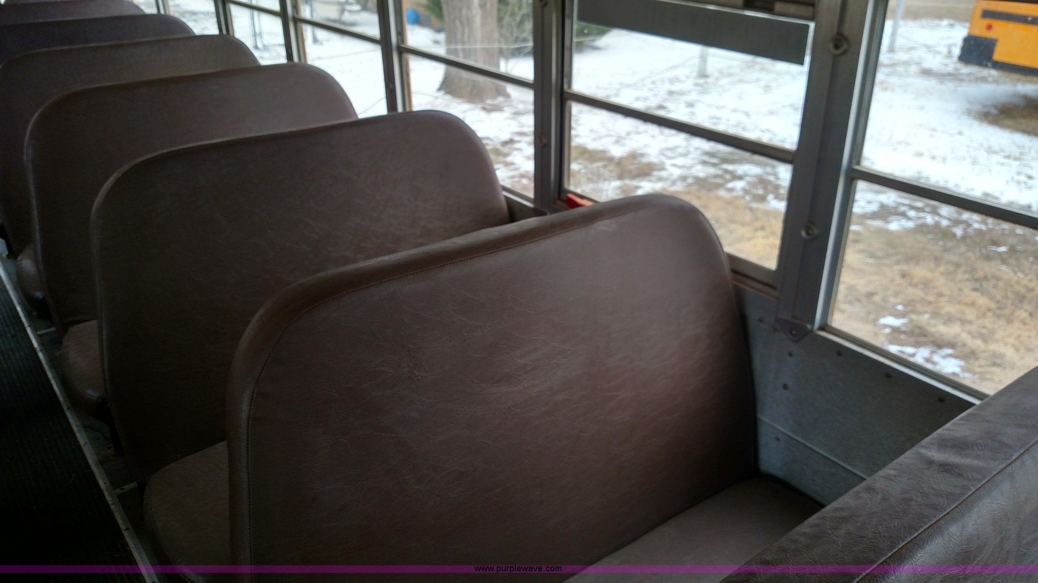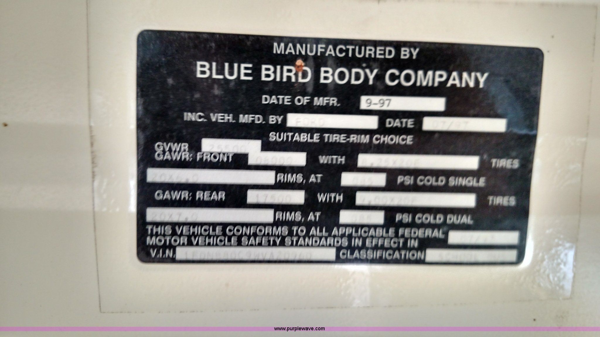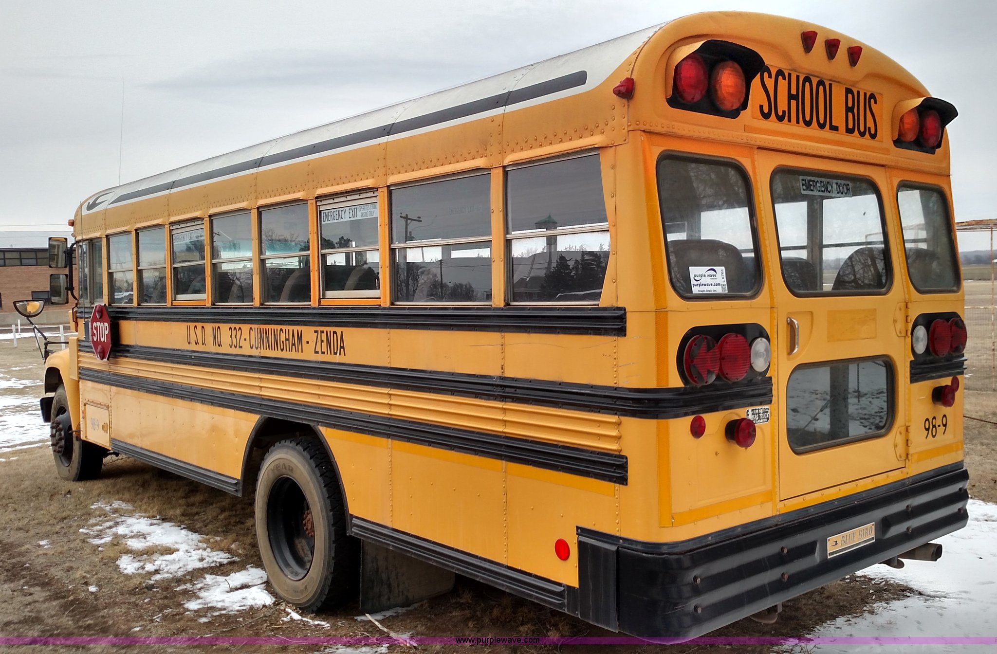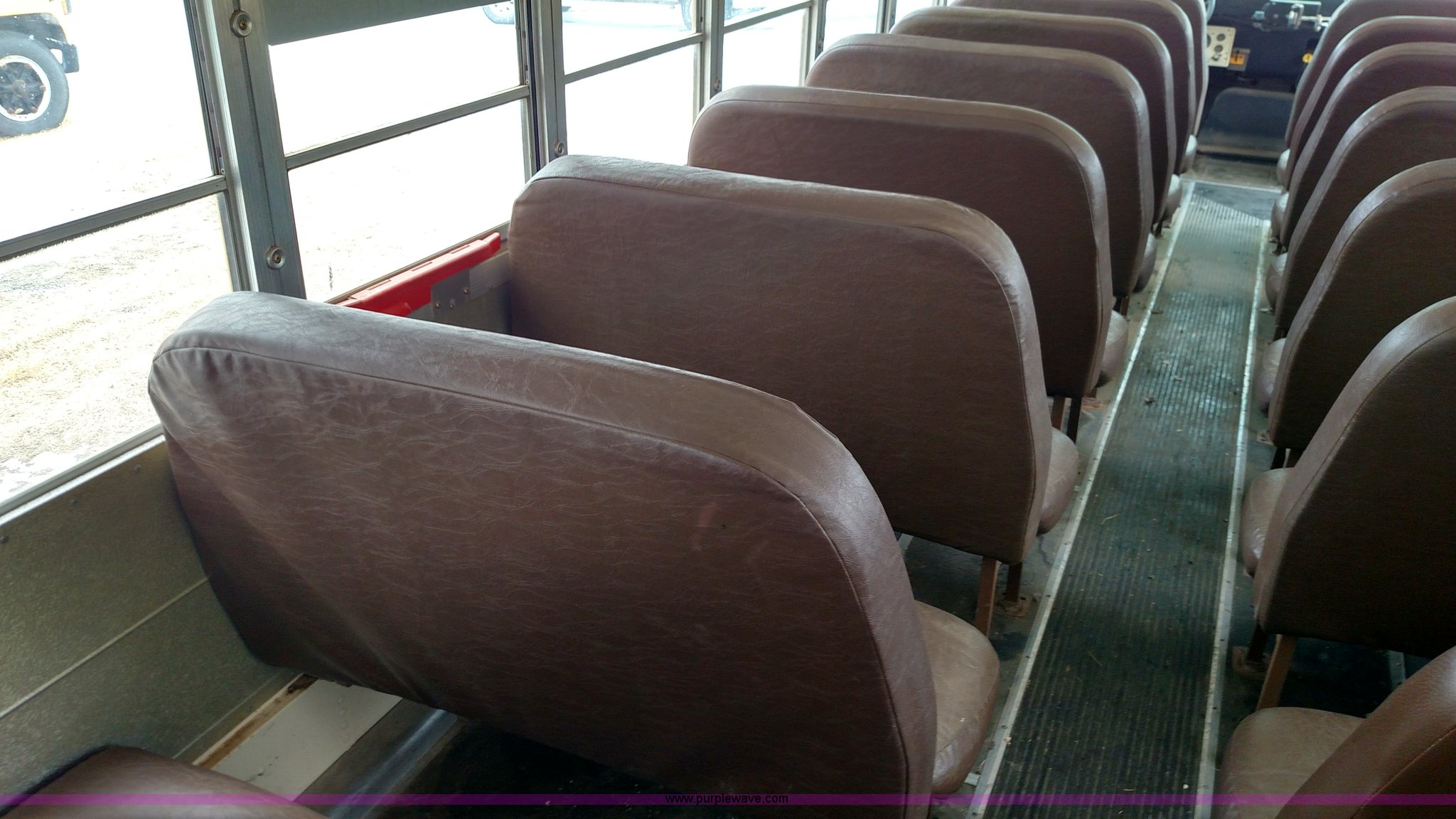 Purple Wave is selling a used Bus in Kansas. This item is a 1998 Ford B800 school bus with the following: 161,540 miles on odometer, Ford 5.9L L6 diesel engine, Automatic transmission, Heat, AM/FM, 47 passenger capacity, Blue Bird body, Model M84108, 10R22.5 tires, Interior/exterior cosmetic damage