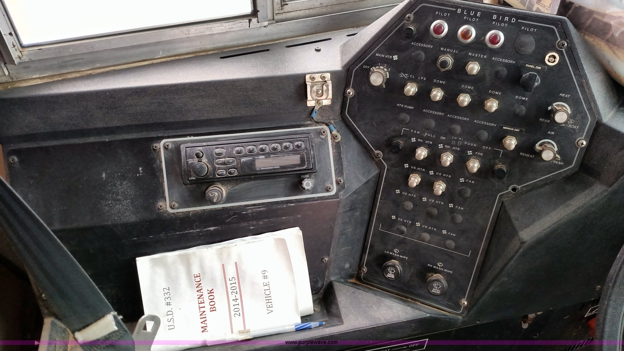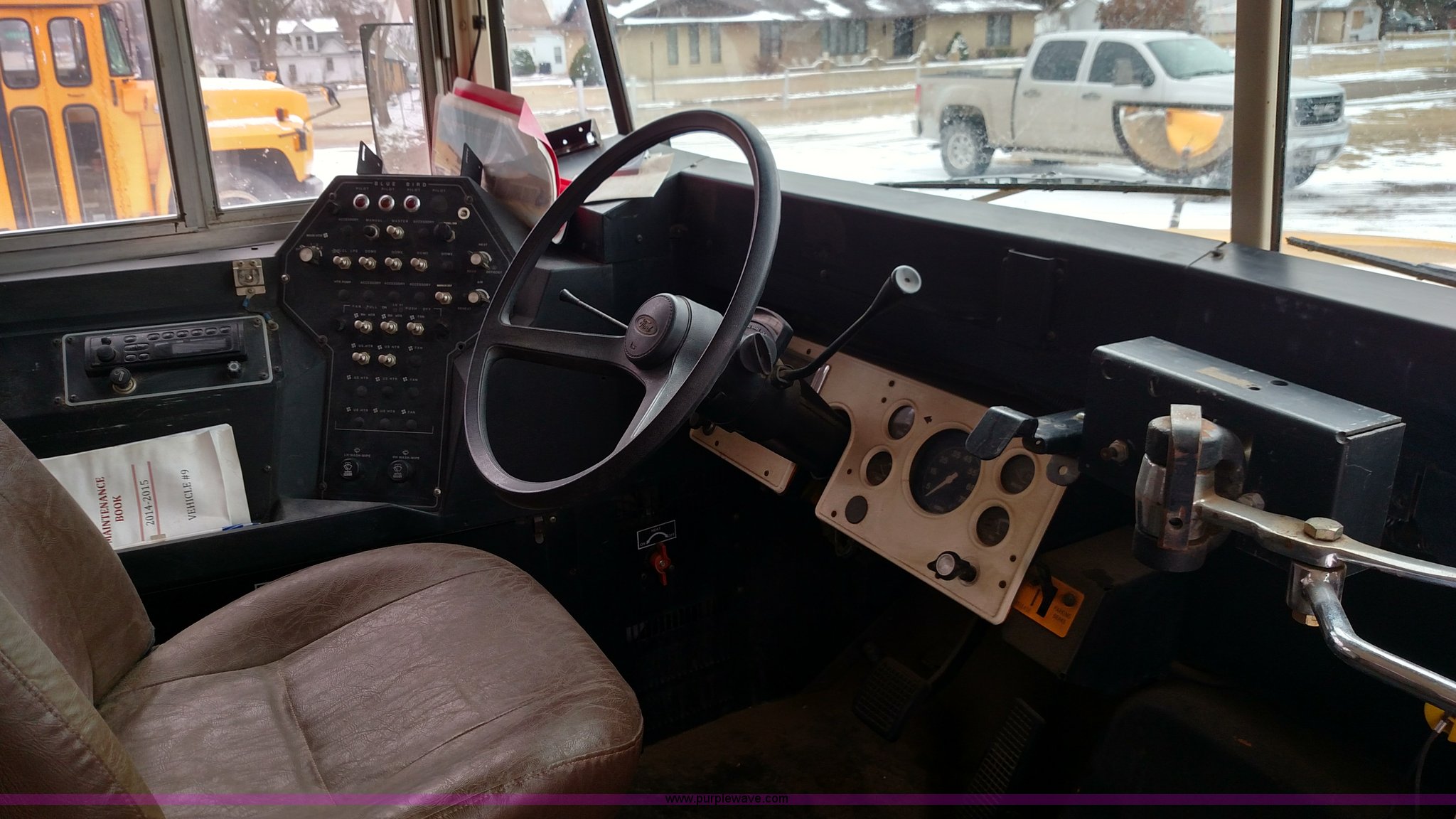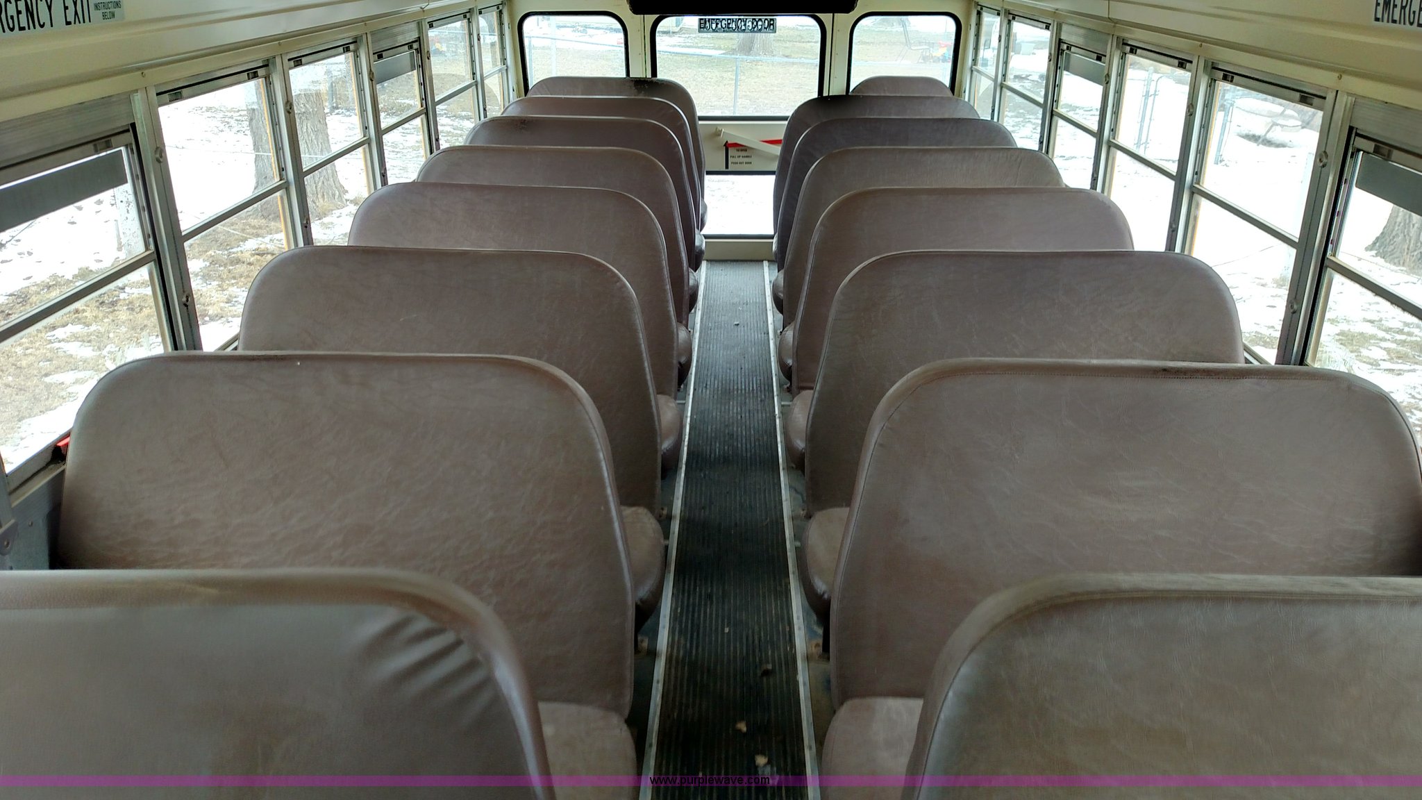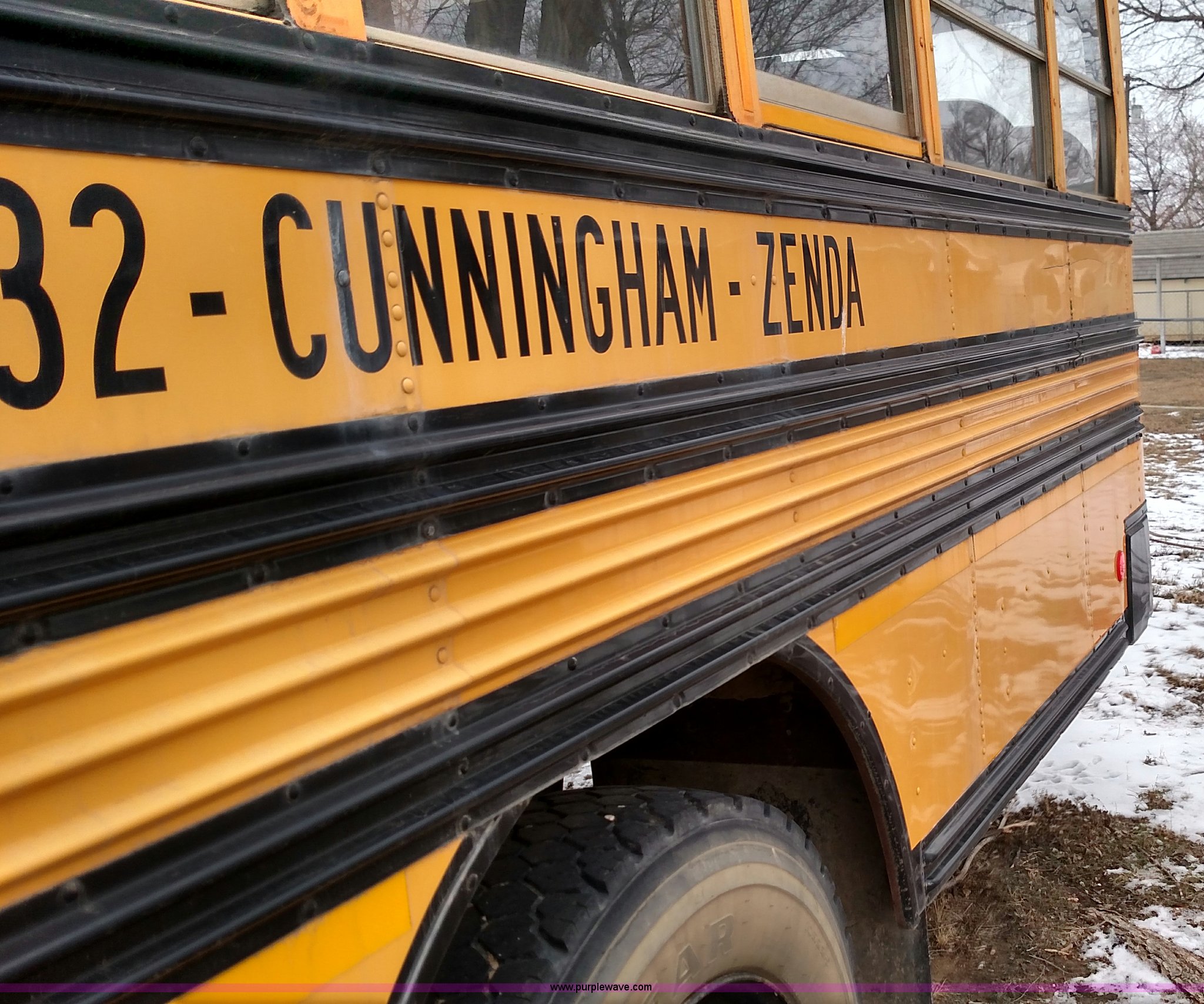 Purple Wave is selling a used Bus in Kansas. This item is a 1998 Ford B800 school bus with the following: 161,540 miles on odometer, Ford 5.9L L6 diesel engine, Automatic transmission, Heat, AM/FM, 47 passenger capacity, Blue Bird body, Model M84108, 10R22.5 tires, Interior/exterior cosmetic damage