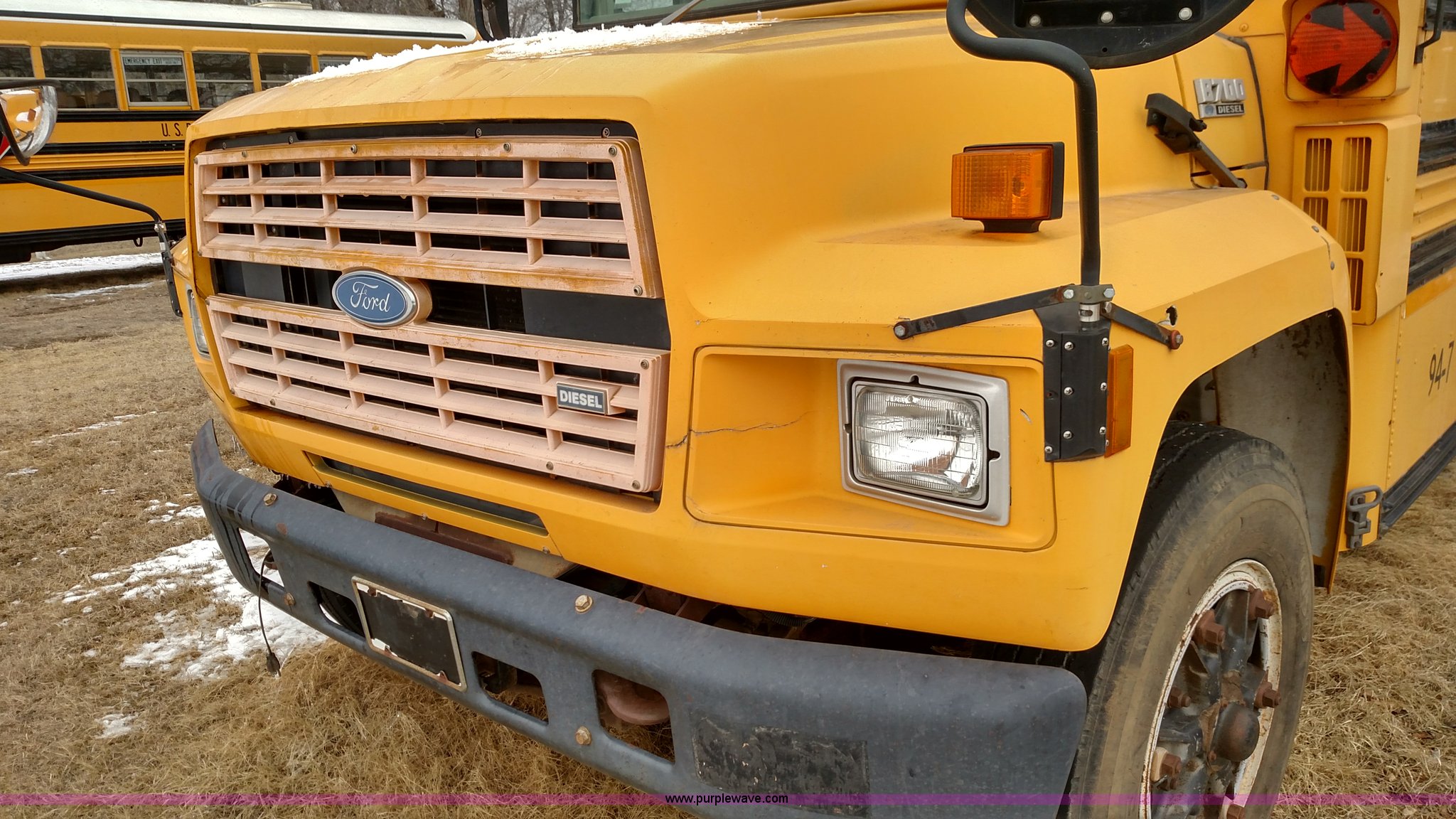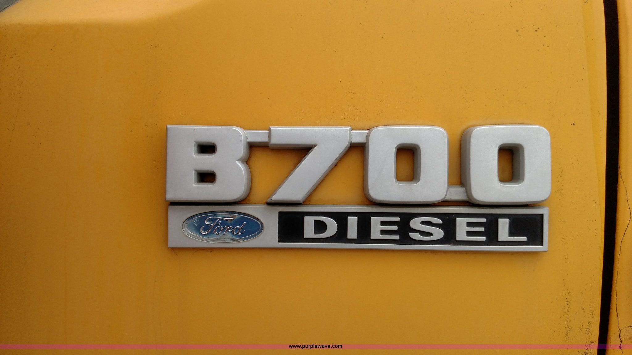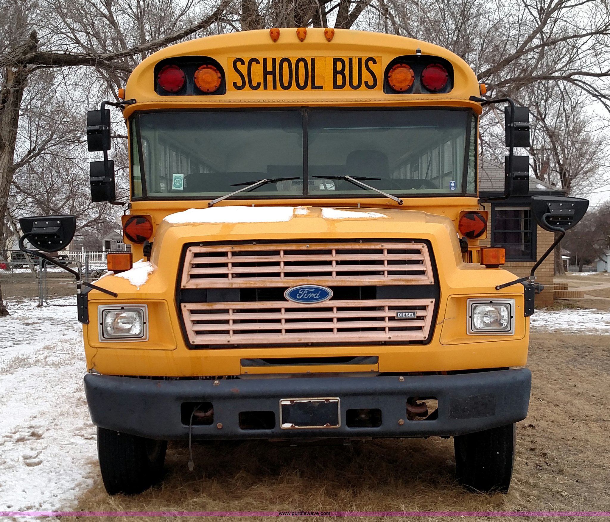 Purple Wave is selling a used Bus in Kansas. This item is a 1994 Ford B700 school bus with the following: 190,946 miles on odometer, Cummins ISB 5.9L L6 diesel engine, Automatic transmission, Heat, AM/FM, 47 passenger capacity, (2) front kid passenger seats, Blue Bird body, Model M66080, 9.00R20 tires, Interior/exterior cosmetic damage, Kenwood two-way radio not included