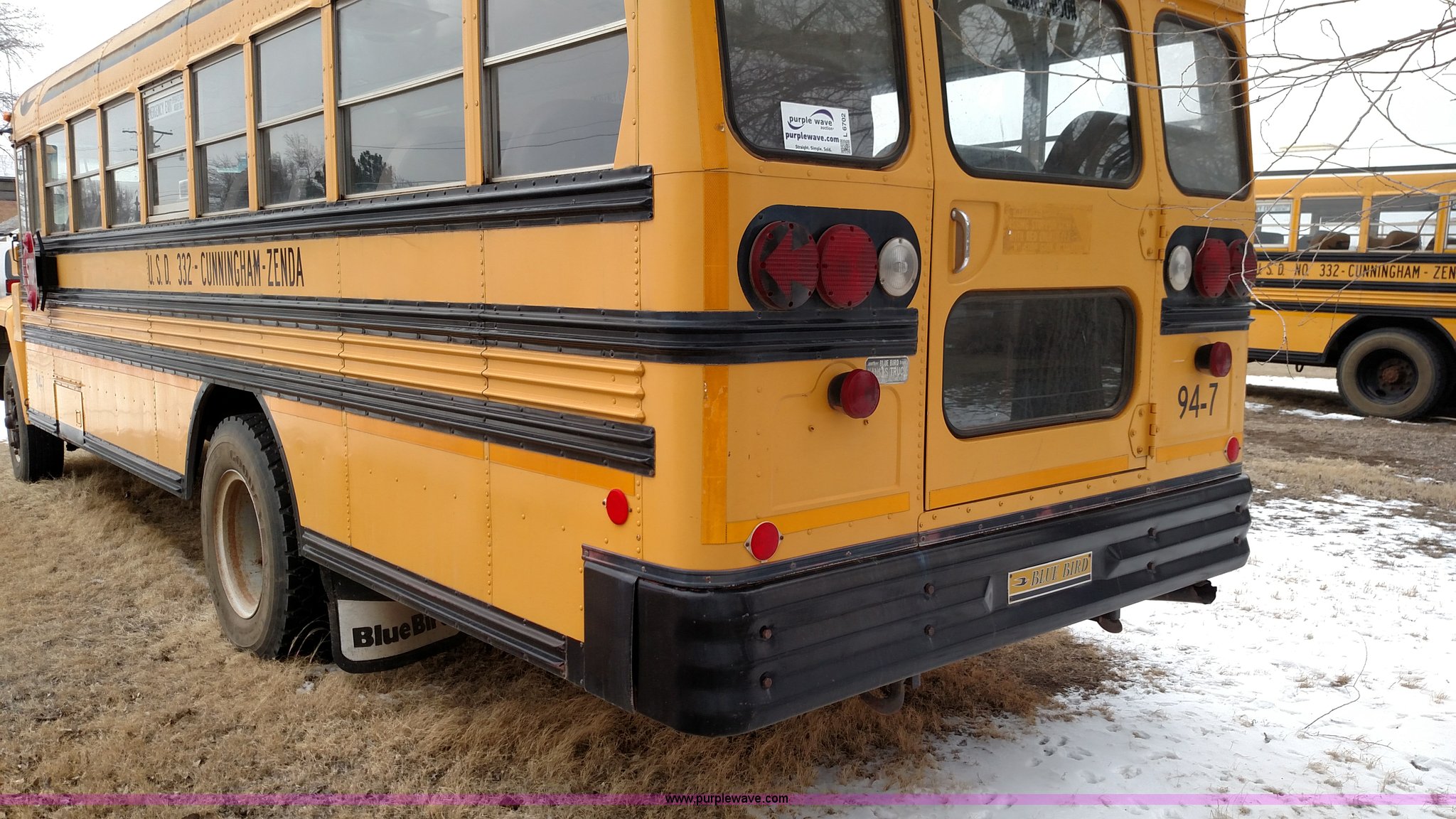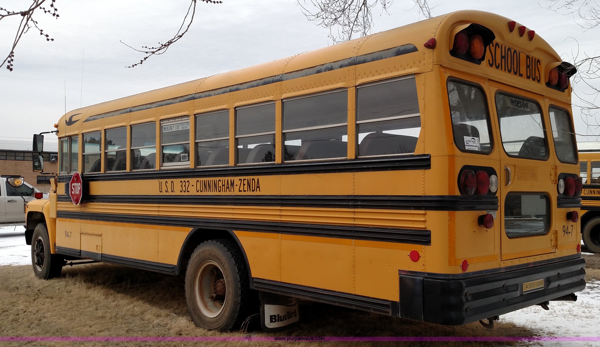 1994 Ford B700 school bus. 190,946 miles on odometer, Cummins ISB 5.9L L6 diesel engine, Automatic transmission, Heat, AM/FM, 47 passenger capacity, (2) front kid passenger seats, Blue Bird body Model M66080, 9.00R20 tires, Interior/exterior cosmetic damage, Kenwood two-way radio not included. 1FDNJ75C9RVA08639. USD 332. Cunningham, KS 67035