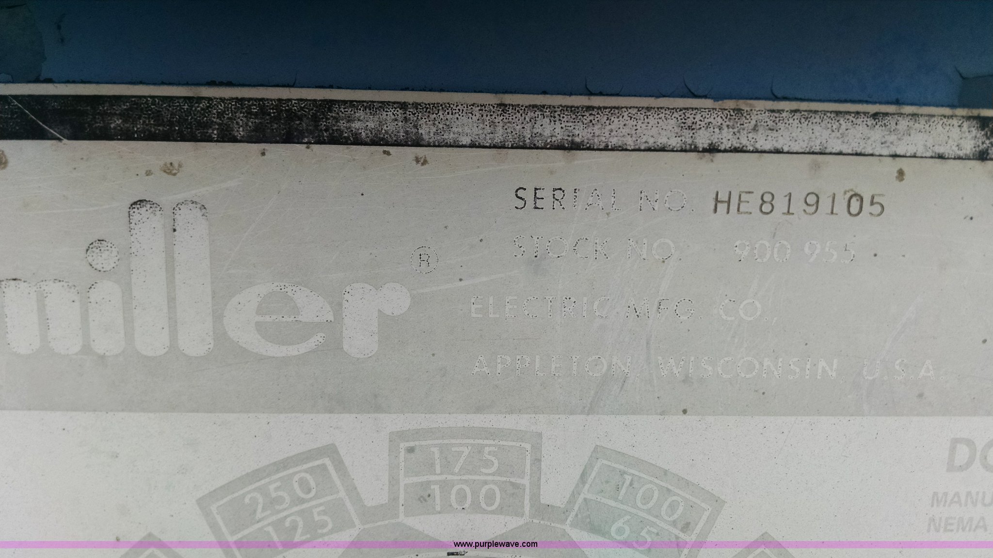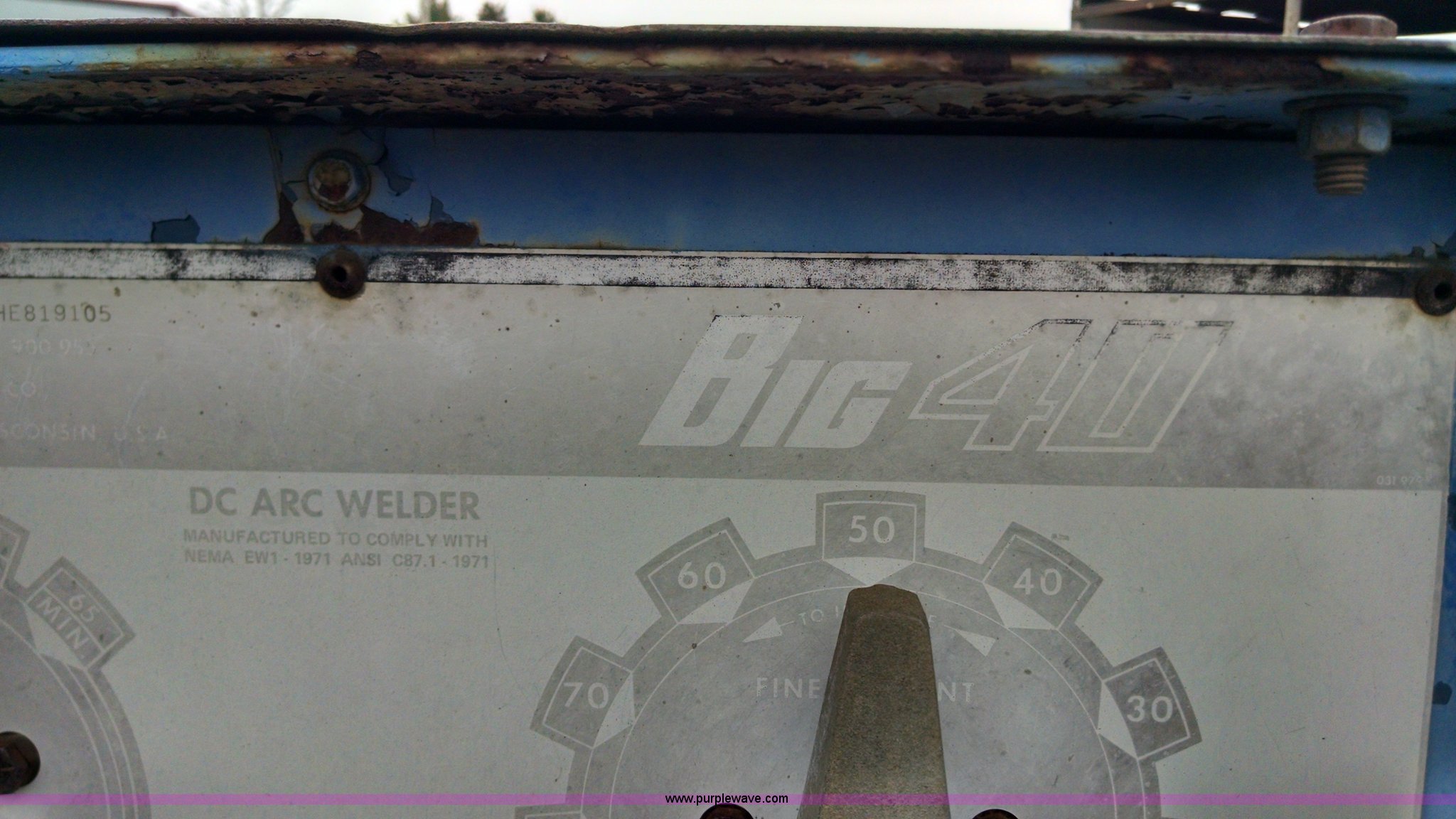 Purple Wave is selling a used Welder (Manual) in Missouri. This item is a Miller Big 40 welder/generator with the following: Continental four cylinder gas engine, 120V output, Electric start, 2" ball hitch, Manual jack, 225/75R16 tires, Serial HE819105