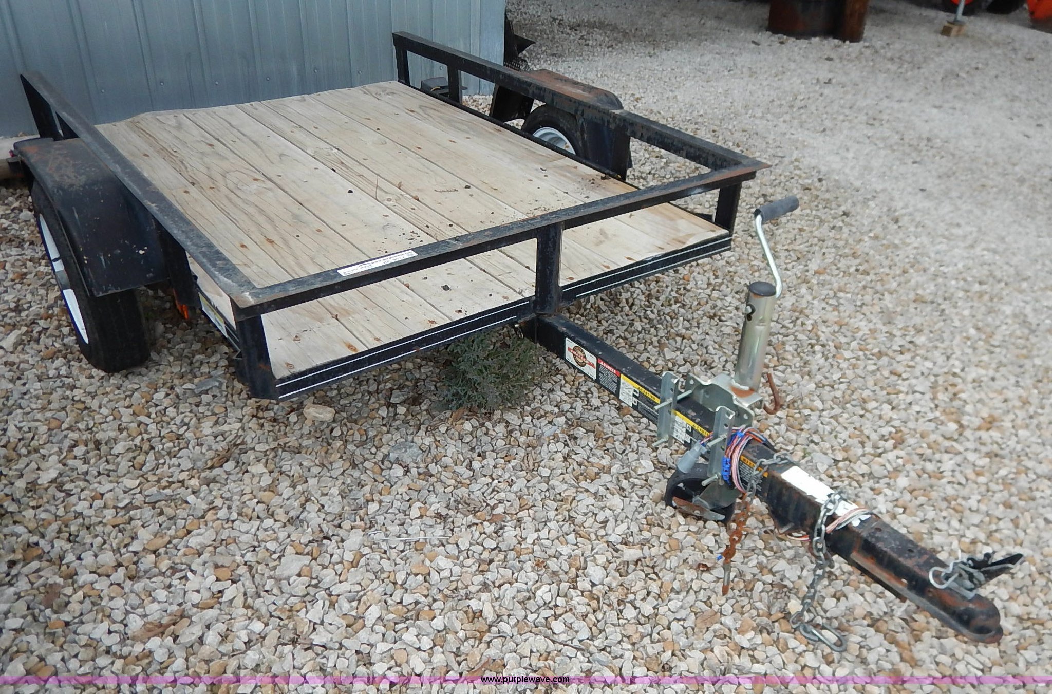 Purple Wave is selling a used Car or Utility Trailer in Kansas. This item is a Carry on trailer with the following: 6' x 4', 1 7/8" ball hitch, 4.0-12 tires, Floor and trailer wiring has been replaced
