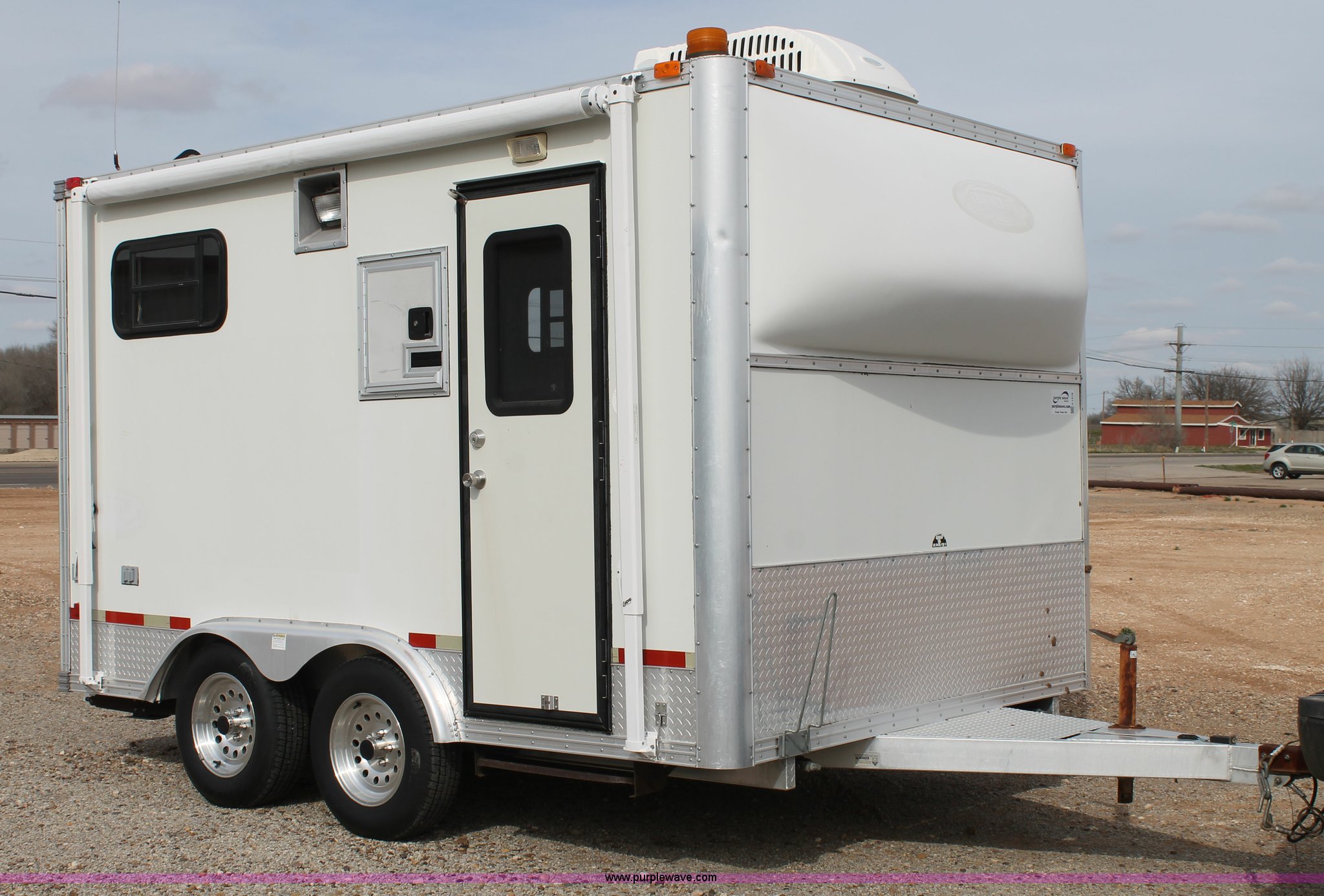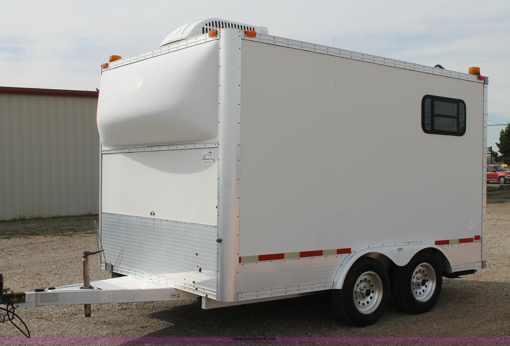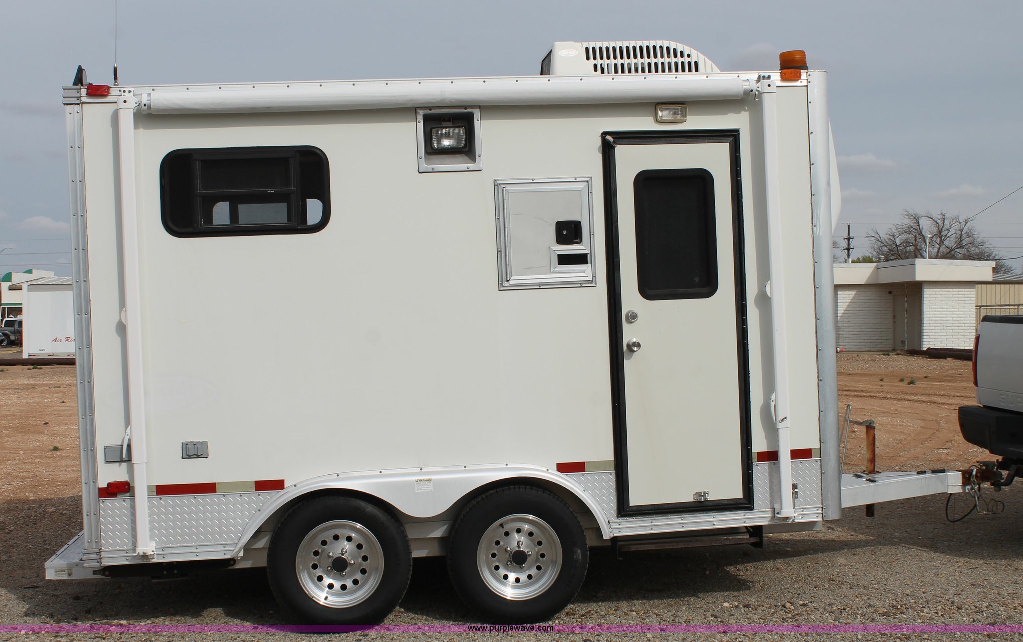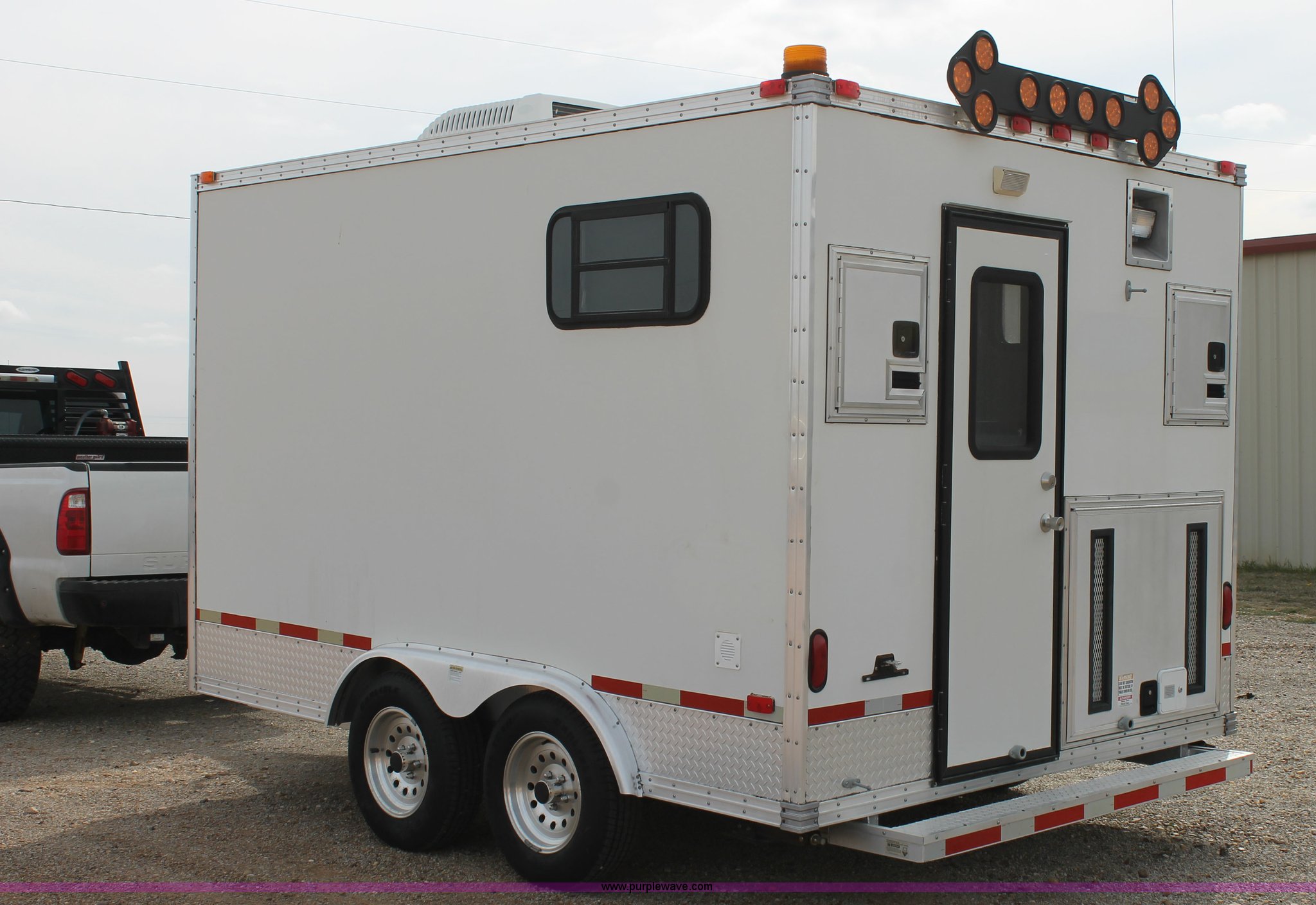 Purple Wave is selling a used Enclosed Cargo Trailer in Texas. This item is a 2002 Coachcraft enclosed fiber optics splitting trailer with the following: AC and heat, AM/FM/CD, Side and rear entry doors, Wired for electricity with plugs, Honda EB6500 generator, Work counters and cabinets, Side and rear entry doors, Fluorescent lighting, Rear traffic diverter electric light arrows, Fold-out side awning, Used for cable splicing