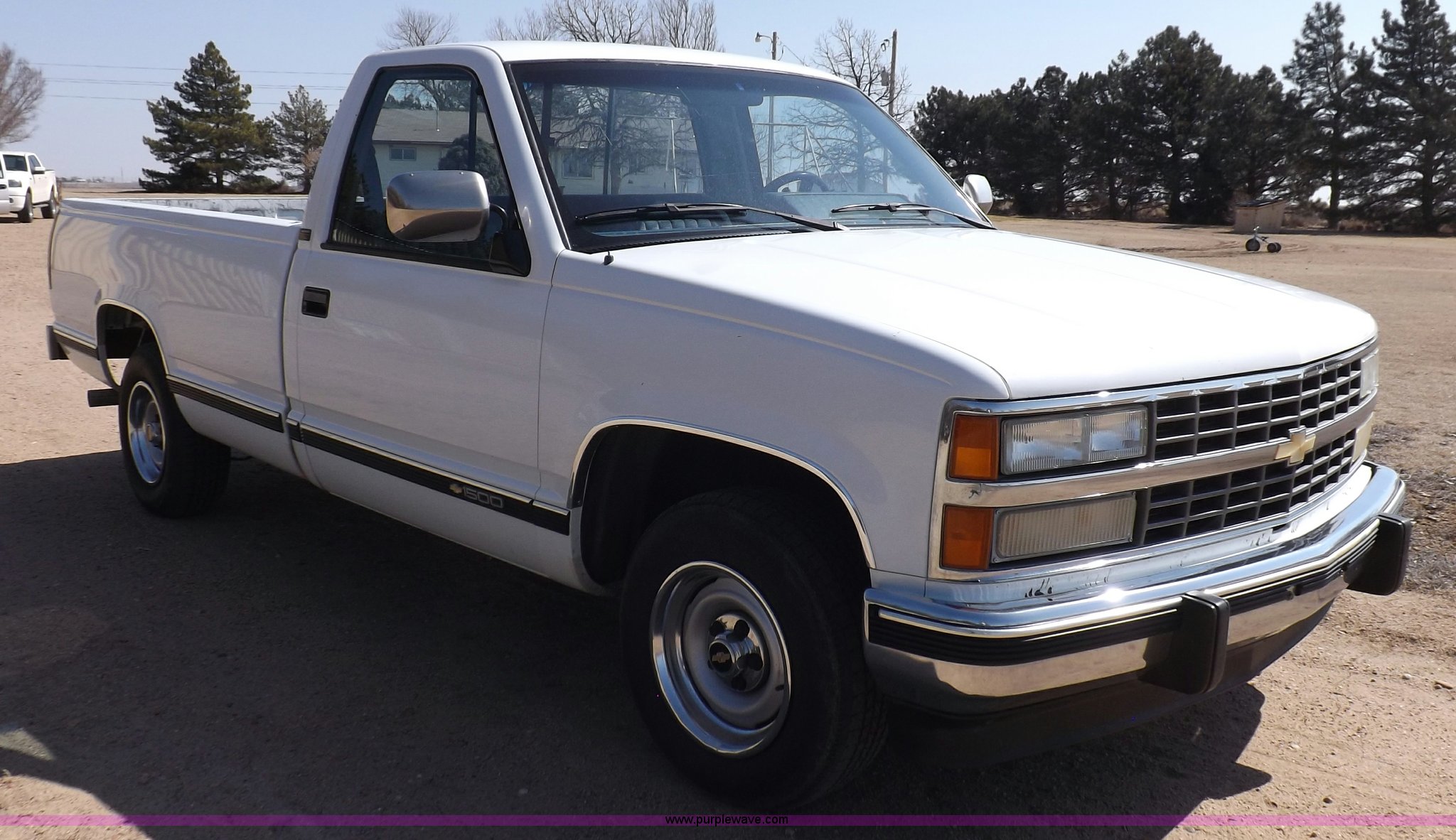 Purple Wave is selling a used 1/2 Ton Pickup or Van in Kansas. This item is a 1990 Chevrolet Silverado 1500 pickup truck with the following: 102,584 actual miles, 5.7L V8 OHV 16V gas engine, Automatic transmission, AC and heat, Tilt, Cruise, Power windows and locks, Cloth interior, Long bed, Bed mat, Receiver hitch, Trailer wiring, 235/75R15 tires, Interior/exterior cosmetic damage, Cracked windshield, Scratches, Hood damage, Radio antenna missing