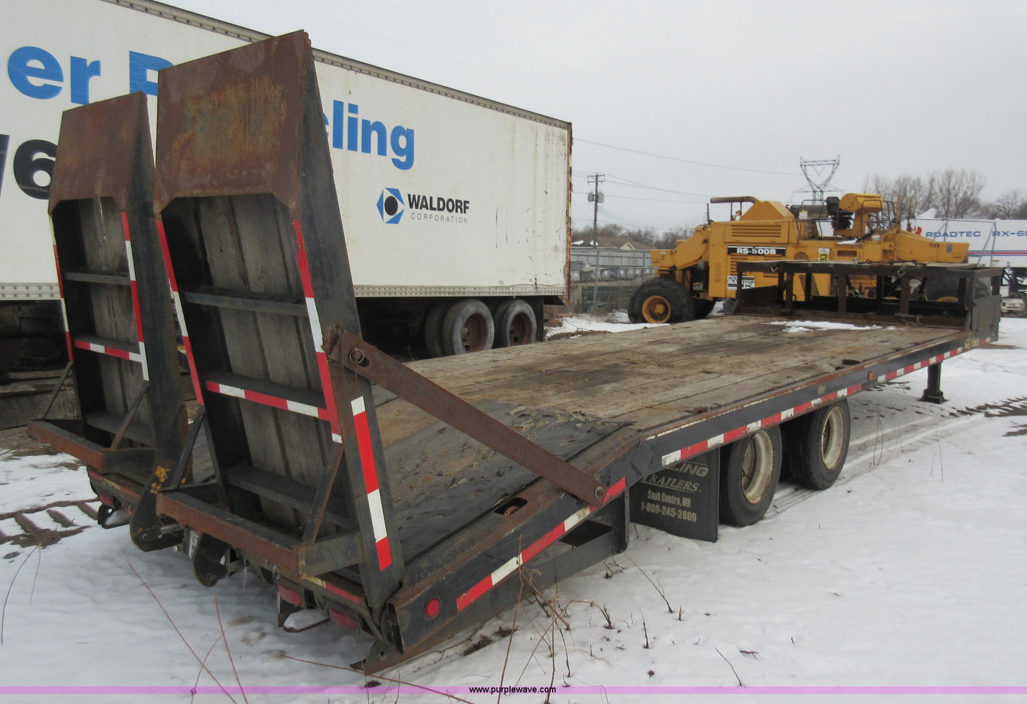 Purple Wave is selling a used Equip. Trailer in Minnesota. This item is a 2001 Felling equipment trailer with the following: 24'L x 100"W deck, 5'L dovetail, 6'L x 3'W ramps, 4'L storage rack, 12V hydraulic pump, Hydraulic jacks, Safety chains, Pintle hitch, Electric brakes, 215/75R17.5 tires, Unit# 237