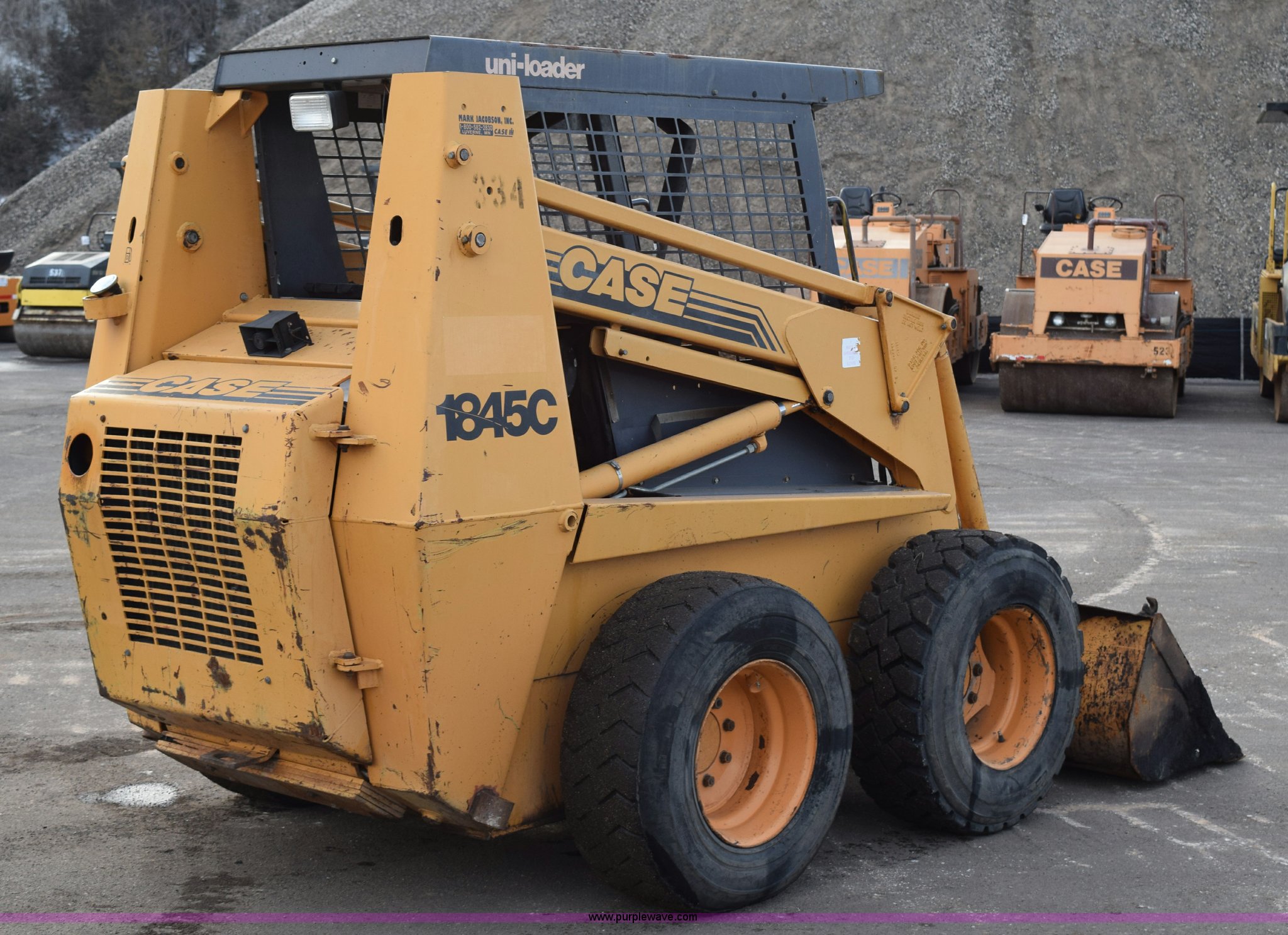 Purple Wave is selling a used Skid Steer Loader in Minnesota. This item is a 1995 Case 1845C skid steer with the following: 2,903 hours on meter, Case four cylinder diesel engine, Hydrostatic transmission, Joystick controls, Spring suspension seat, Rear work lights, Block heater, Auxiliary hydraulics, Manual quick coupler, 6'W bucket, Bolt-on cutting edge, 12R16.5 tires, 6,185 lbs. base operating weight, Serial JAF0162860, Unit# 334