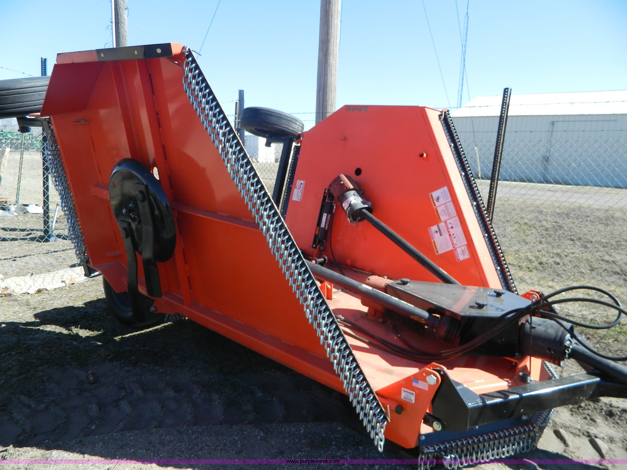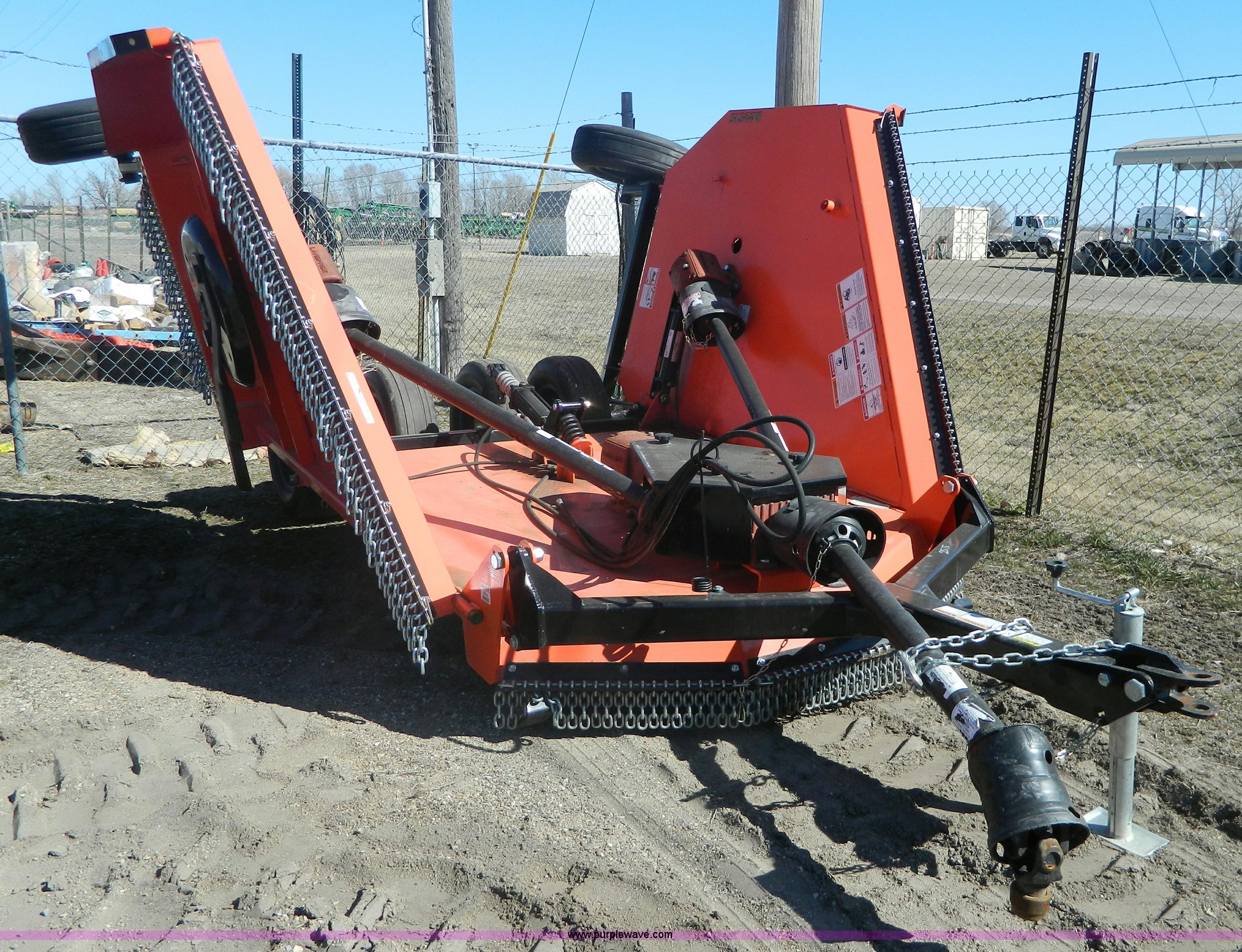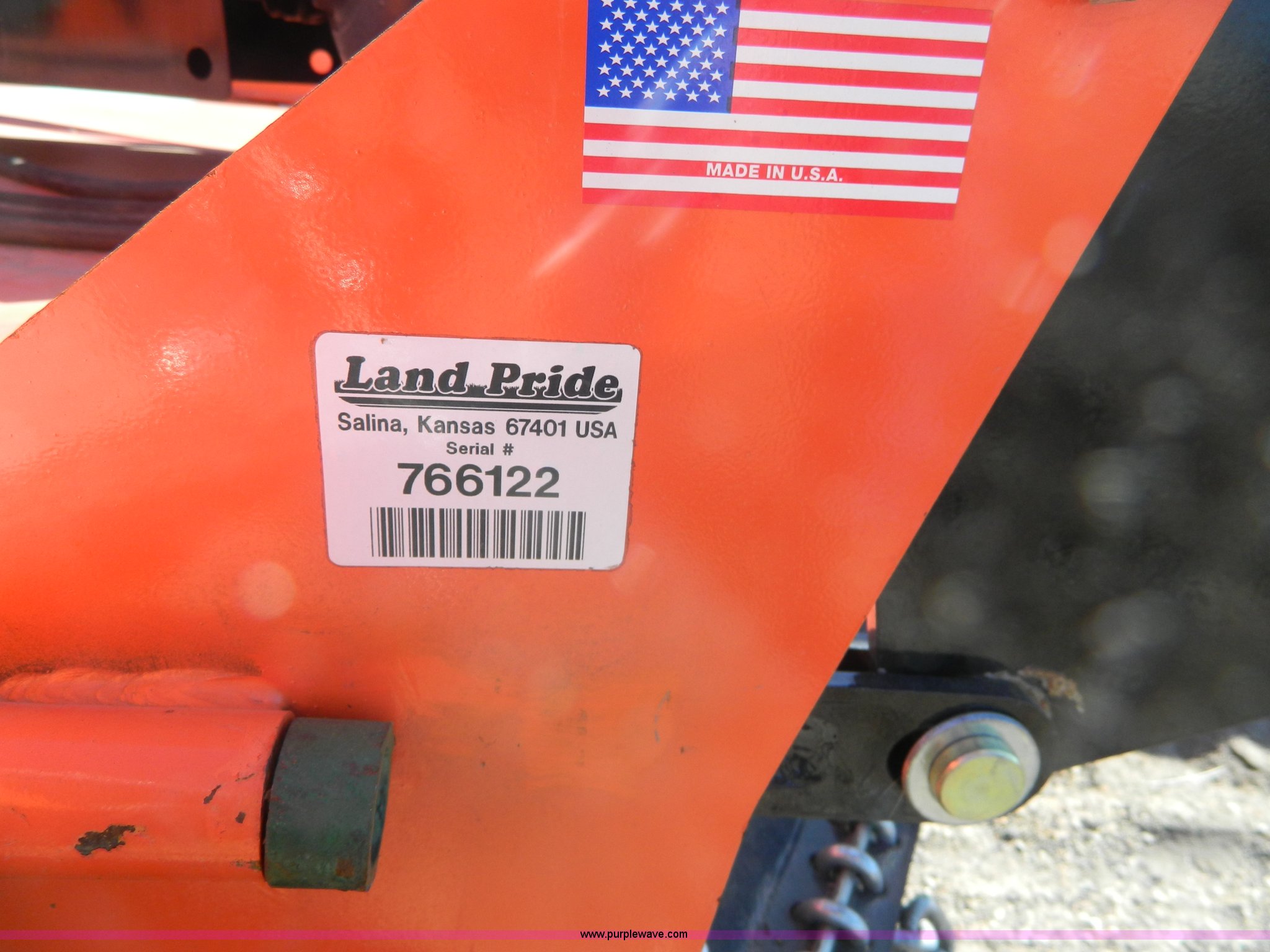 Purple Wave is selling a used Mower, Cutter, Shredder in Kansas. This item is a Land Pride batwing mower with the following: 15' cutting capacity, 540 PTO, Pin hitch, H29 x 90-15 gauge tires, Serial 766122