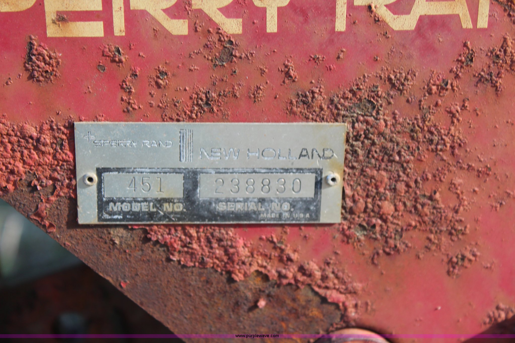 Purple Wave is selling a used Disc or Sickle Mower in Kansas. This item is a New Holland 451 sickle mower with the following: 7'W, 540 PTO, Three point, Serial 238530
