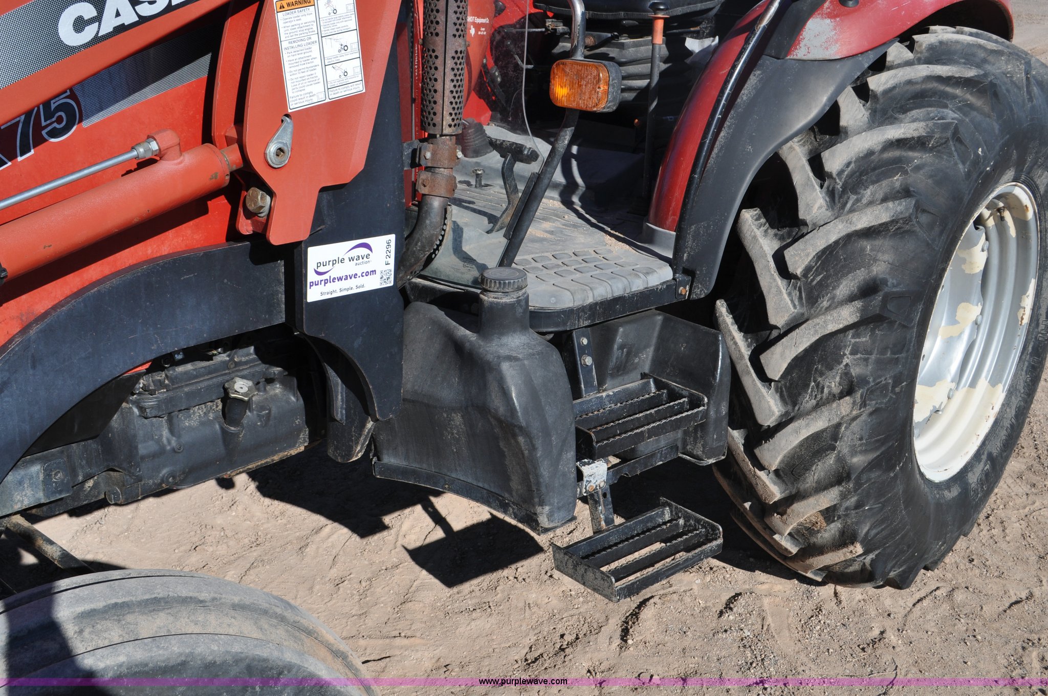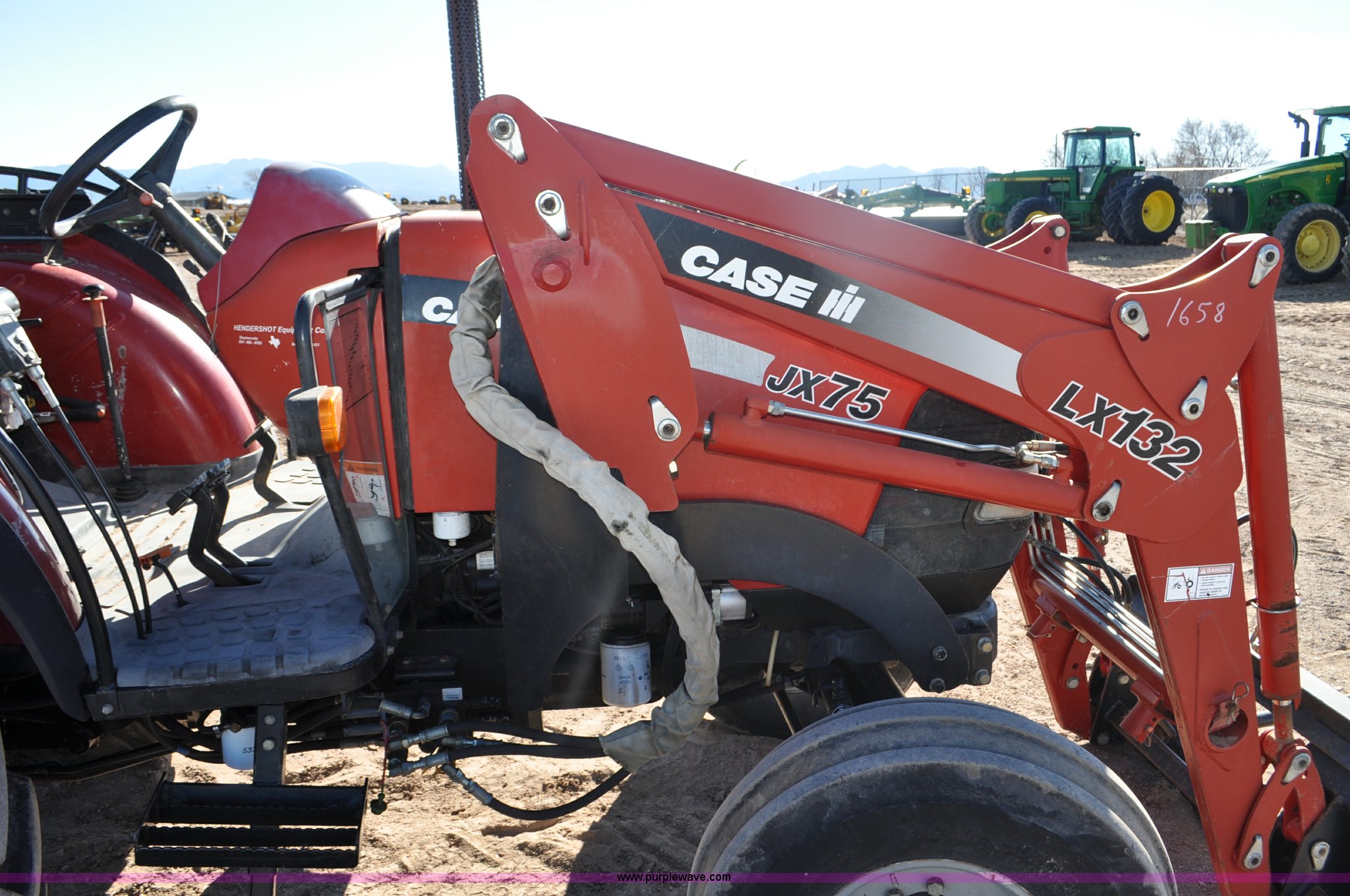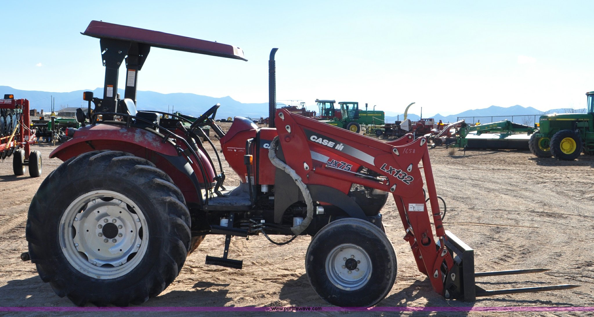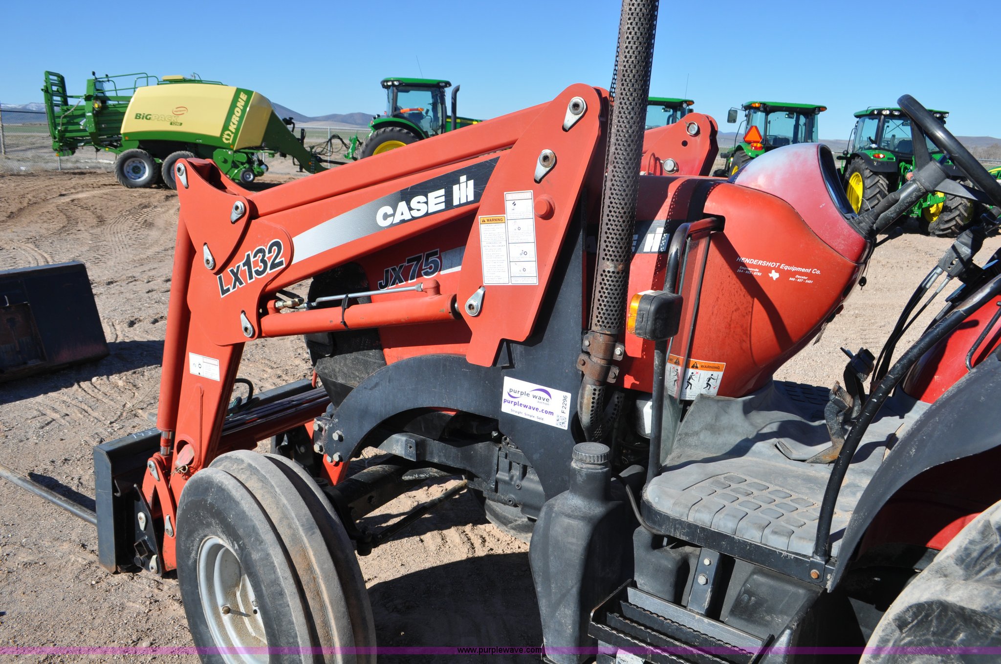 Purple Wave is selling a used Tractor in Utah. This item is a 2003 Case IH JX75 tractor with the following: 1,737 hours on meter, Iveco 3.6L four cylinder diesel engine, 75 HP, Manual transmission, 12F-12R gears, Mid-range gears inoperable, Differential lock, Canopy, Spring suspension seat, Tilt steering wheel, Case IH LX132 loader, 7'W bucket, Holes for bolt-on cutting edge, Two tine hay fork, 44" tines on 32" centers, Manual quick attach, Joystick loader controls, Three point, Draw bar, 540 PTO, (2) rear hydraulic remotes, 10.00-16 front tires, 18.4-30 rear tires, Serial J001814, Unit# U14B1024