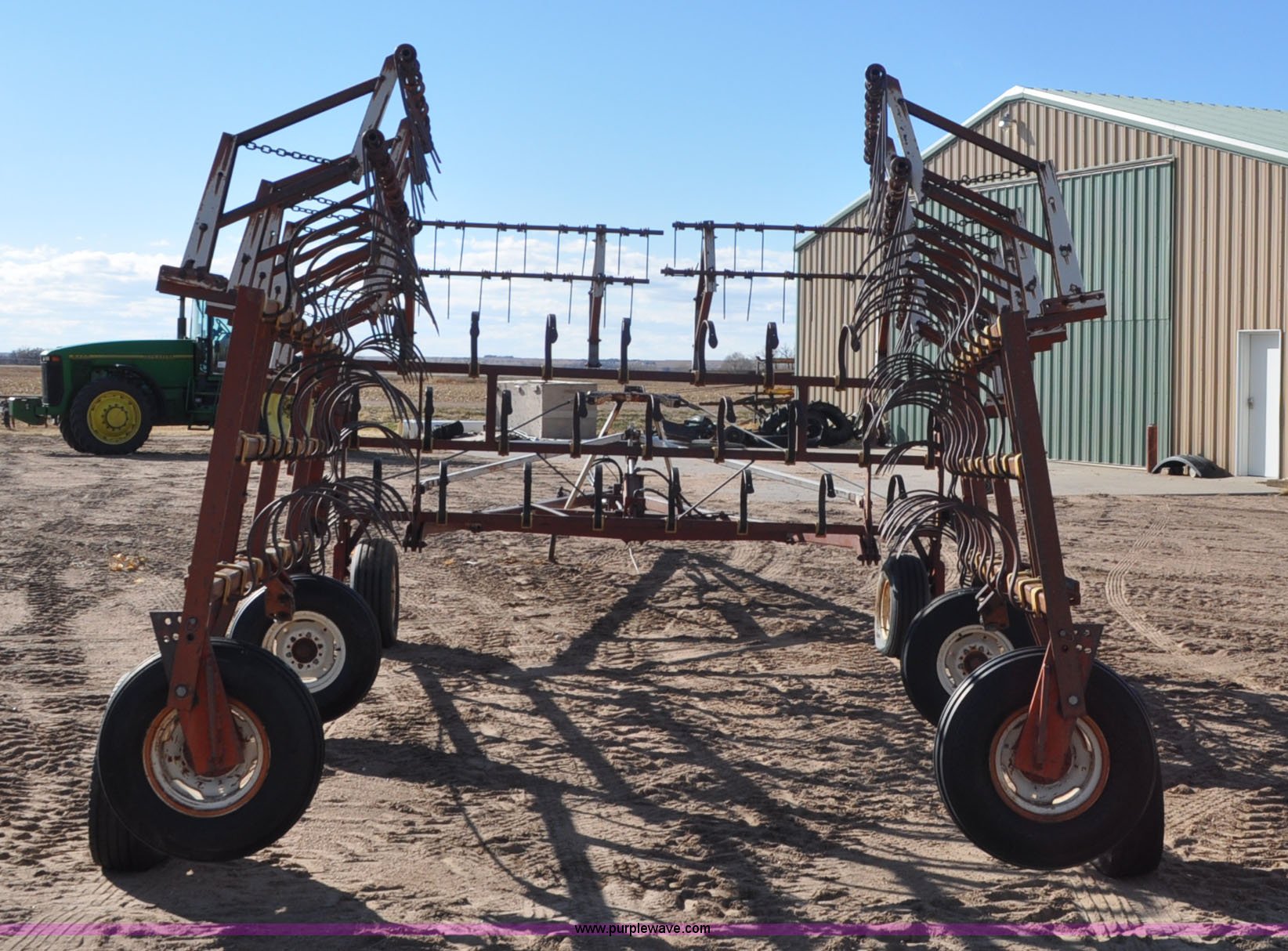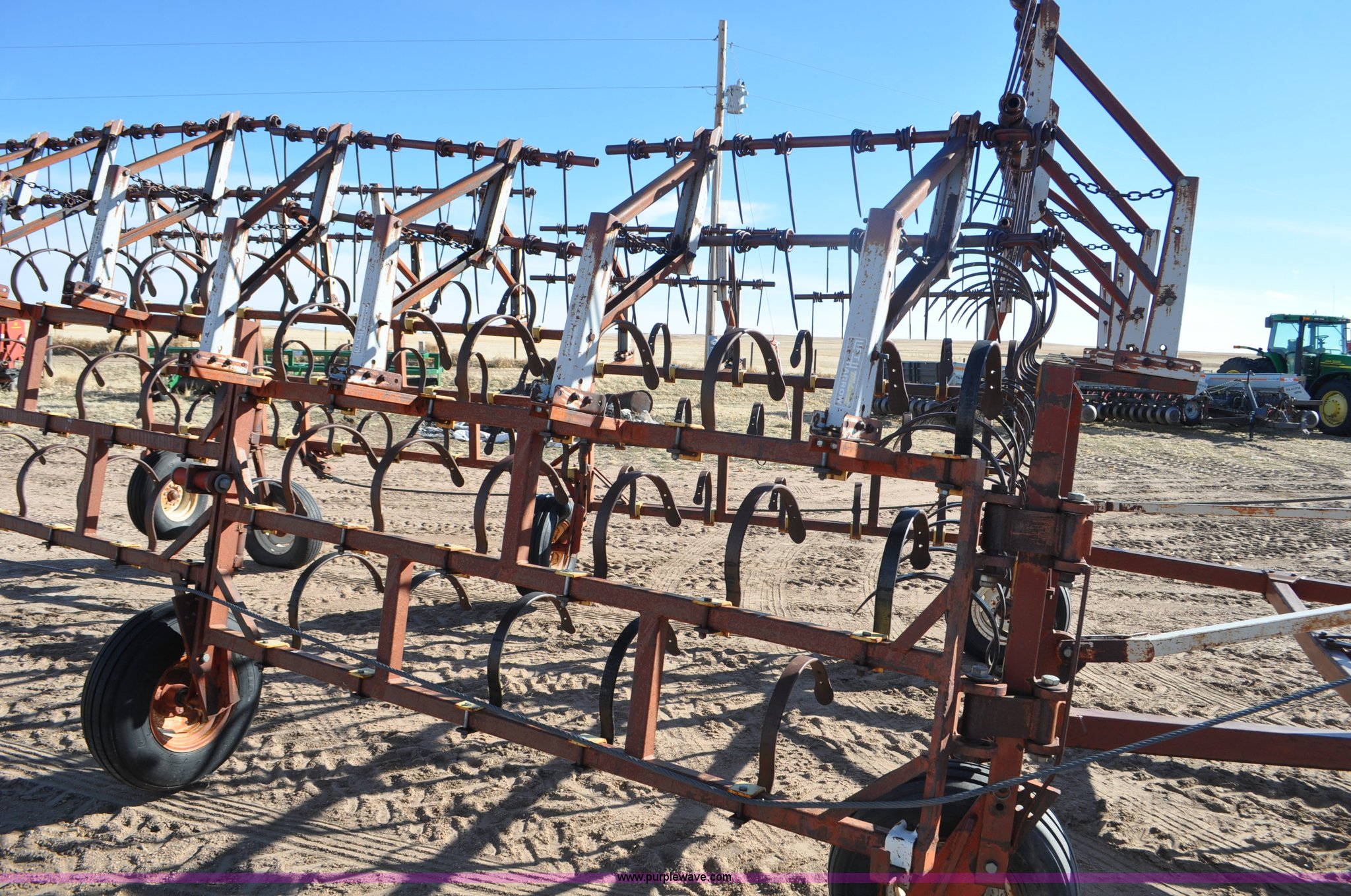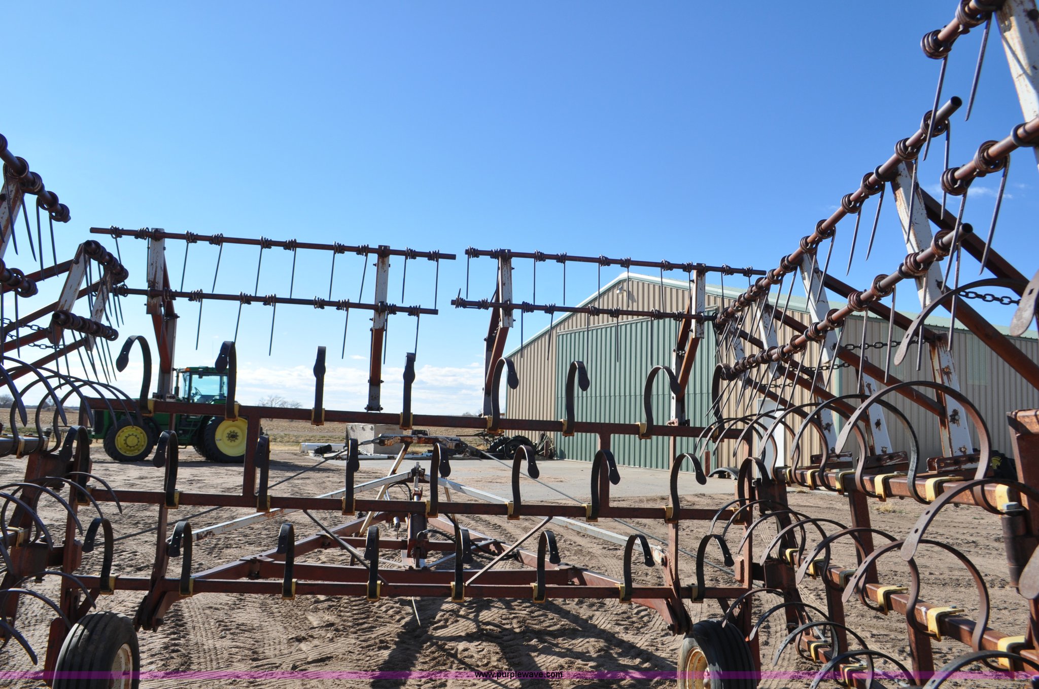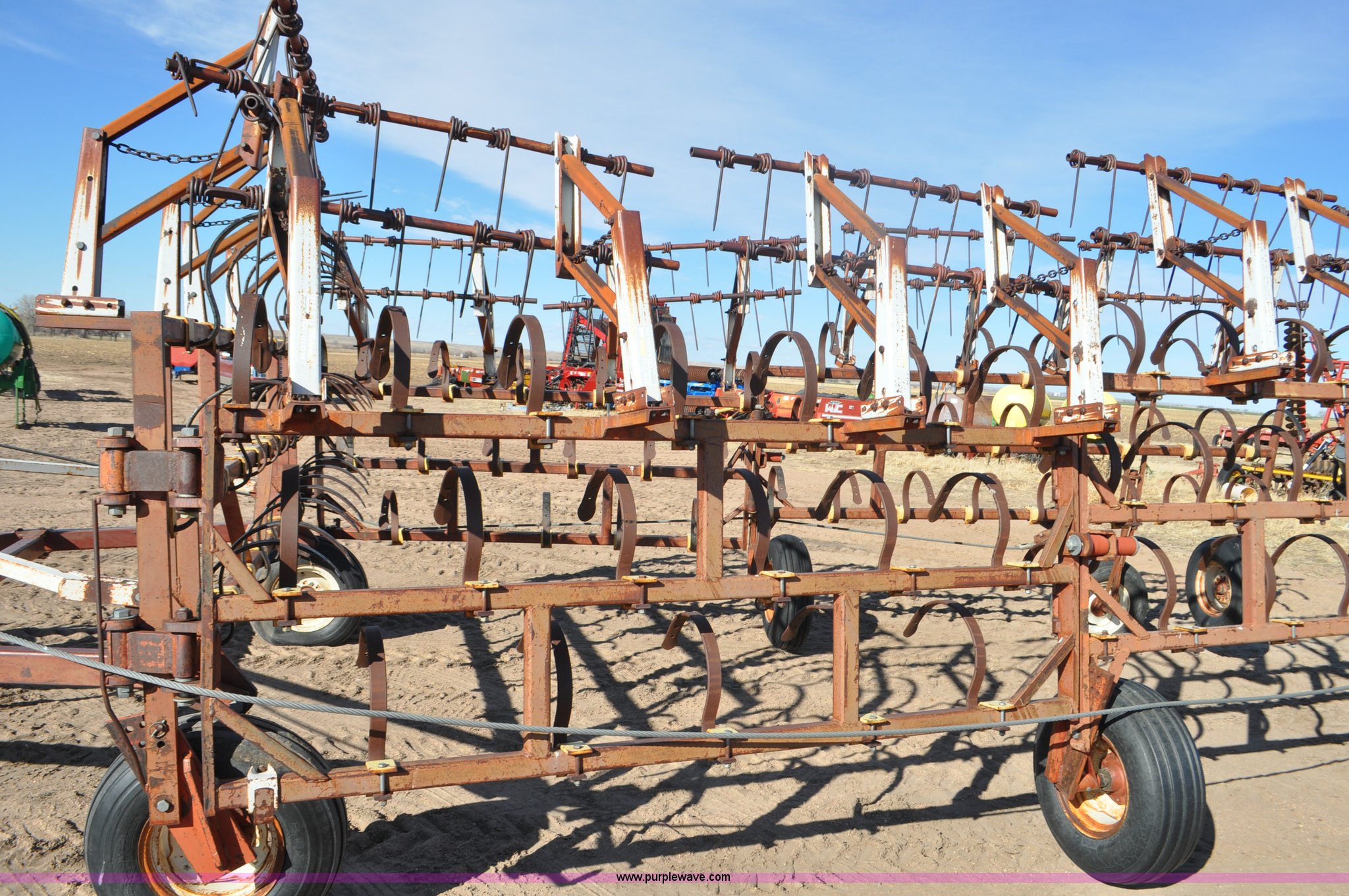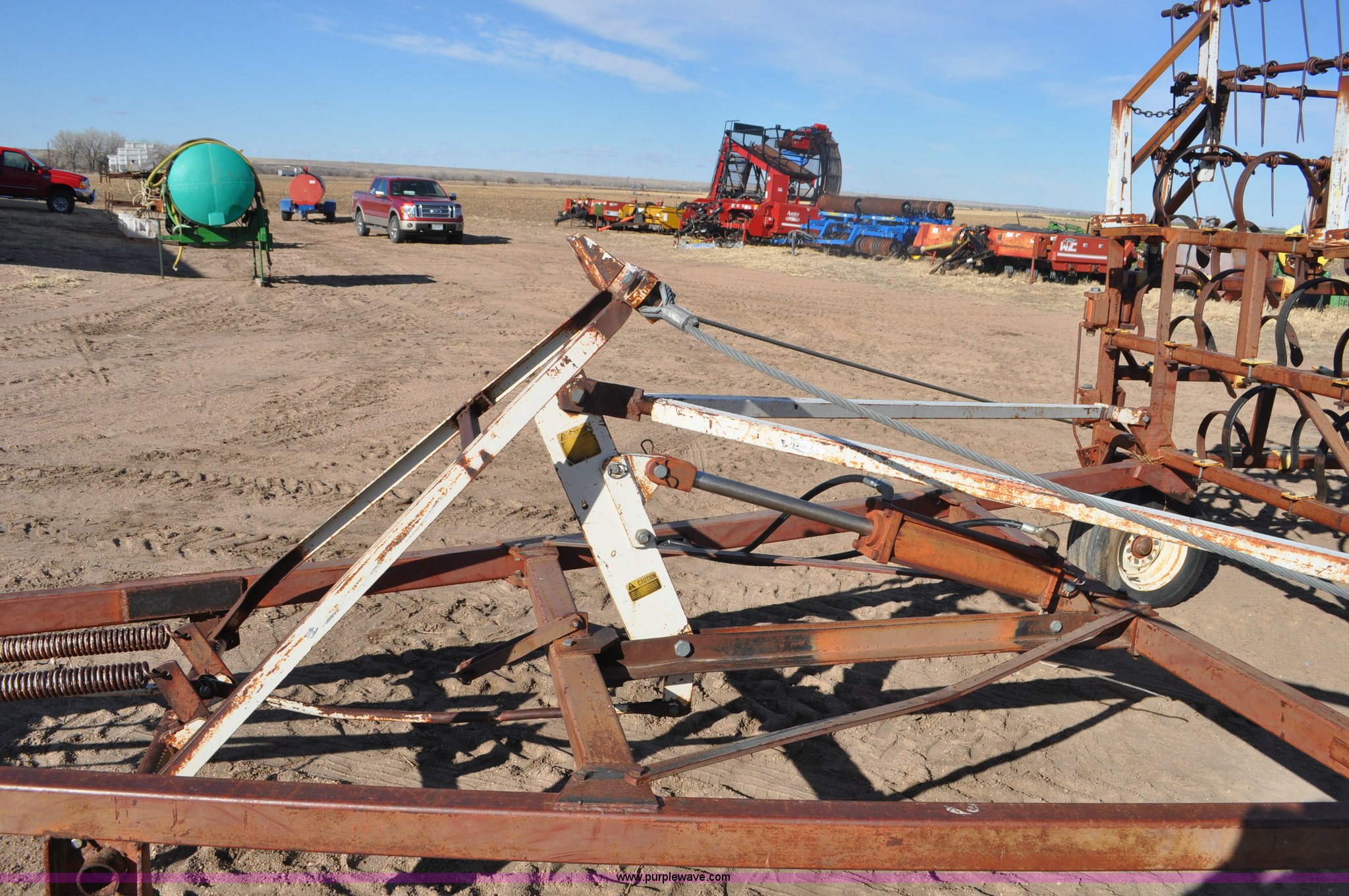 Purple Wave is selling a used Row Crop Cultivator in Colorado. This item is a Spring tooth harrow with the following: 55'W, Spring shanks, Lift to fold, Midwest two bar tine harrows, 9.5L tires