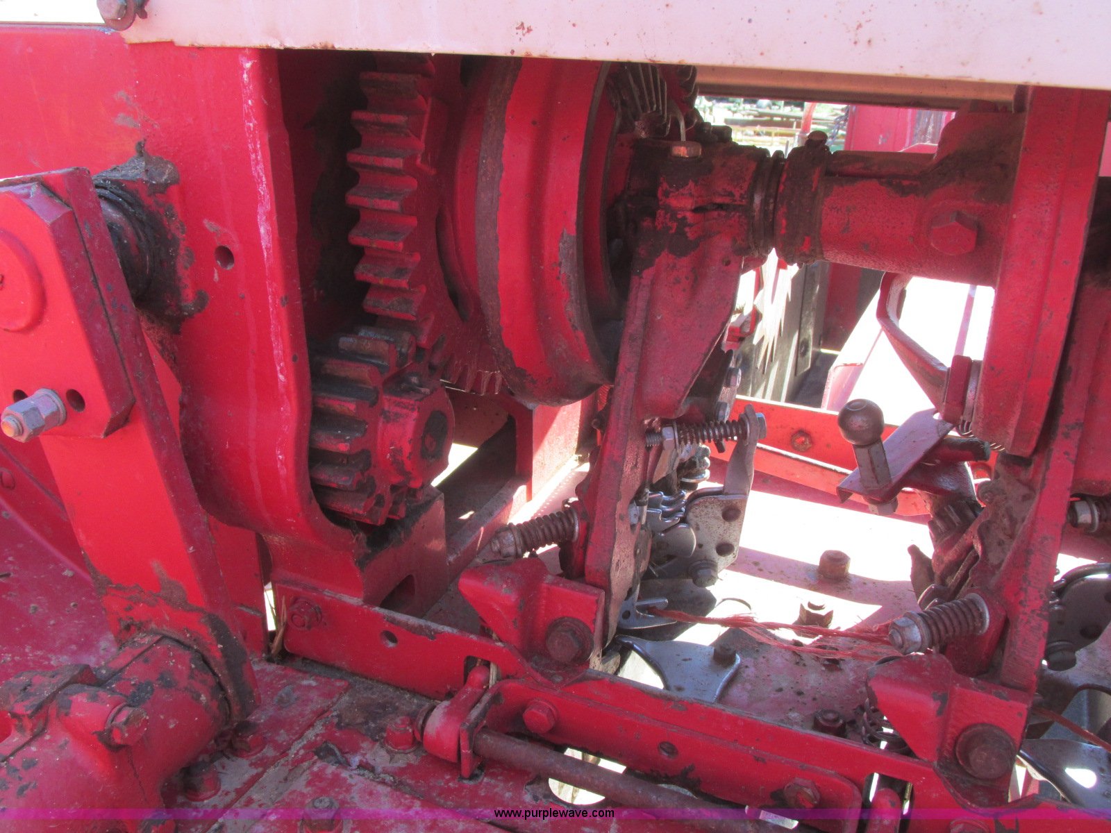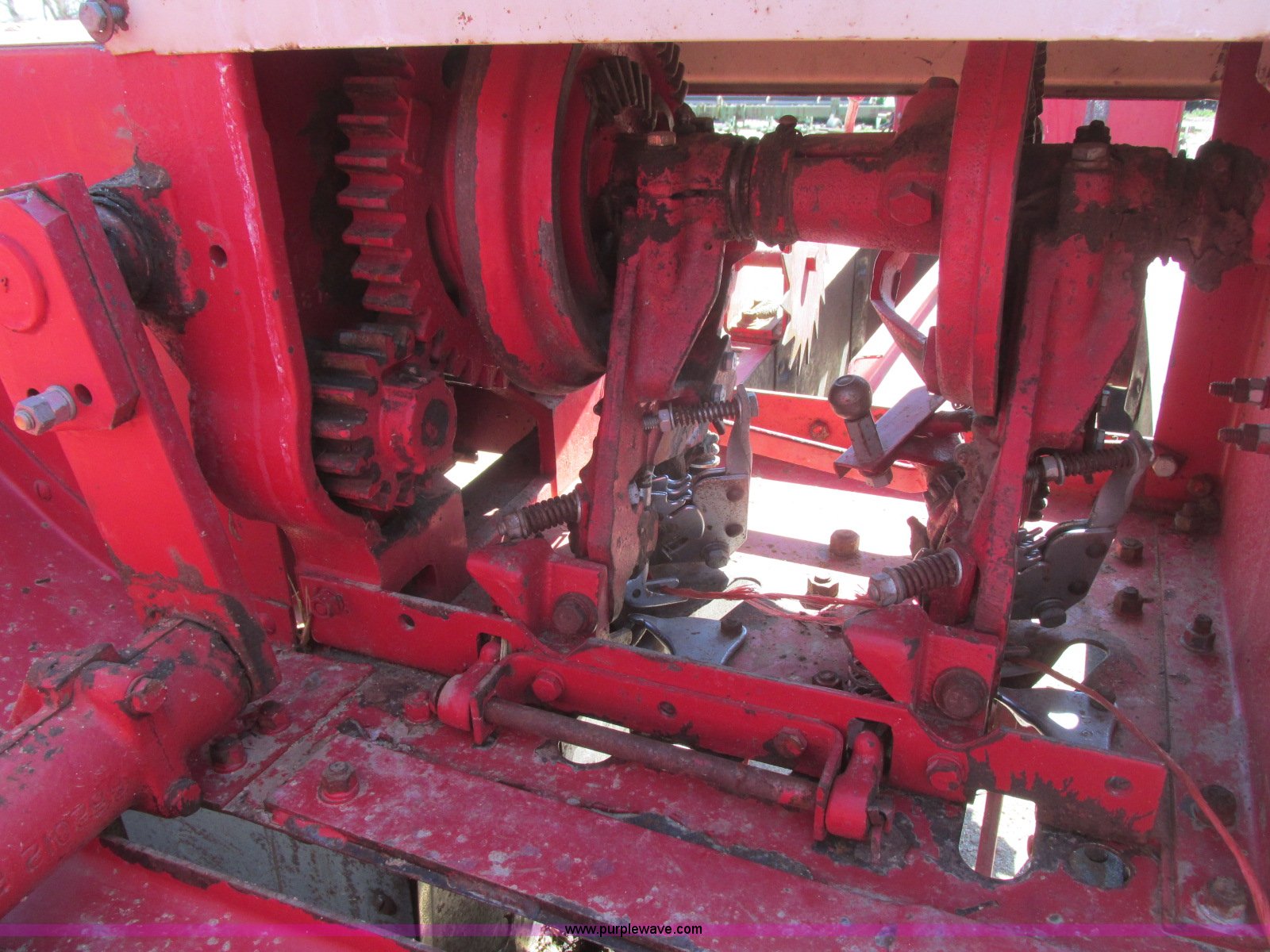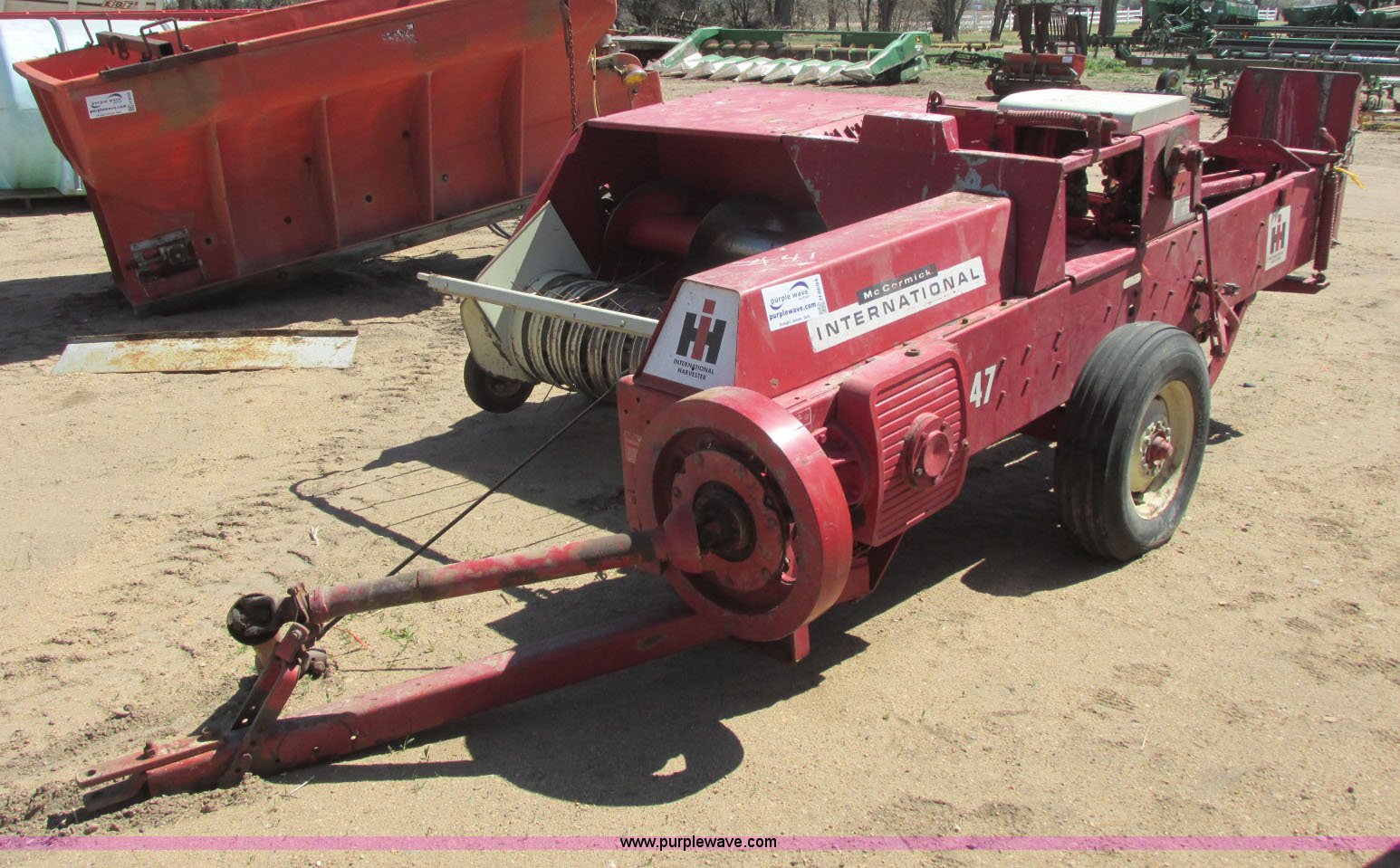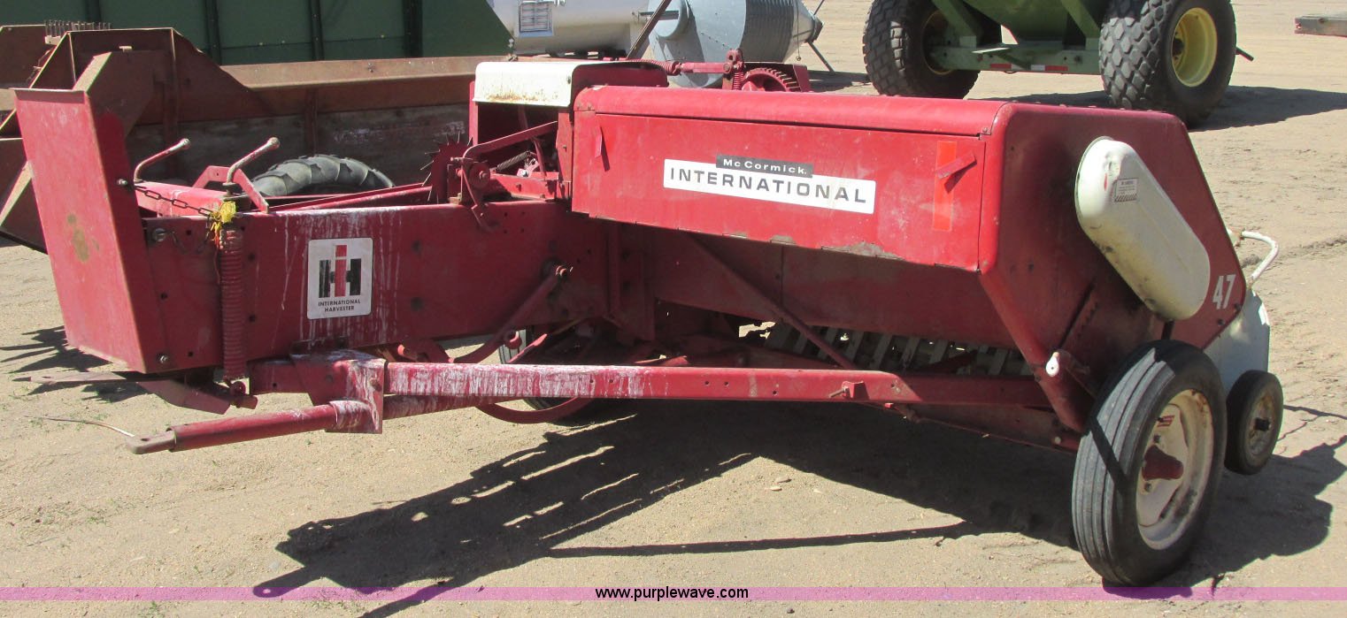 Purple Wave is selling a used Square Baler in Kansas. This item is a International 47 square baler with the following: Twine tie, 51"W pickup, 540 PTO, Pin hitch, Rear pin hitch, Outer pickup head wheel, 5.00-15 tires, 7.60-15 tires, Serial 14902M