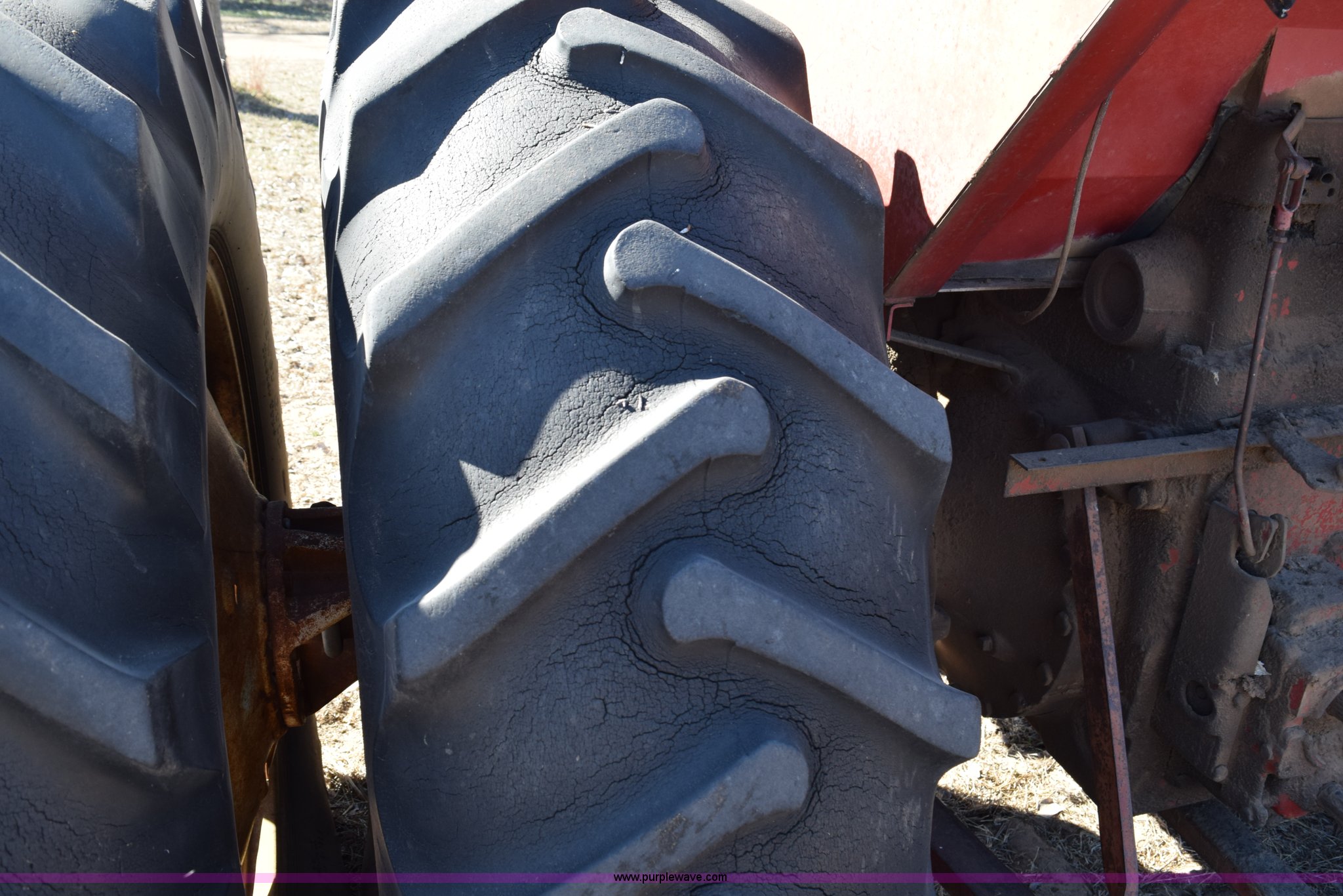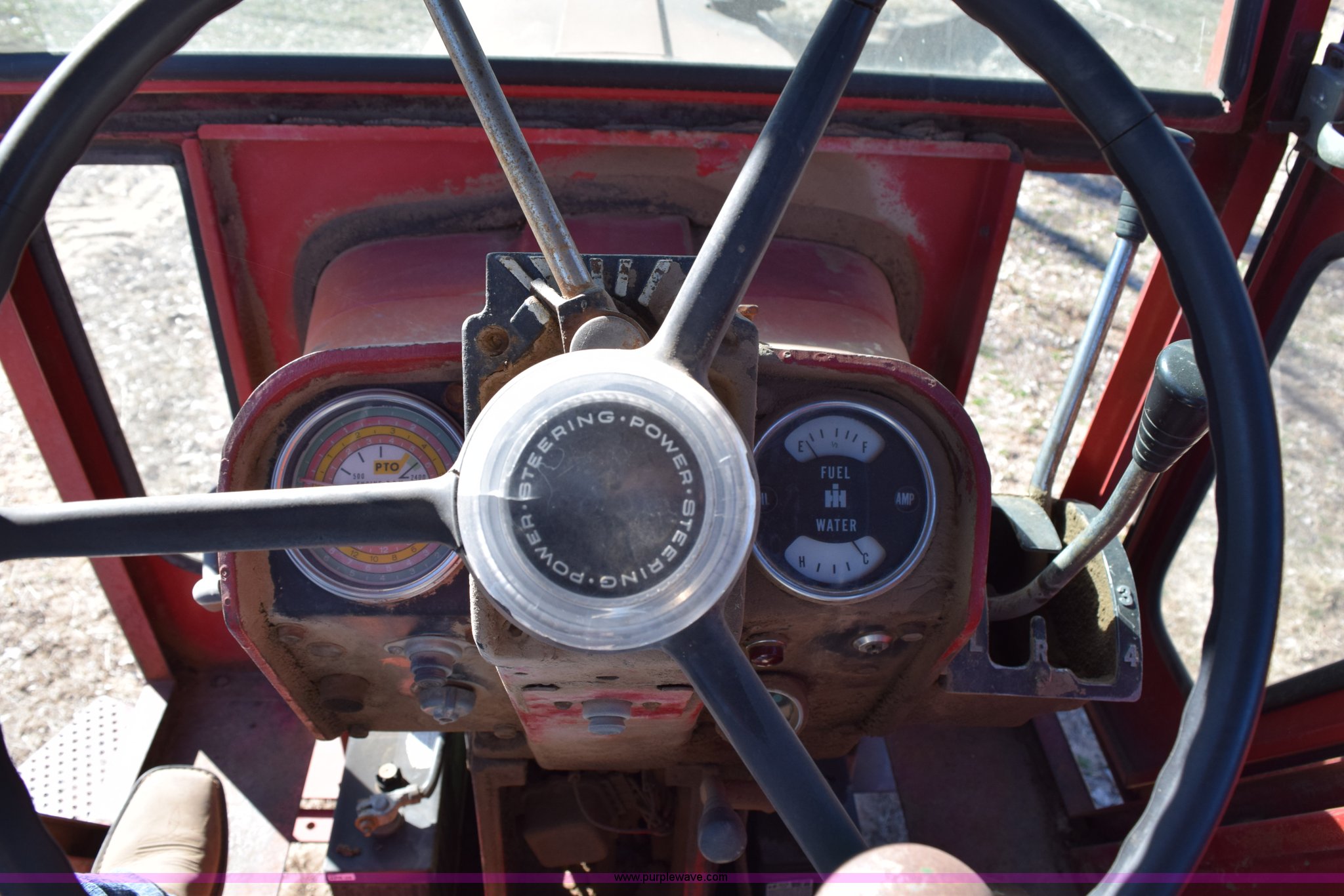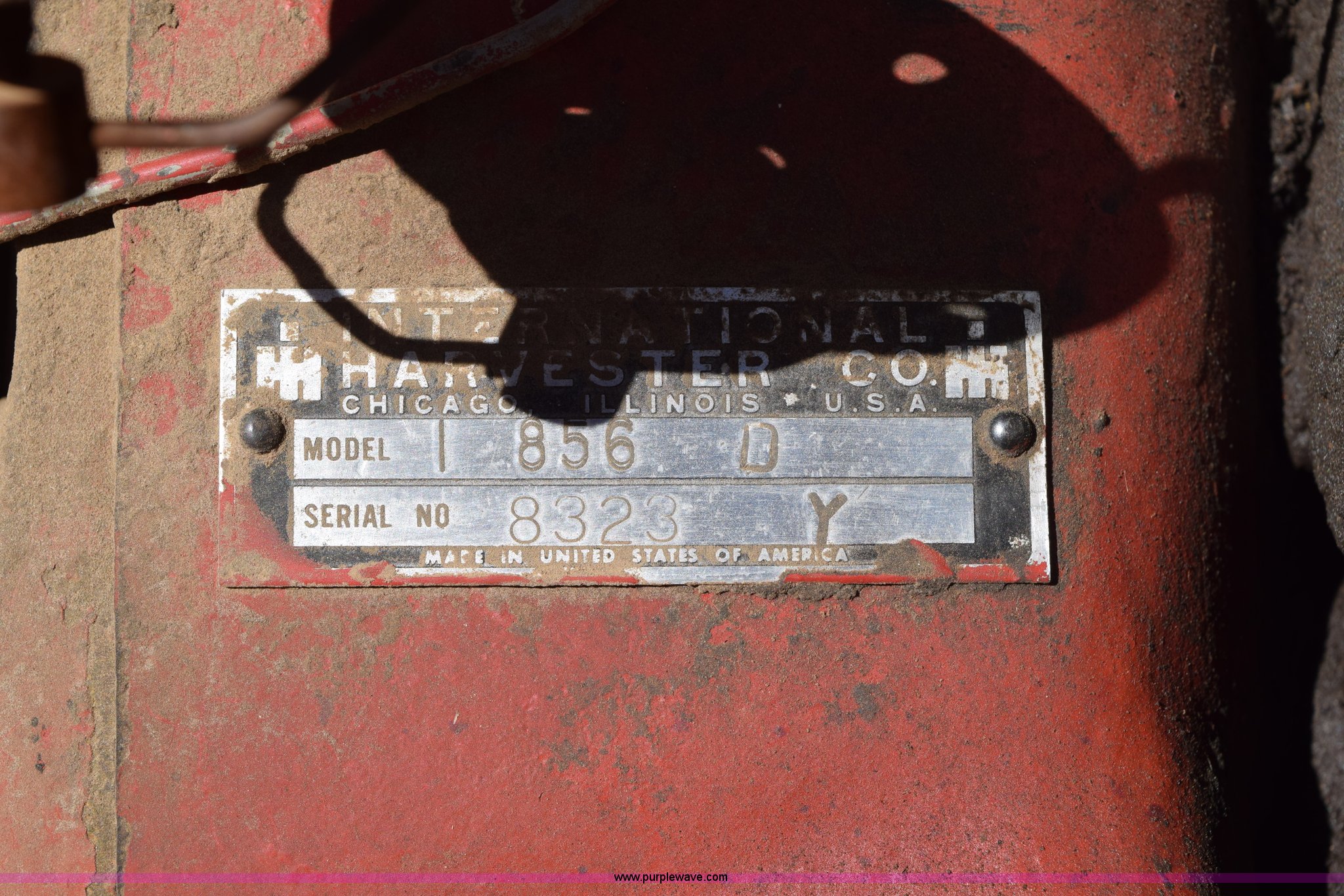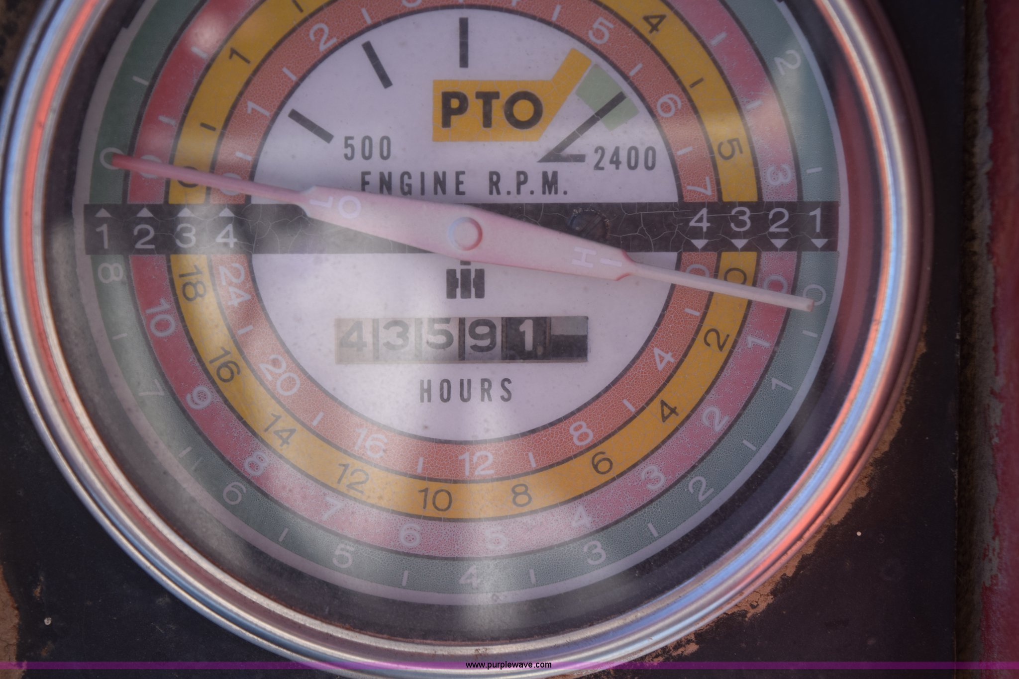 Purple Wave is selling a used Tractor in Kansas. This item is a International 856 tractor with the following: 4,359 hours on meter, International six cylinder diesel engine, 16F-8R gears, Spring suspension seat, Draw bar, 540/1000 PTO, Non-operational, Rear hydraulic remote, 10.00-16 front tires, 18.4-34 rear tires, Non-operational unit, parts only, Serial 8323