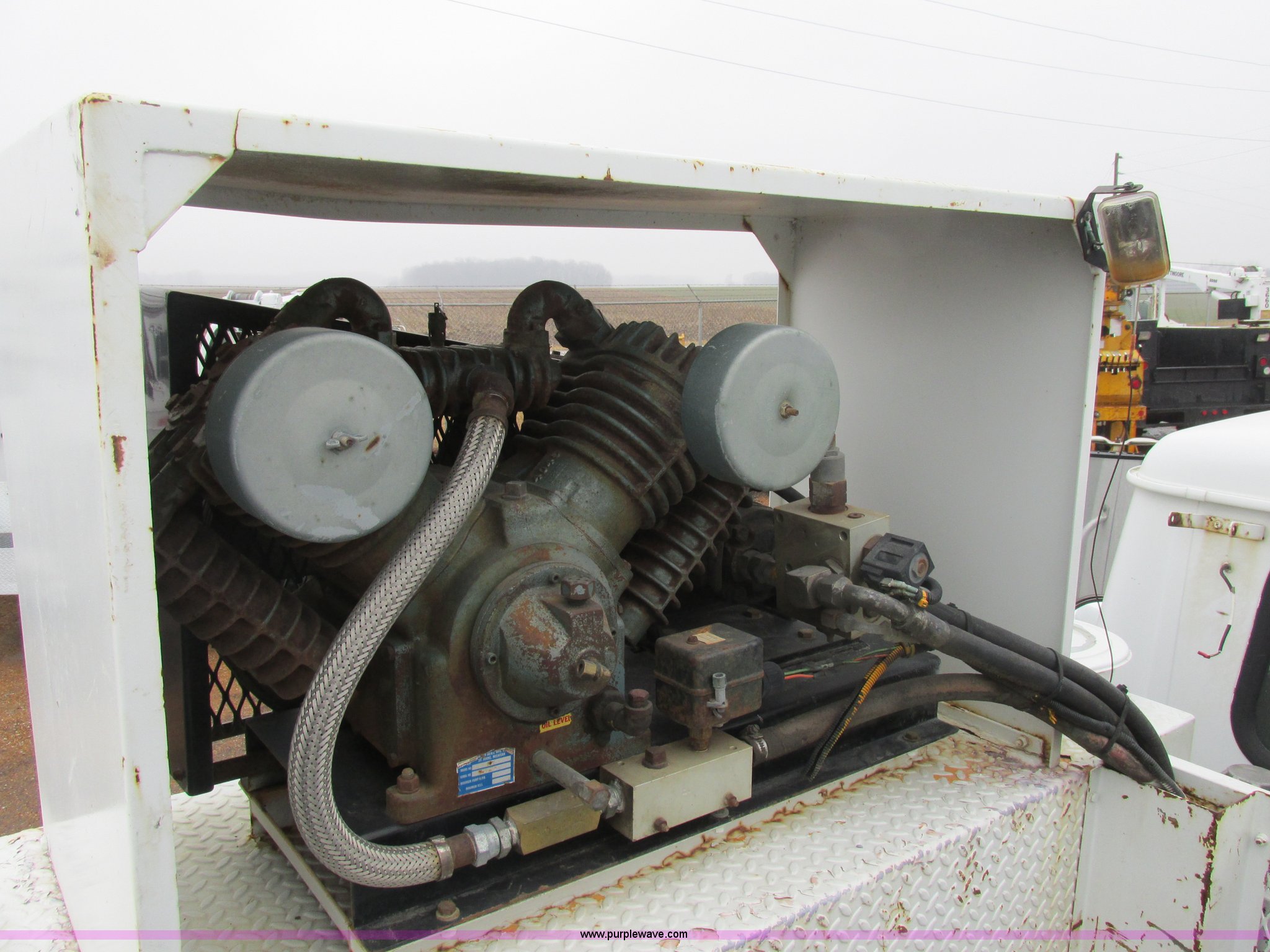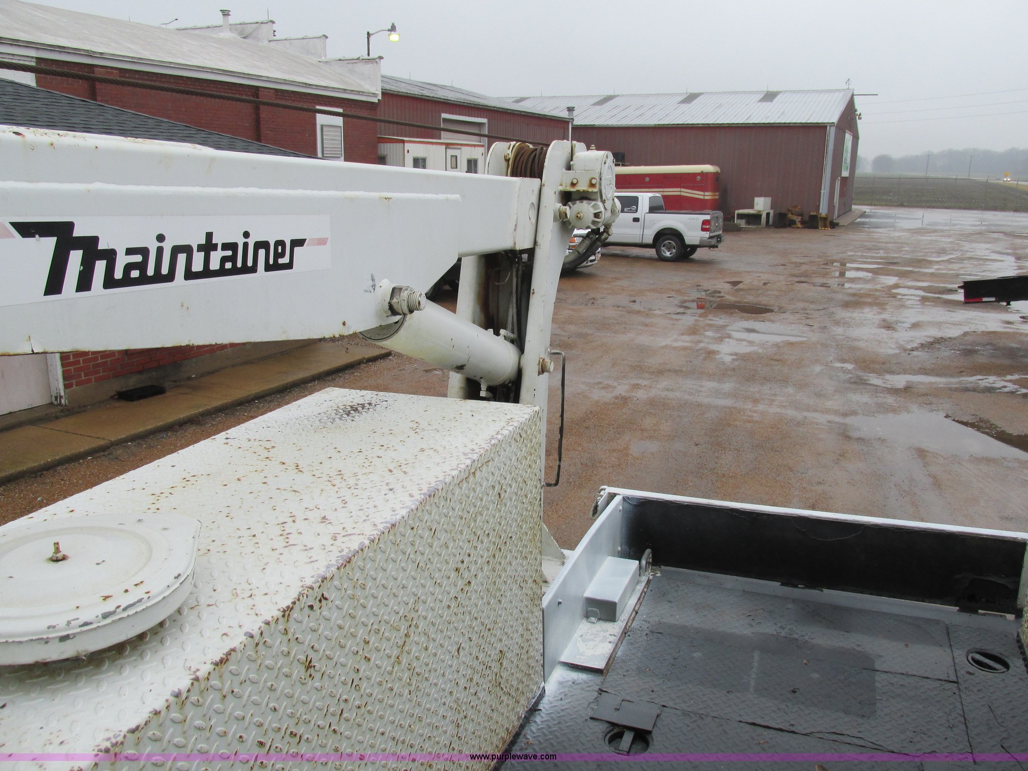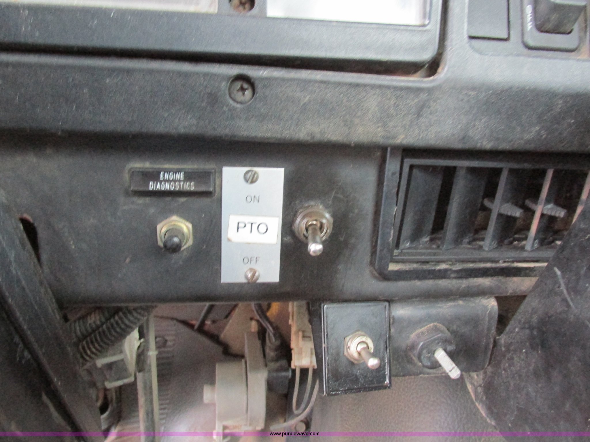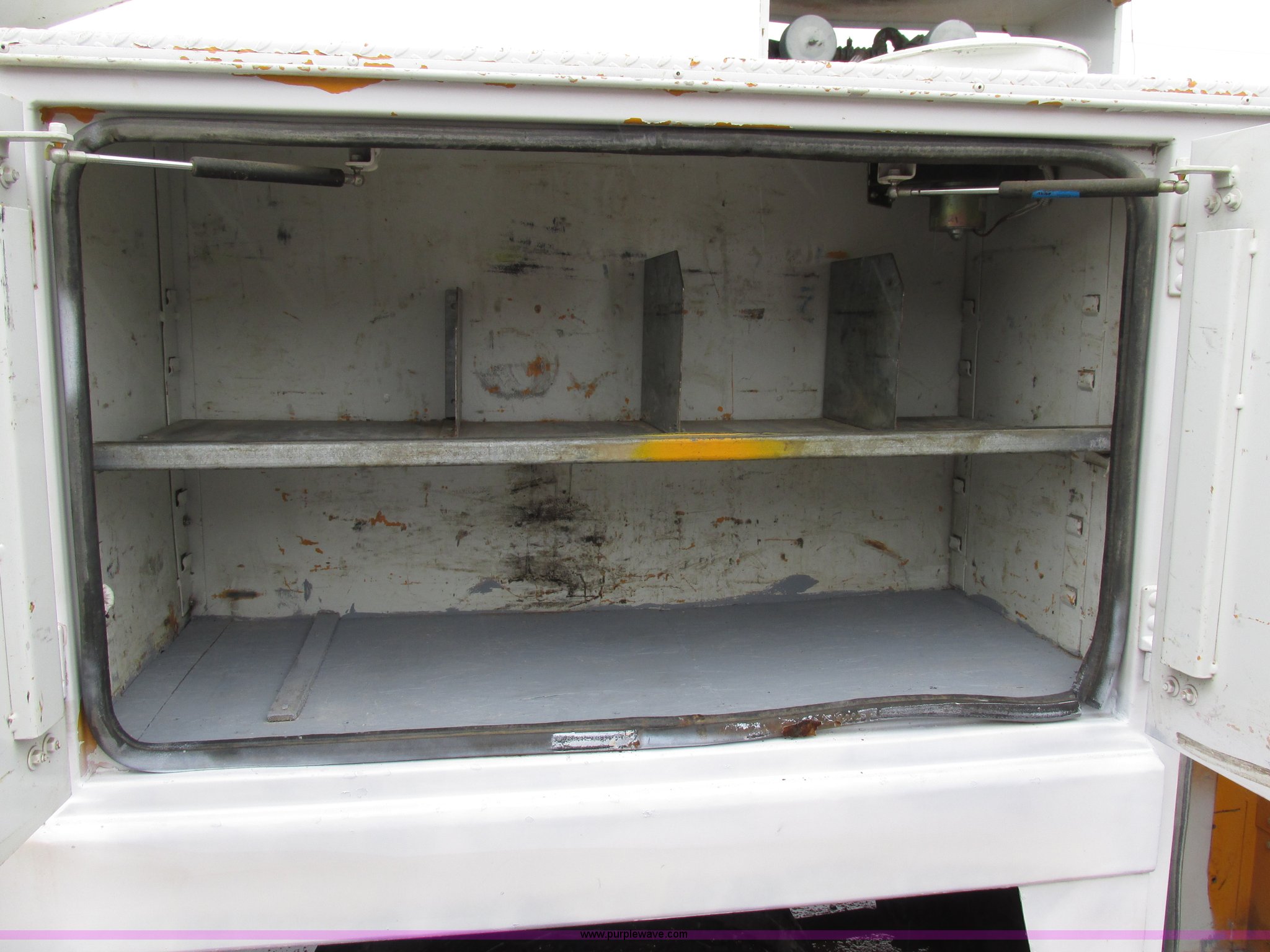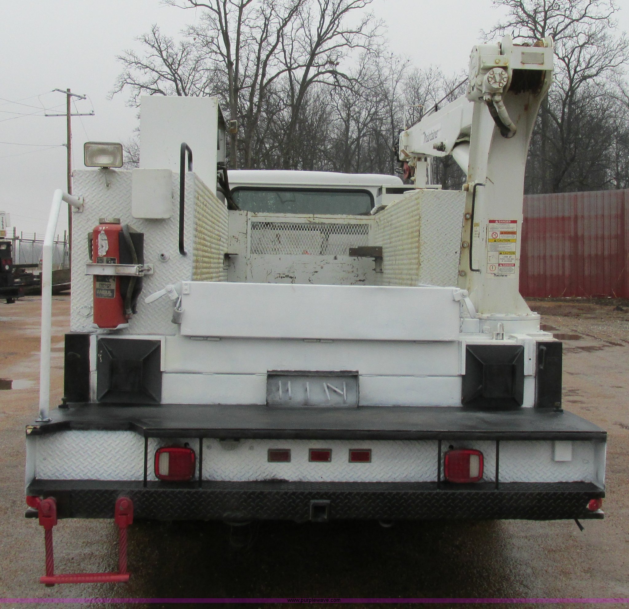 Purple Wave is selling a used Service Truck in Illinois. This item is a 1997 International 4700 service truck with the following: 307,948 miles on odometer, International DT466E 7.6L L6 diesel engine, Allison automatic transmission, Push button, AC and heat, Cruise, AM/FM/CD, Air suspension seat, Uniden CB radio, Maintainer M370 service bed, 11'L, Crane, 8,000 lbs capacity, Hydraulic operation, Serial 970701710528, Snatch block, Tethered remote, Hydraulic outriggers, Air hose reel, Air compressor, Front and rear work lights, Vented boxes, 26" x 94" rear work platform, Fire extinguisher, Dual fuel tanks, 45 and 25 gallon capacities, Hydraulic brakes, 225/70R22.5 tires, GVW 26,000 lbs, One passenger side box rusted
