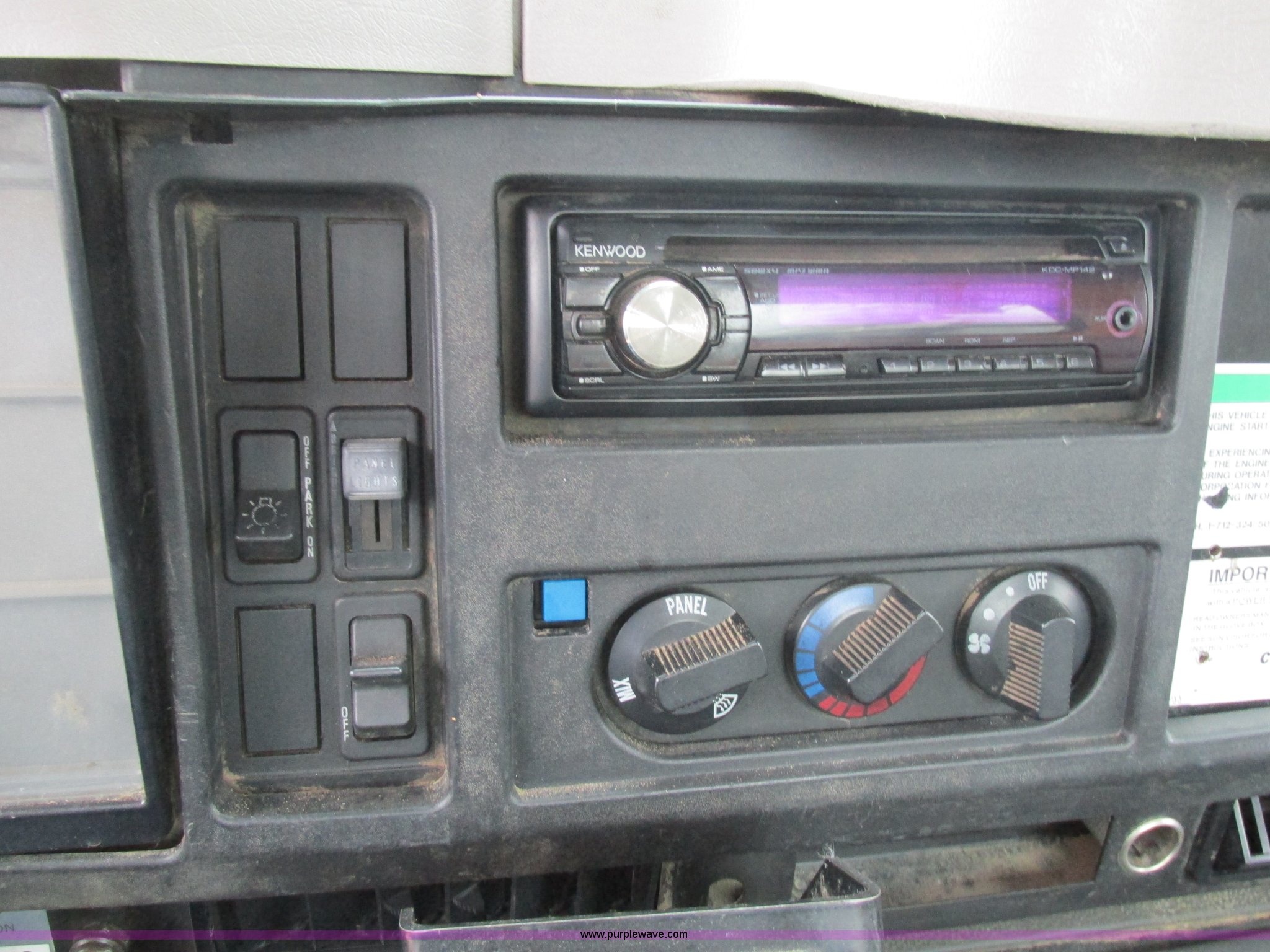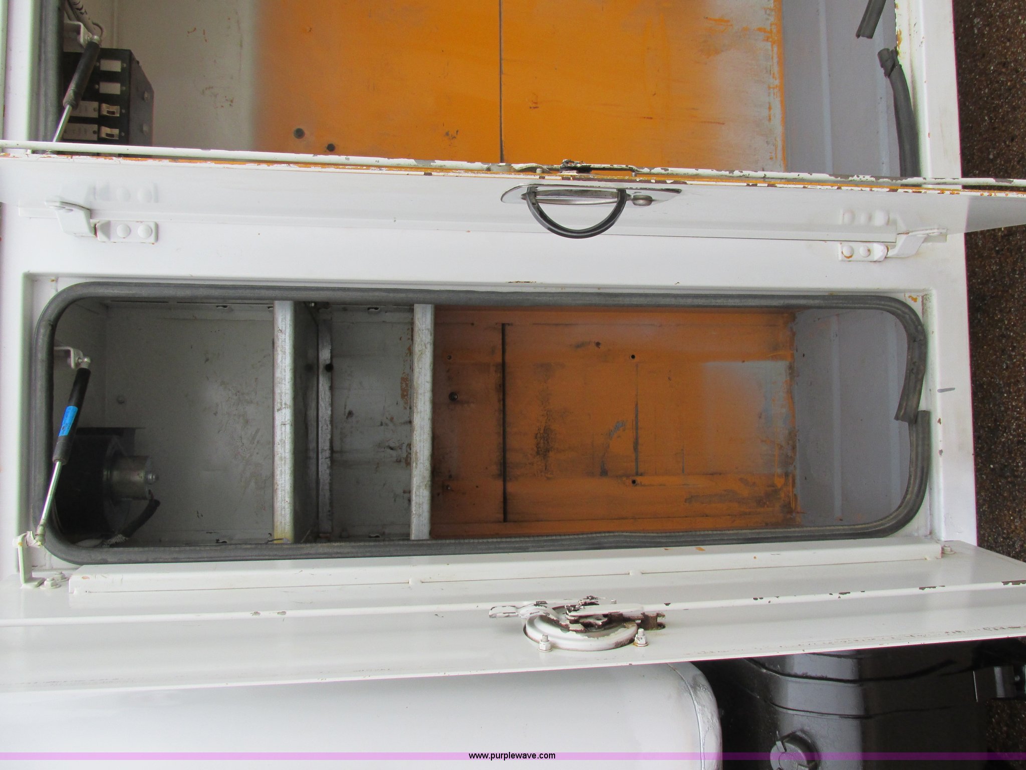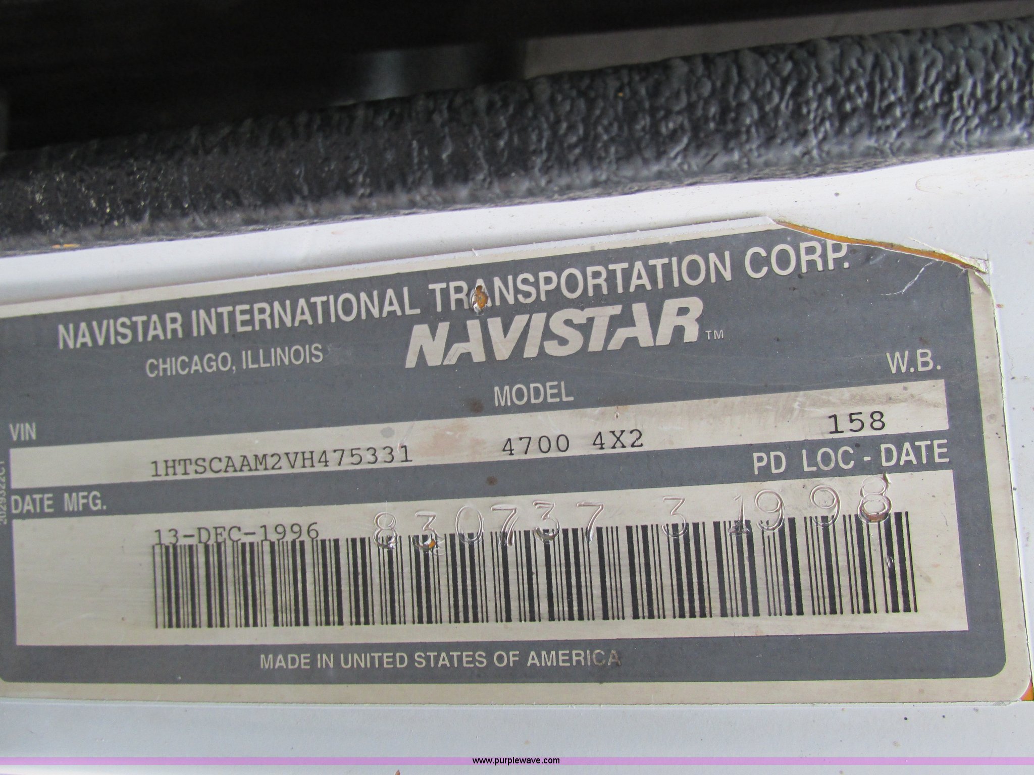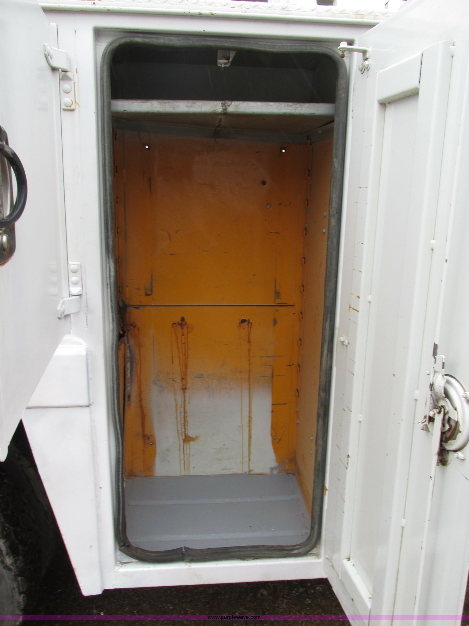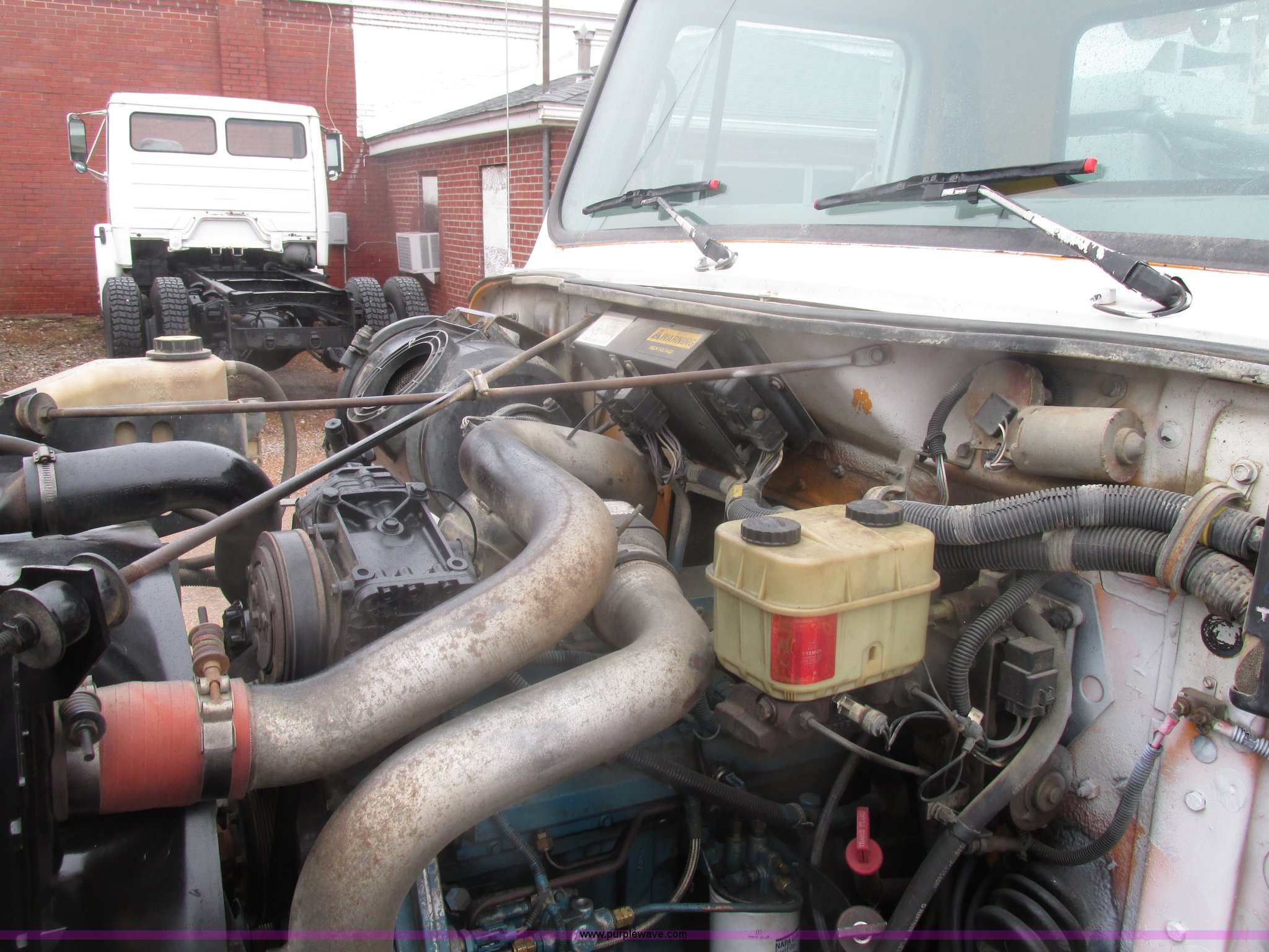 Purple Wave is selling a used Service Truck in Illinois. This item is a 1997 International 4700 service truck with the following: 307,948 miles on odometer, International DT466E 7.6L L6 diesel engine, Allison automatic transmission, Push button, AC and heat, Cruise, AM/FM/CD, Air suspension seat, Uniden CB radio, Maintainer M370 service bed, 11'L, Crane, 8,000 lbs capacity, Hydraulic operation, Serial 970701710528, Snatch block, Tethered remote, Hydraulic outriggers, Air hose reel, Air compressor, Front and rear work lights, Vented boxes, 26" x 94" rear work platform, Fire extinguisher, Dual fuel tanks, 45 and 25 gallon capacities, Hydraulic brakes, 225/70R22.5 tires, GVW 26,000 lbs, One passenger side box rusted