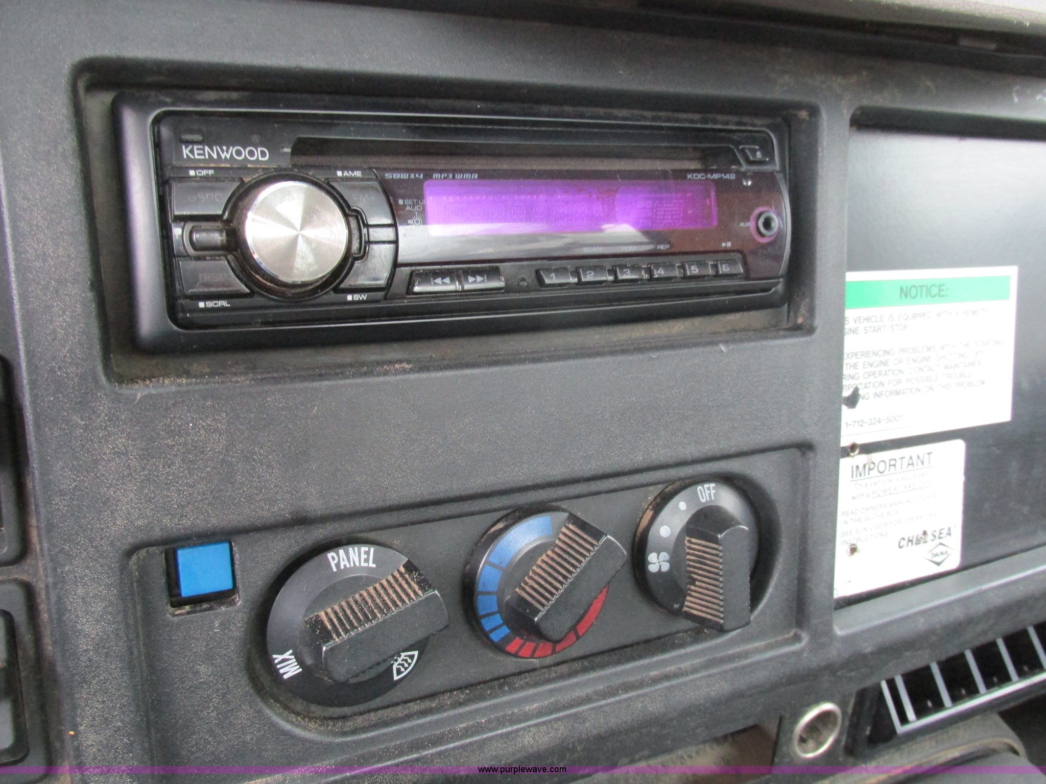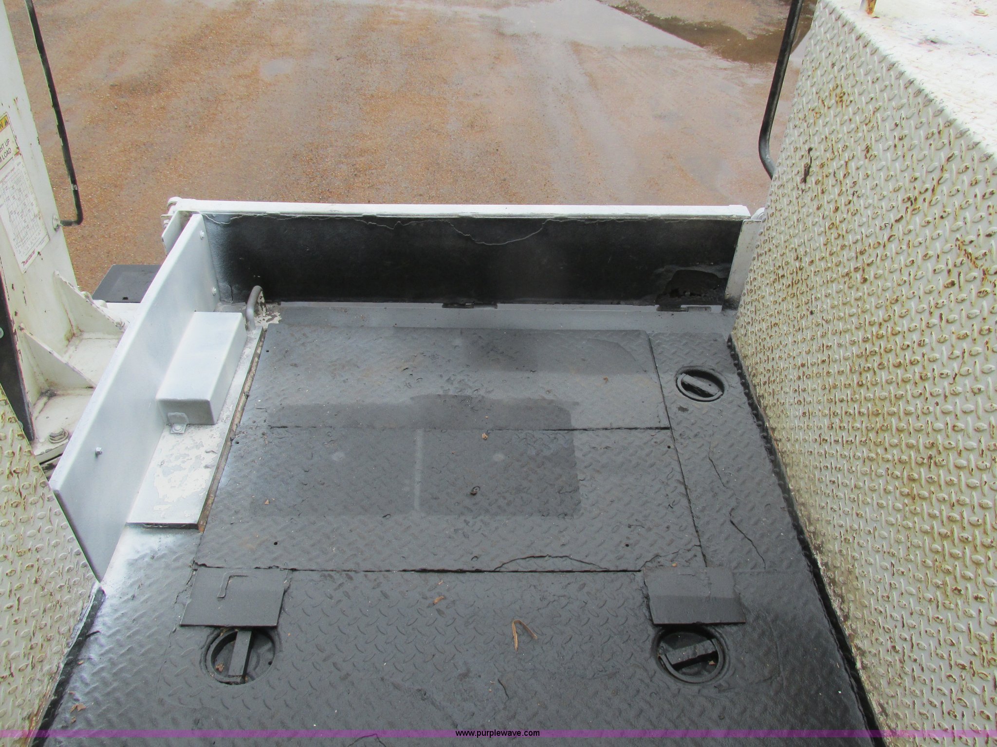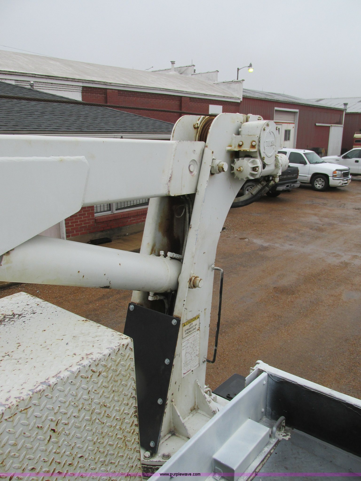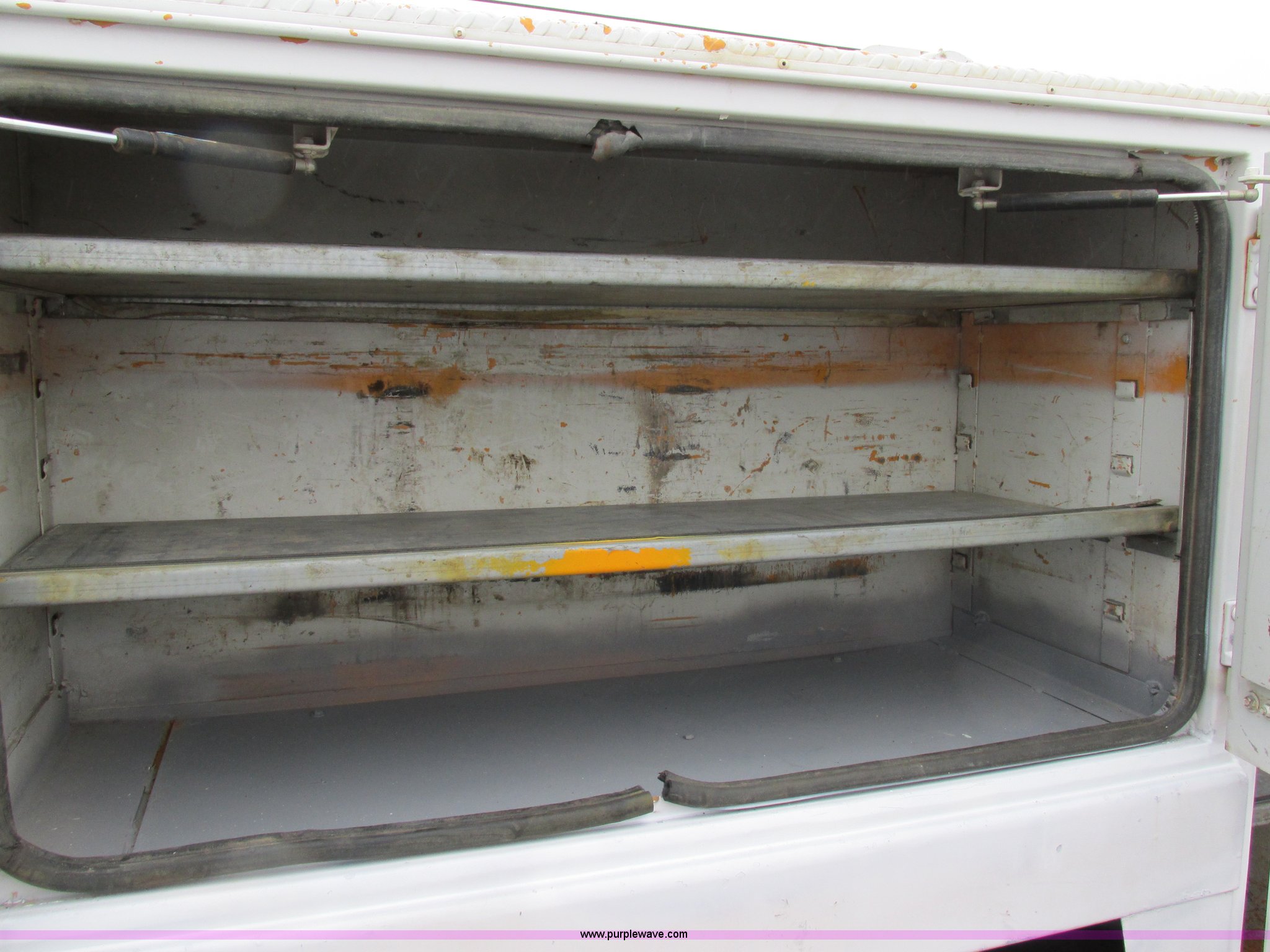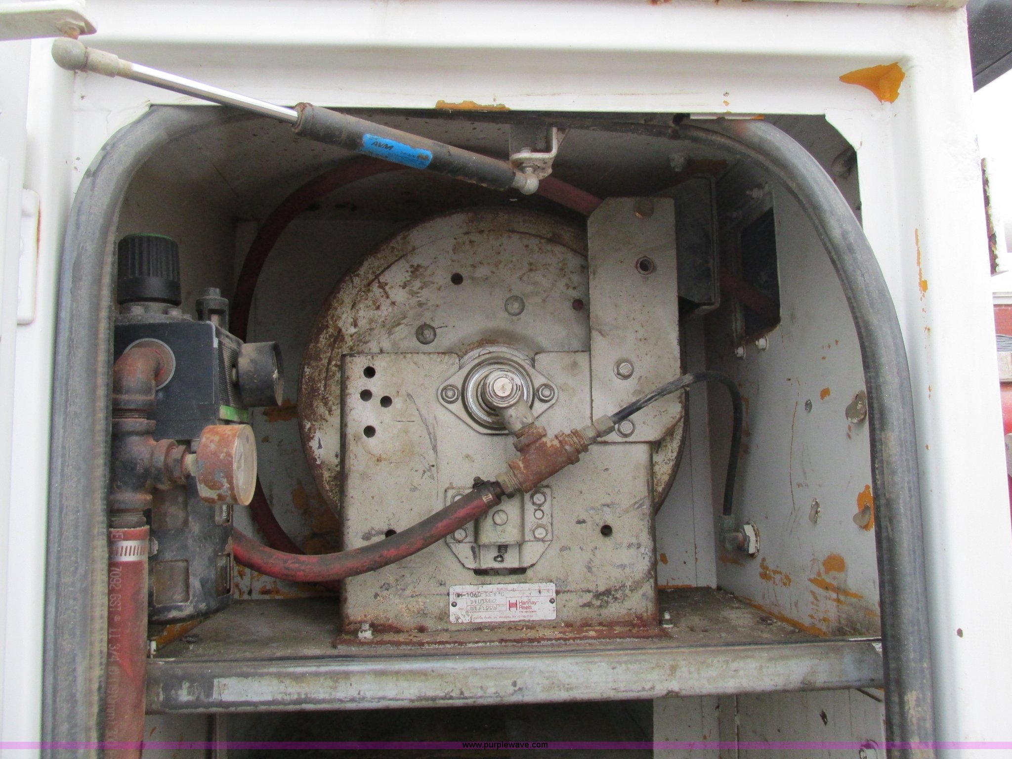 Purple Wave is selling a used Service Truck in Illinois. This item is a 1997 International 4700 service truck with the following: 307,948 miles on odometer, International DT466E 7.6L L6 diesel engine, Allison automatic transmission, Push button, AC and heat, Cruise, AM/FM/CD, Air suspension seat, Uniden CB radio, Maintainer M370 service bed, 11'L, Crane, 8,000 lbs capacity, Hydraulic operation, Serial 970701710528, Snatch block, Tethered remote, Hydraulic outriggers, Air hose reel, Air compressor, Front and rear work lights, Vented boxes, 26" x 94" rear work platform, Fire extinguisher, Dual fuel tanks, 45 and 25 gallon capacities, Hydraulic brakes, 225/70R22.5 tires, GVW 26,000 lbs, One passenger side box rusted