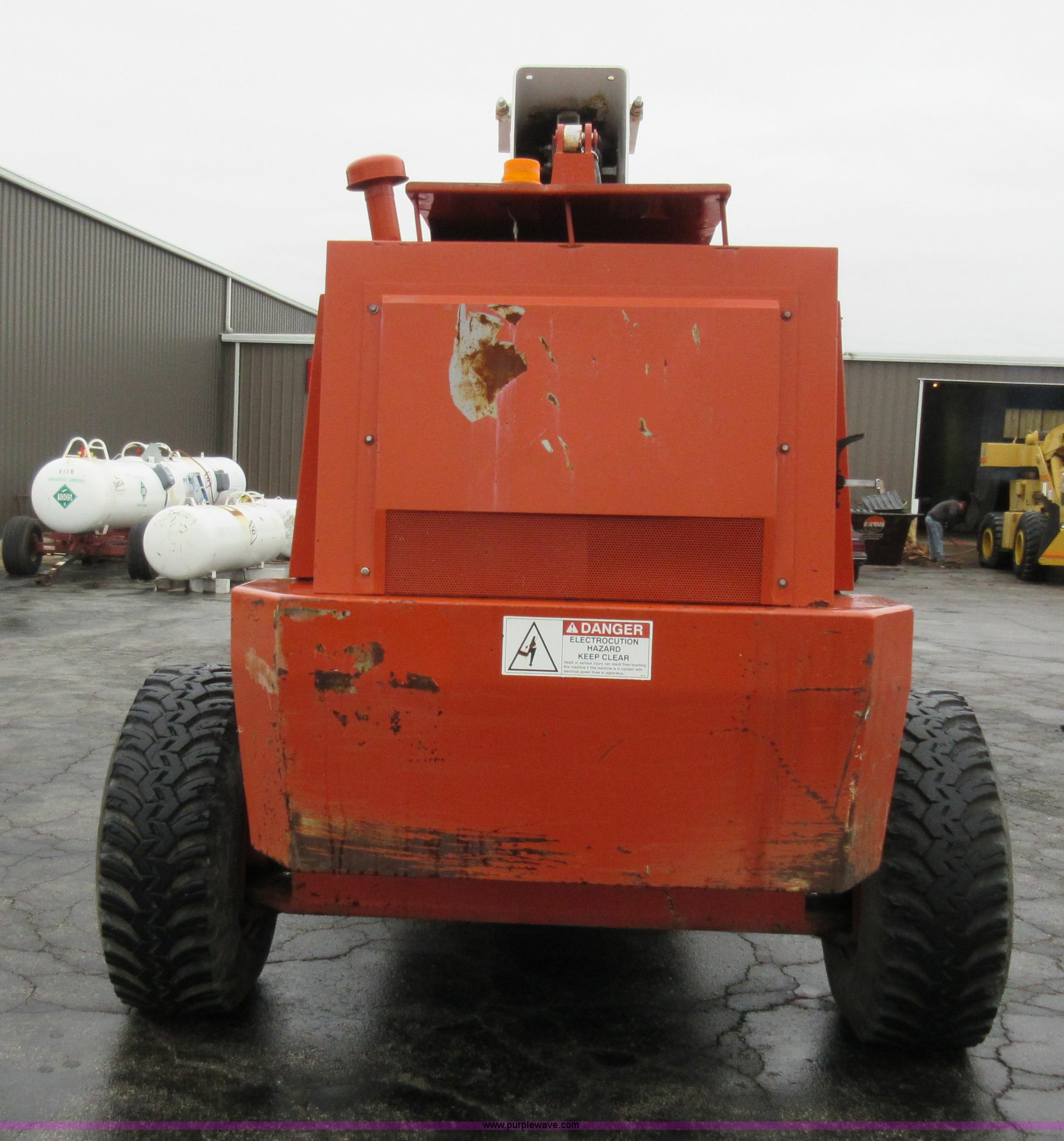 Purple Wave is selling a used Boom Lift in Illinois. This item is a Snorkel TB 80 boom lift with the following: 8,239 hours on meter, Four cylinder diesel engine, Hydrostatic transmission, Four wheel drive, 600 lbs maximum lift capacity, 80' maximum platform height, 71.2' maximum reach, Ground and platform controls, 92" x 30" platform, Hydraulic slide-out axle, 21.1' wheelbase, 15-22.5 tires, 30,300 lbs. base operating weight, Serial 9632190996