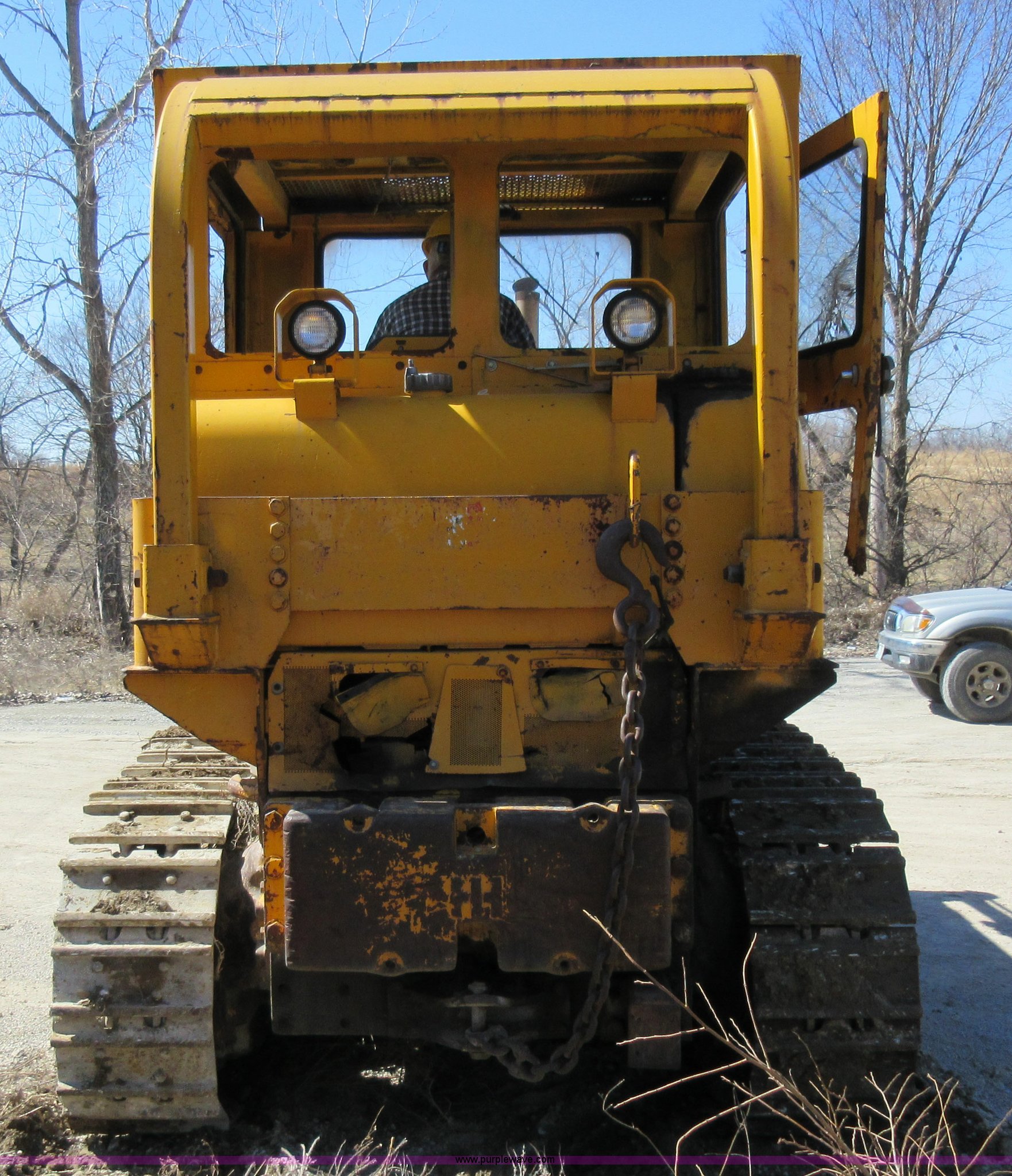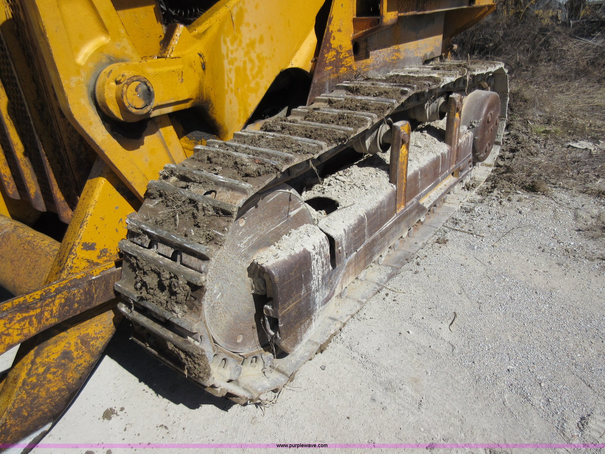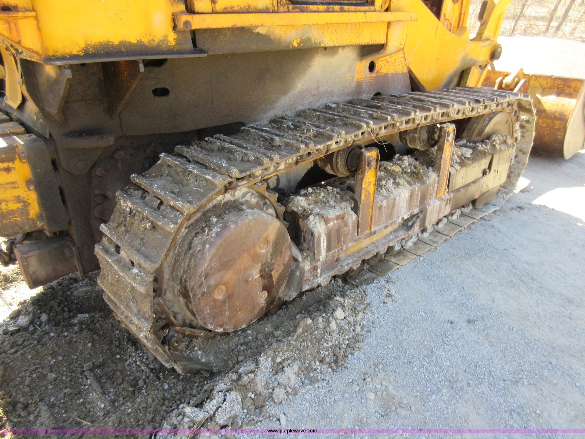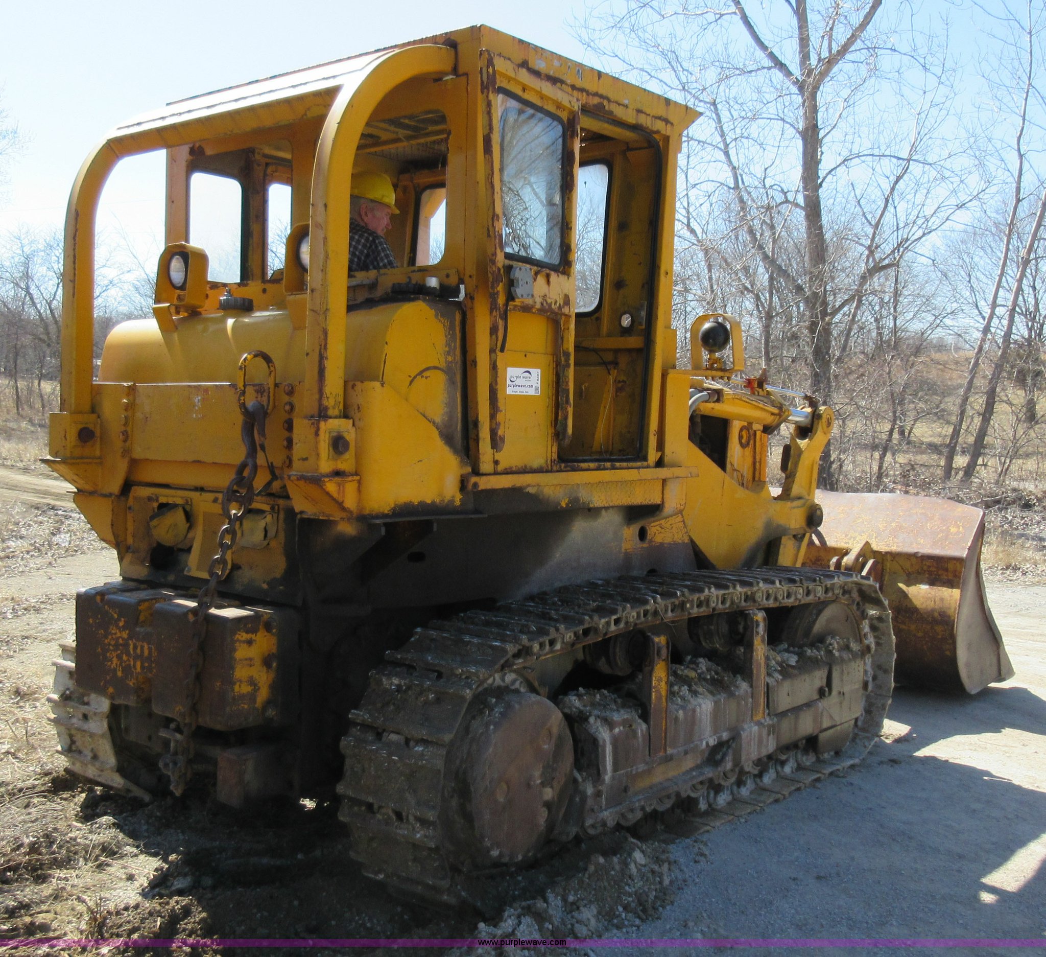 Purple Wave is selling a used Crawler Loader in Missouri. This item is a International 250 track loader with the following: 2,430 hours on meter, Eight cylinder diesel engine, Direct-drive transmission, 4F-4R gears, Canopy, Two stick loader controls, Front and rear work lights, Clutch brake steering, Pemperton 8'W bucket, (8) teeth, Rear draw bar, Seven bottom rollers, 18"W track pads, Fuel leak