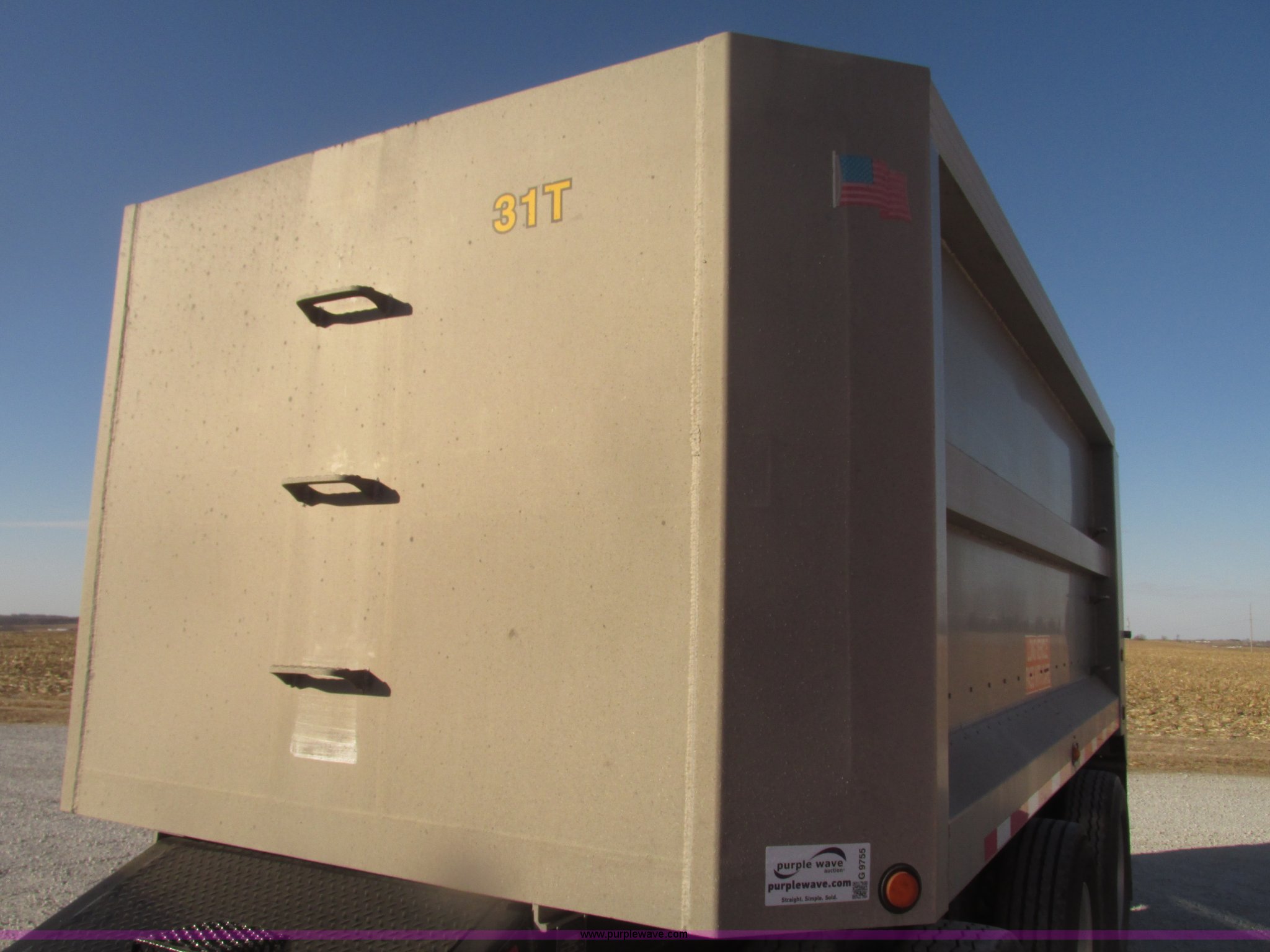 Purple Wave is selling a used Grain or Commodity Trailer in Iowa. This item is a 2009 Cornhusker 800 pup dump trailer with the following: 16'L x 96"W aluminum dump bed, Bed model 800R-101208-761, 60"H sideboards, Bed liner, Air operated end gate, Custom single ram four stage hoist, Model 64-480-134, Serial 953741, 198"L tongue, Mud flaps, Marker flags, Hydraulic connections, Air connections, Electrical wiring, Air suspension, Air brakes, Tri axle, Aluminum wheels, 295/75R22.5 tires, 275/80R22.5 tires, GVWR 57,000 lbs, GAWR 20,000 lbs, Annual inspection valid through October 2015, Unit# 31T