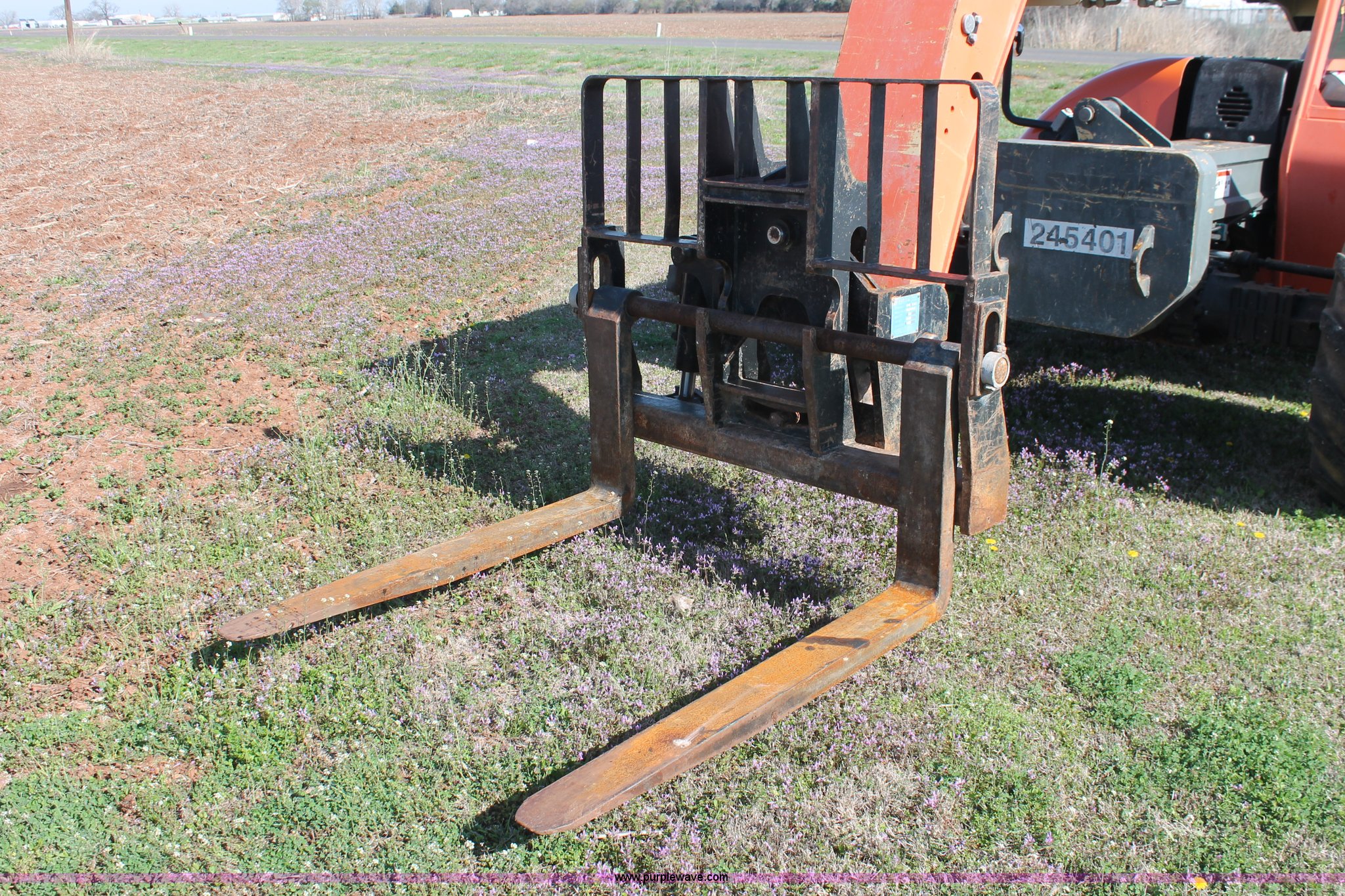 Purple Wave is selling a used Telehandler in Oklahoma. This item is a 2004 JLG G9-43A telehandler with the following: 5,557 hours on meter, John Deere 4.5L four cylinder diesel engine, 99.2 HP, Serial 278897, Powershift transmission, 4F-3R gears, For wheel drive, Crab steer, Circle steer, OROPS, Work lights, 9,000 lbs maximum lift capacity, 43' maximum reach, 48"L x 4"W forks, 48" carriage, Auxiliary hydraulics, Tilt carriage, Rotating carriage, Hydraulic leveling, Quick attach, Gradall 9140 5101 fork attachment, 13.00-24 foam filled tires, 25,907 lbs. base operating weight, Serial 0160001899