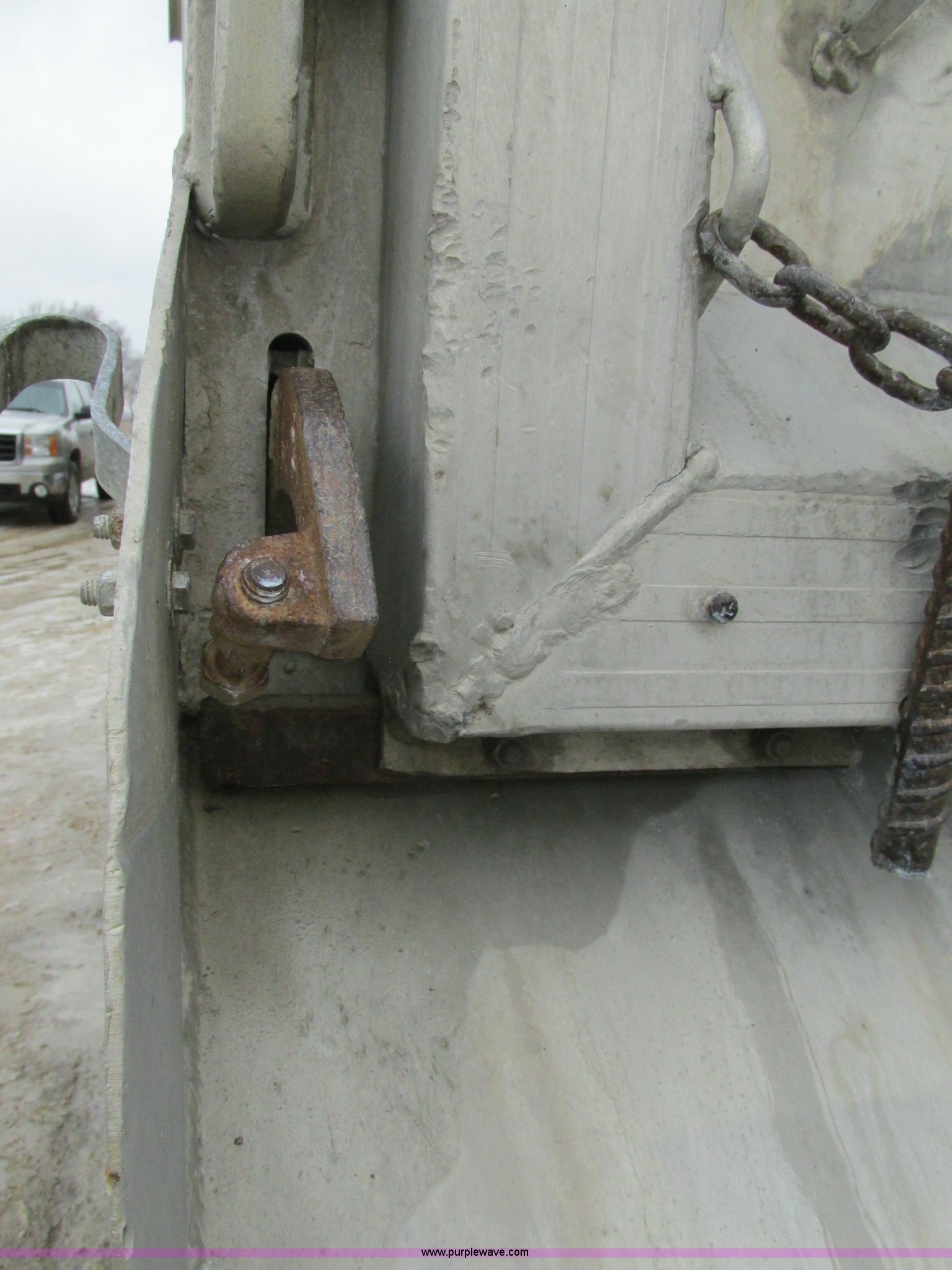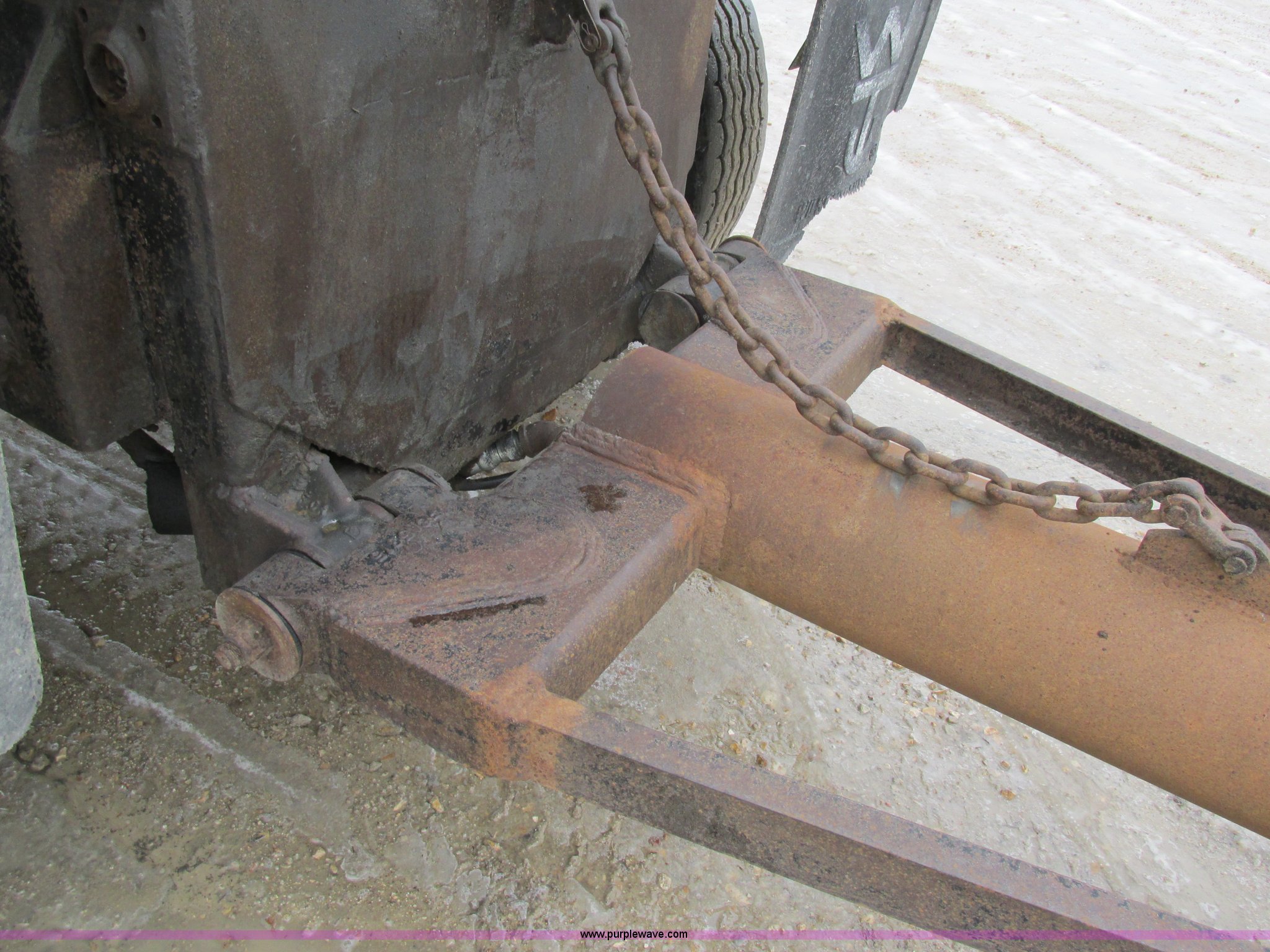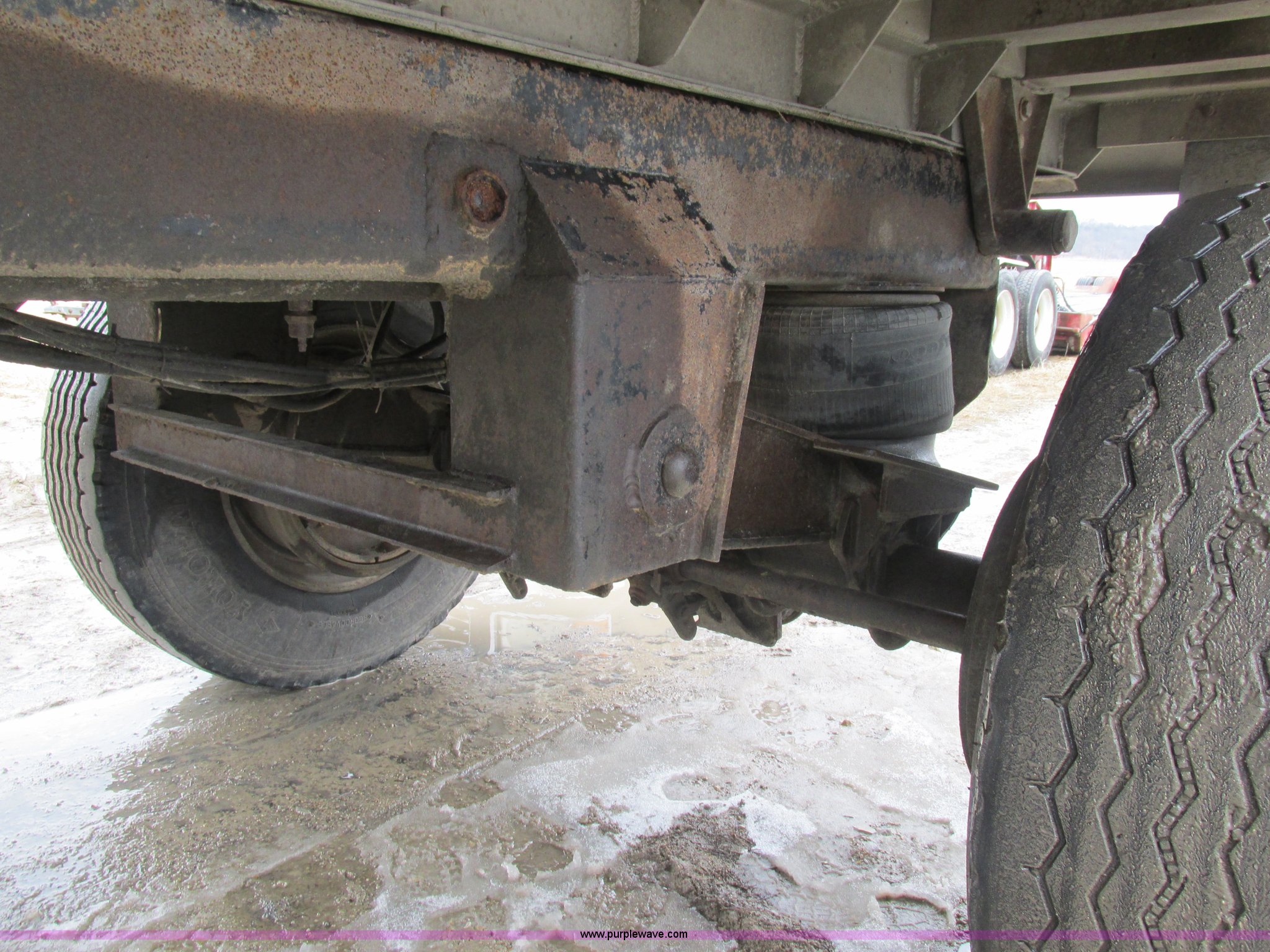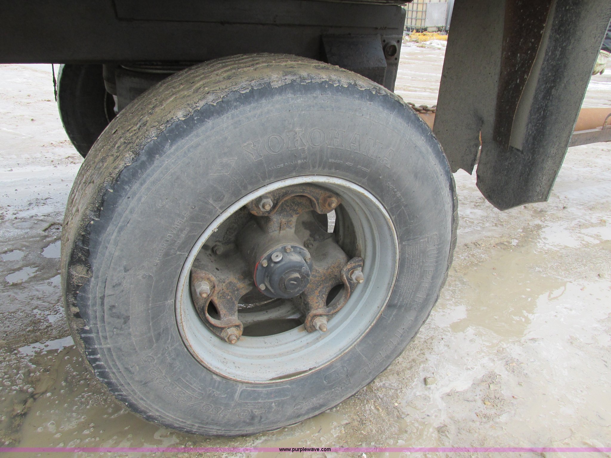 Purple Wave is selling a used End Dump Rock Trailer in Missouri. This item is a 1993 shop built pup dump trailer with the following: 15'L aluminum body, 60"H sideboards, Single ram three stage hoist, Air operated end gate, Grain chute door, Rollover tarp, Hoses, Jack, Safety chains, Pintle hitch, Air suspension, Air brakes, 385/65R22.5 tires