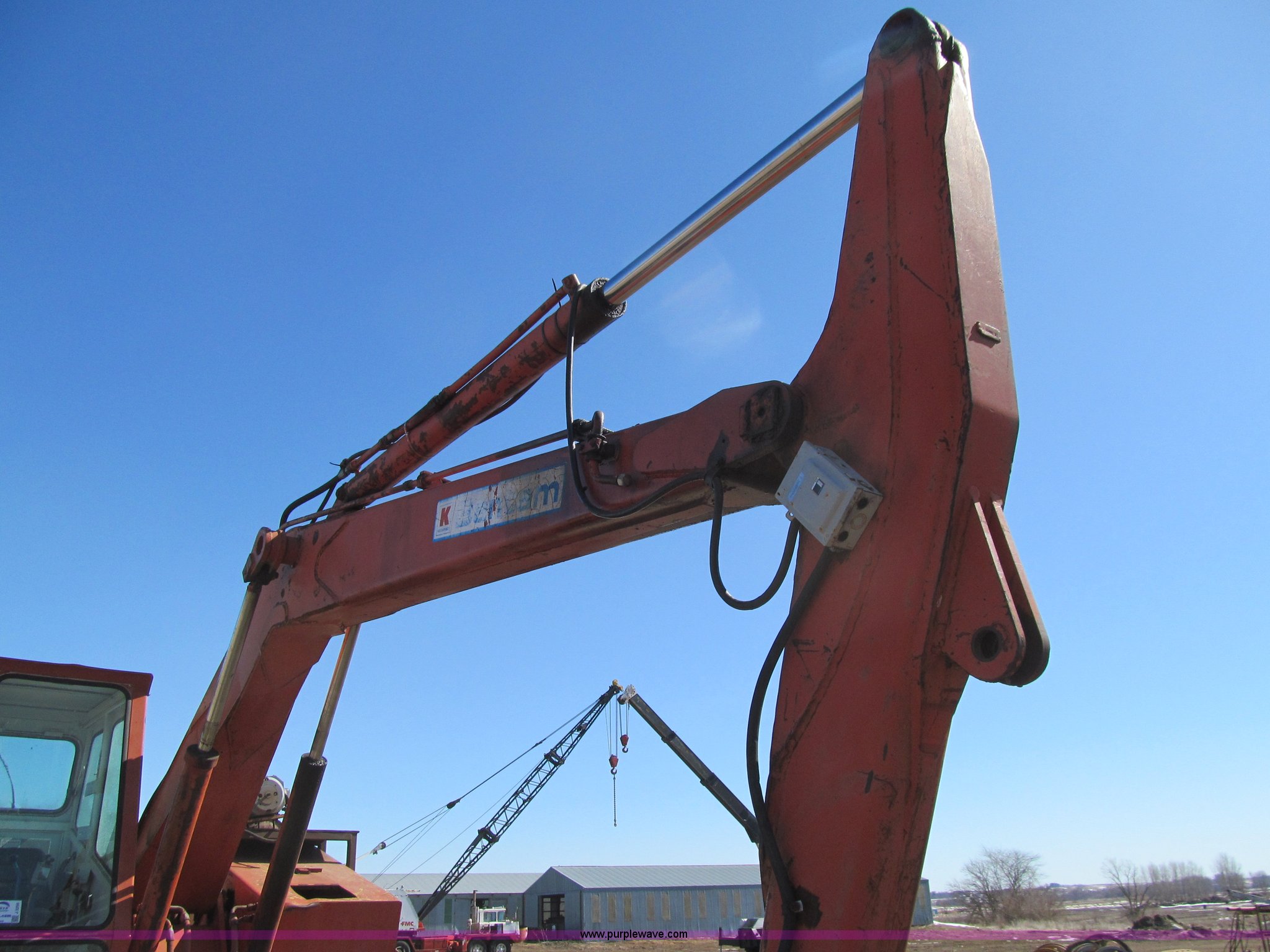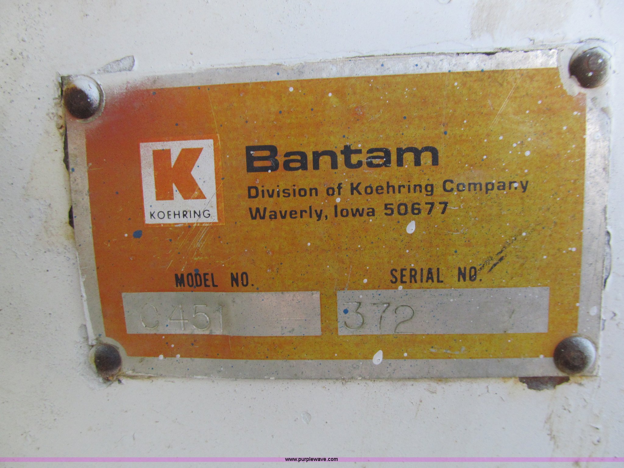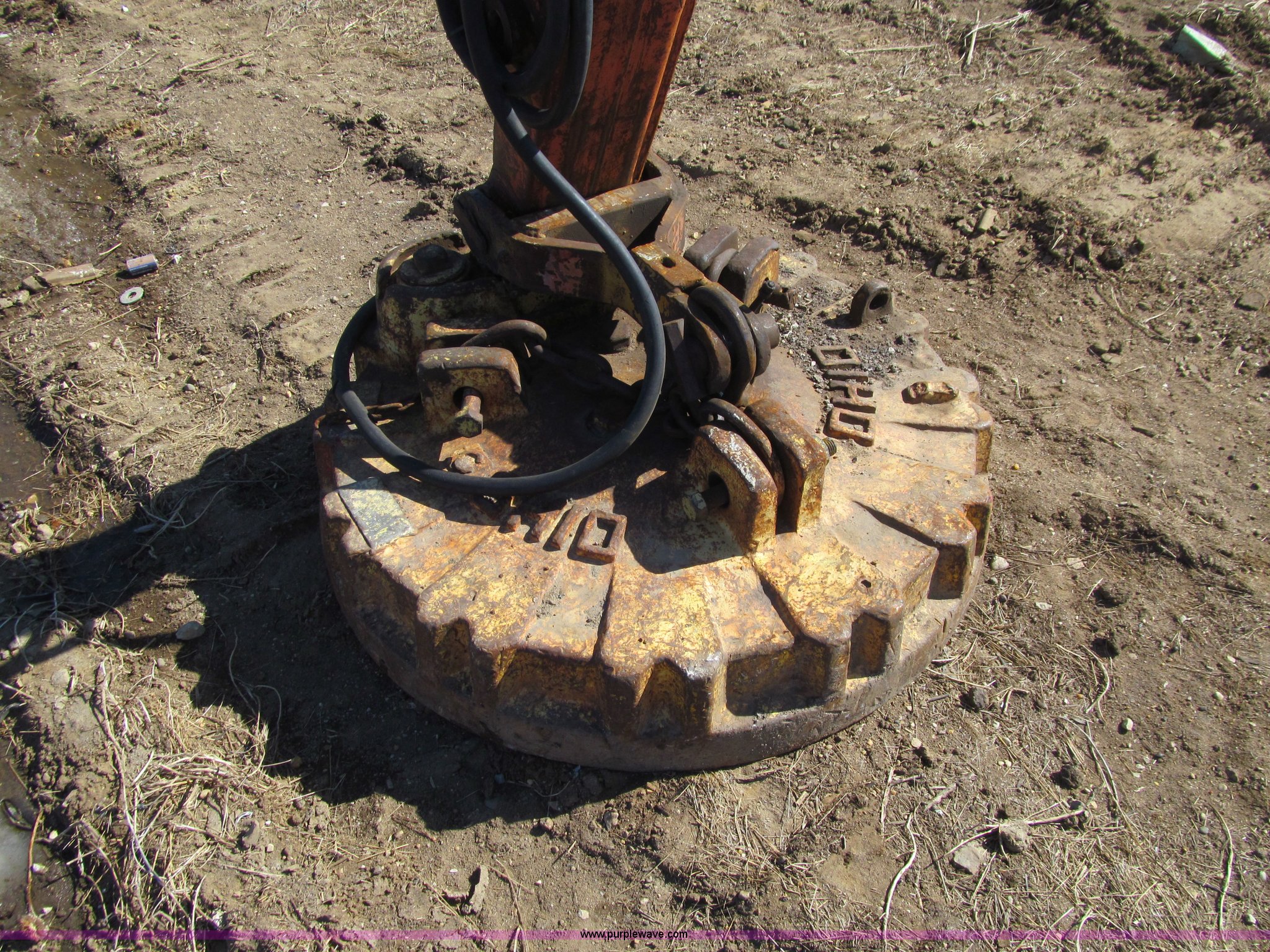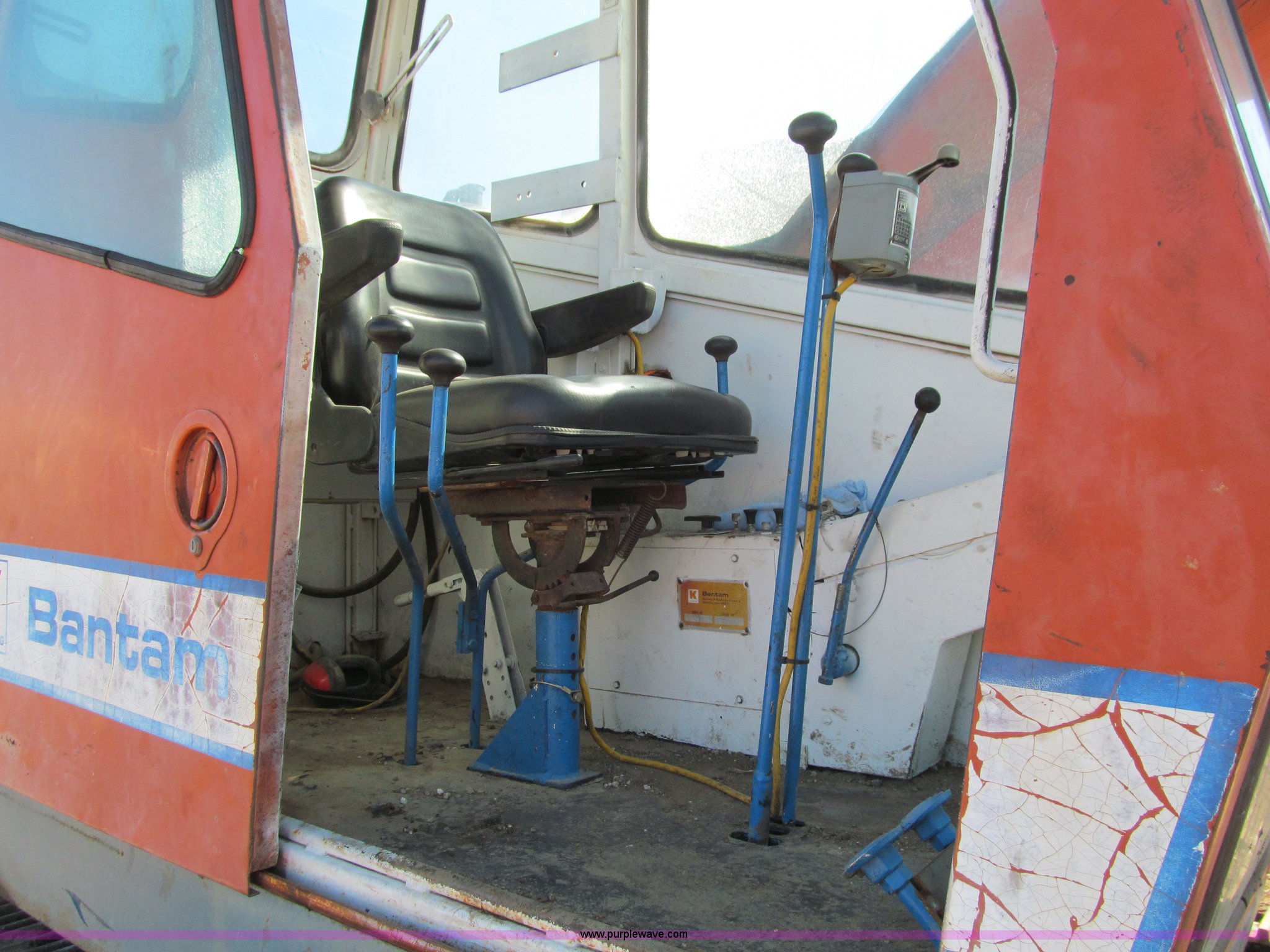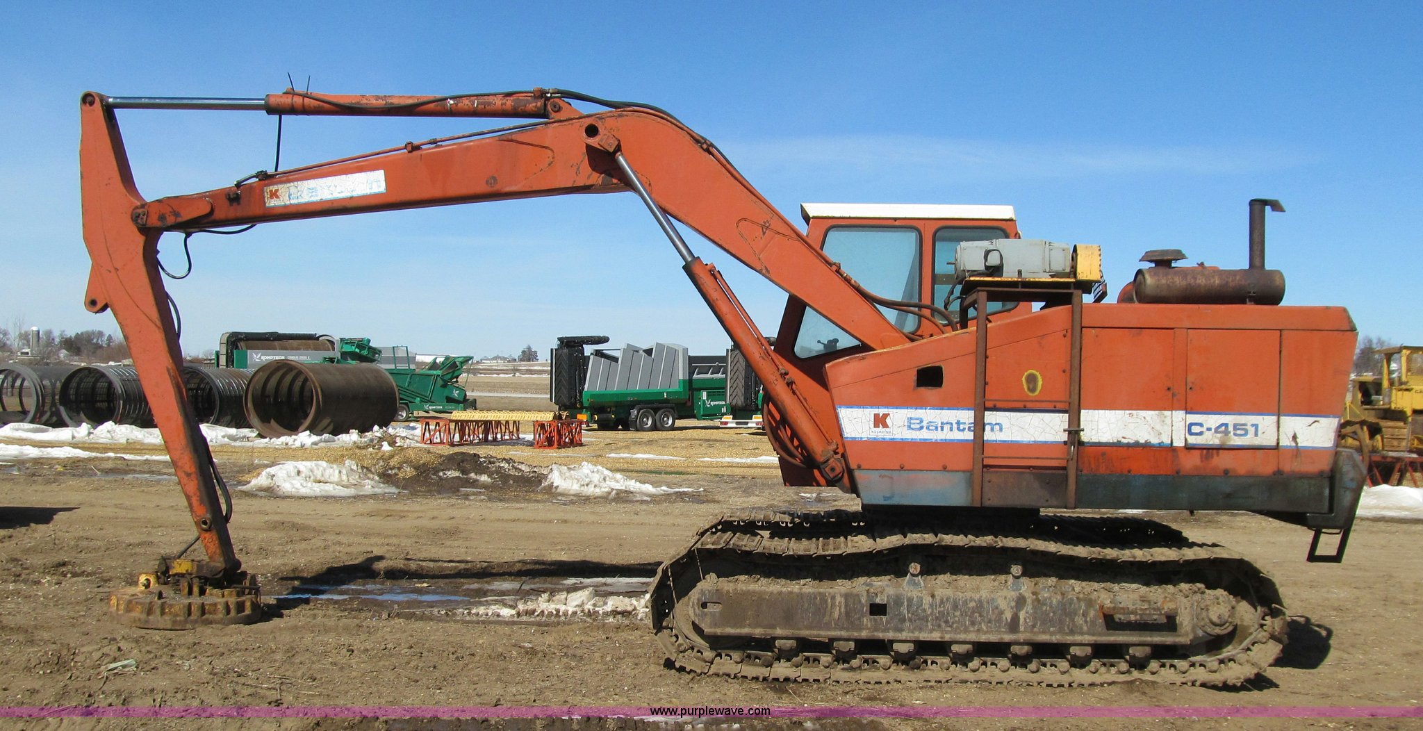 Purple Wave is selling a used Hydraulic Excavator in Iowa. This item is a Bantam C451 excavator with electromagnet with the following: Detroit Diesel four cylinder diesel engine, Enclosed cab, Hand controls, Square D magnet controller, Hydrostatic travel, 96" stick length, Ohio 40" electromagnet, Seven bottom rollers, 24" triple grouser track pads, No bucket cylinder, bucket linkage, bucket, Serial C451-372
