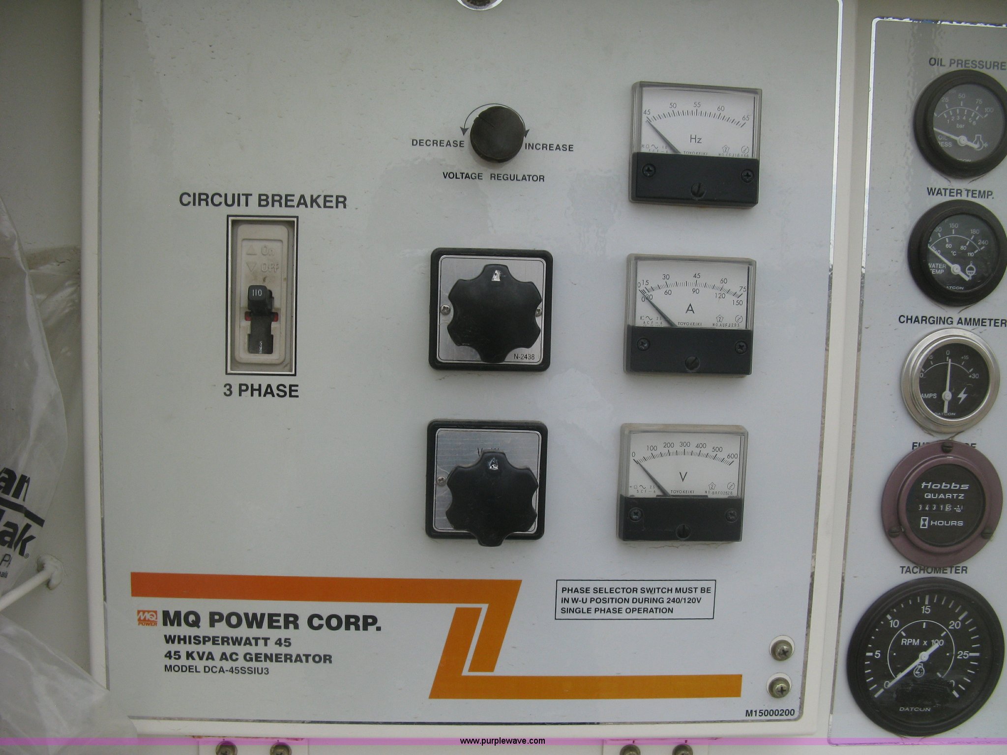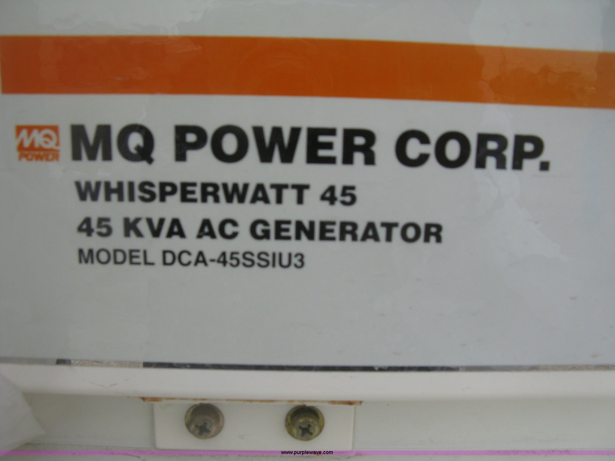Take a look at this used 2006 MQ Whisperwatt 45 generator being sold on April 16th, 2015 in the SOLD! April 16 Construction Equipment Auction made by MQ. Take a look at all of the item information below or take a look at similar auctions for Generators and Light Plants.