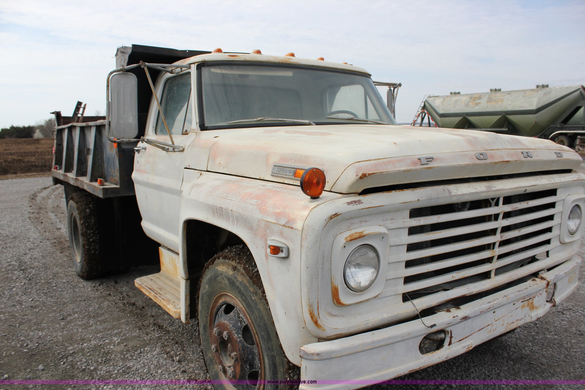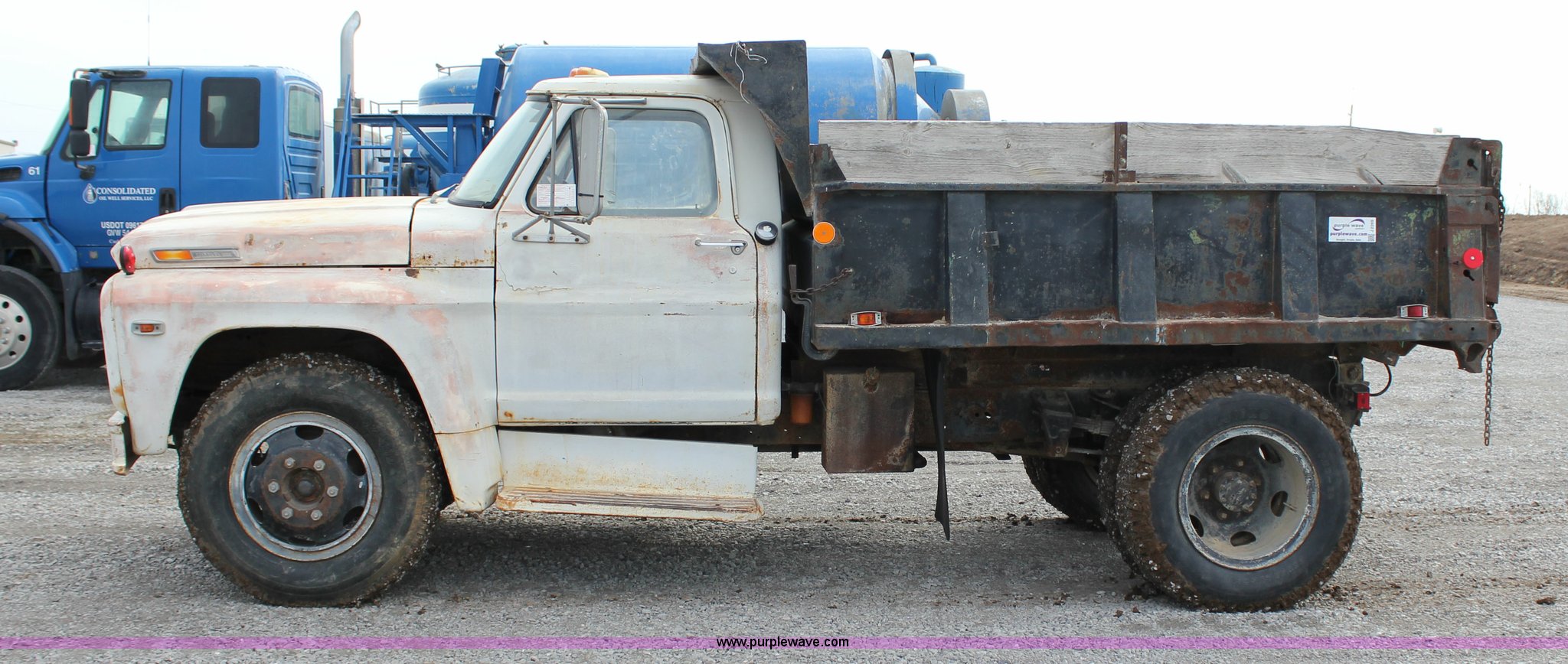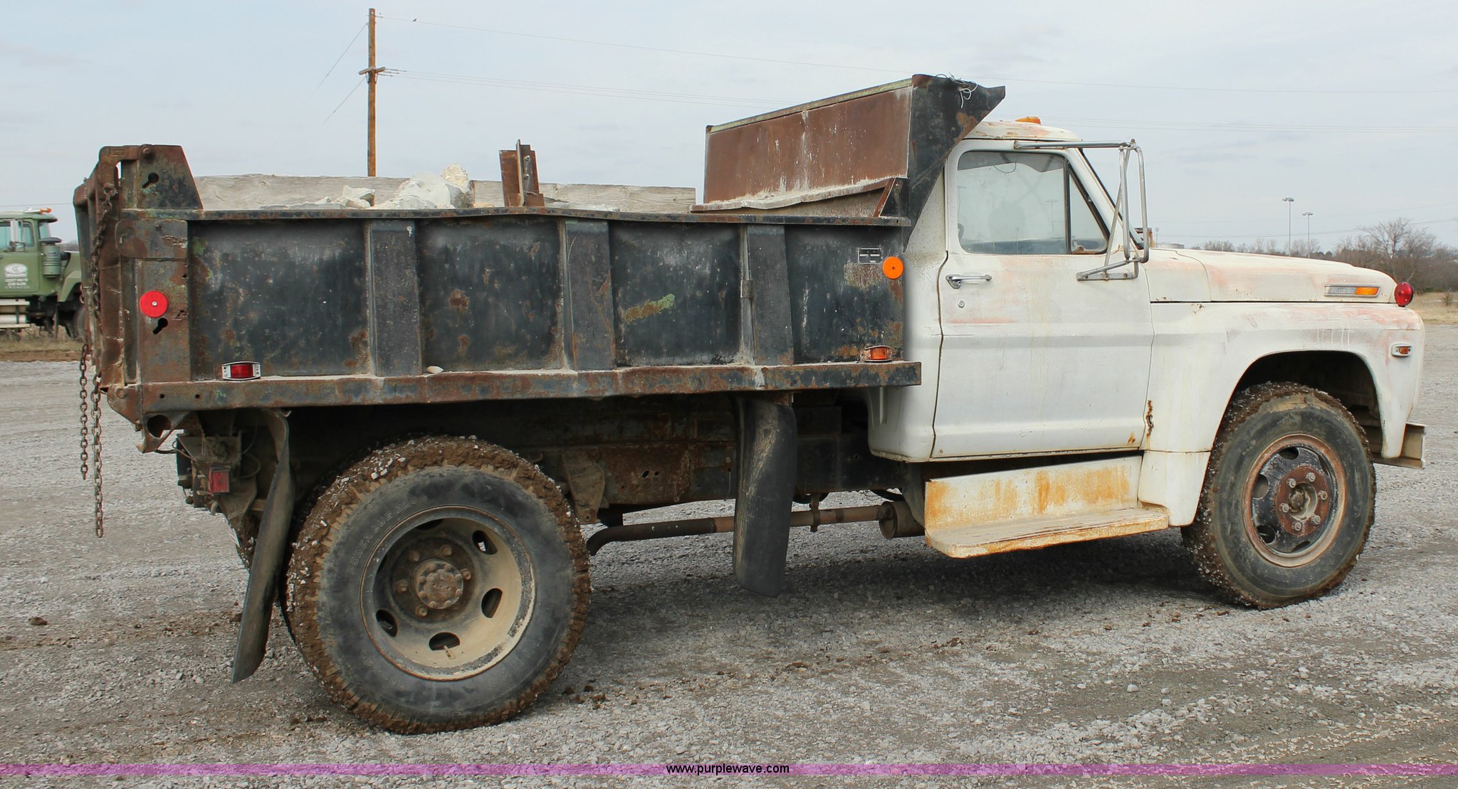 Purple Wave is selling a used Construction Dump Truck in Oklahoma. This item is a 1972 Ford 600 dump truck with the following: 56,107 miles on odometer, Ford 460 gas engine, Five speed manual transmission, Two speed rear end, Heat, Carwood GA-2 dump bed, 9'L x 7'W, Serial 358562, 9.00-20 tires, Spring suspension, Hydraulic brakes, Brake fluid leak, Unit# 37