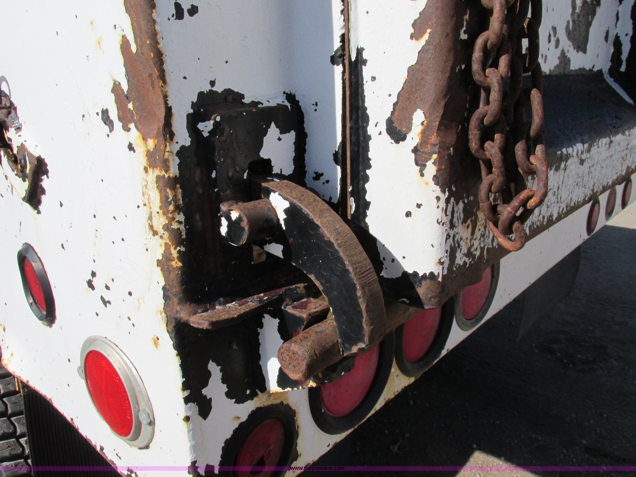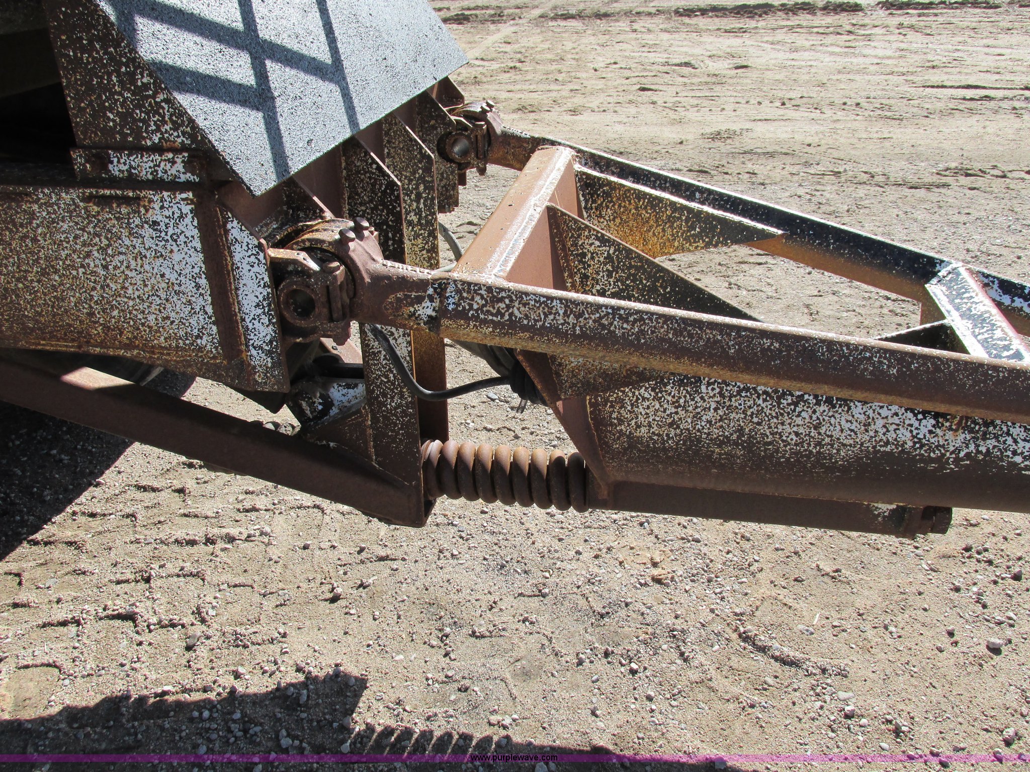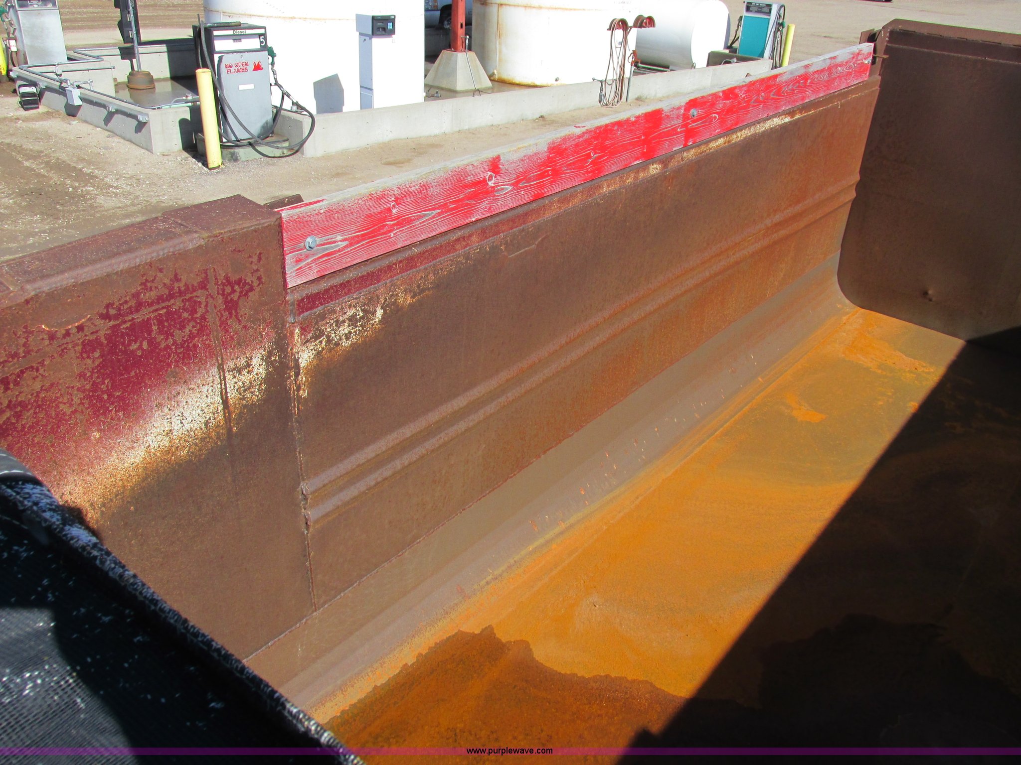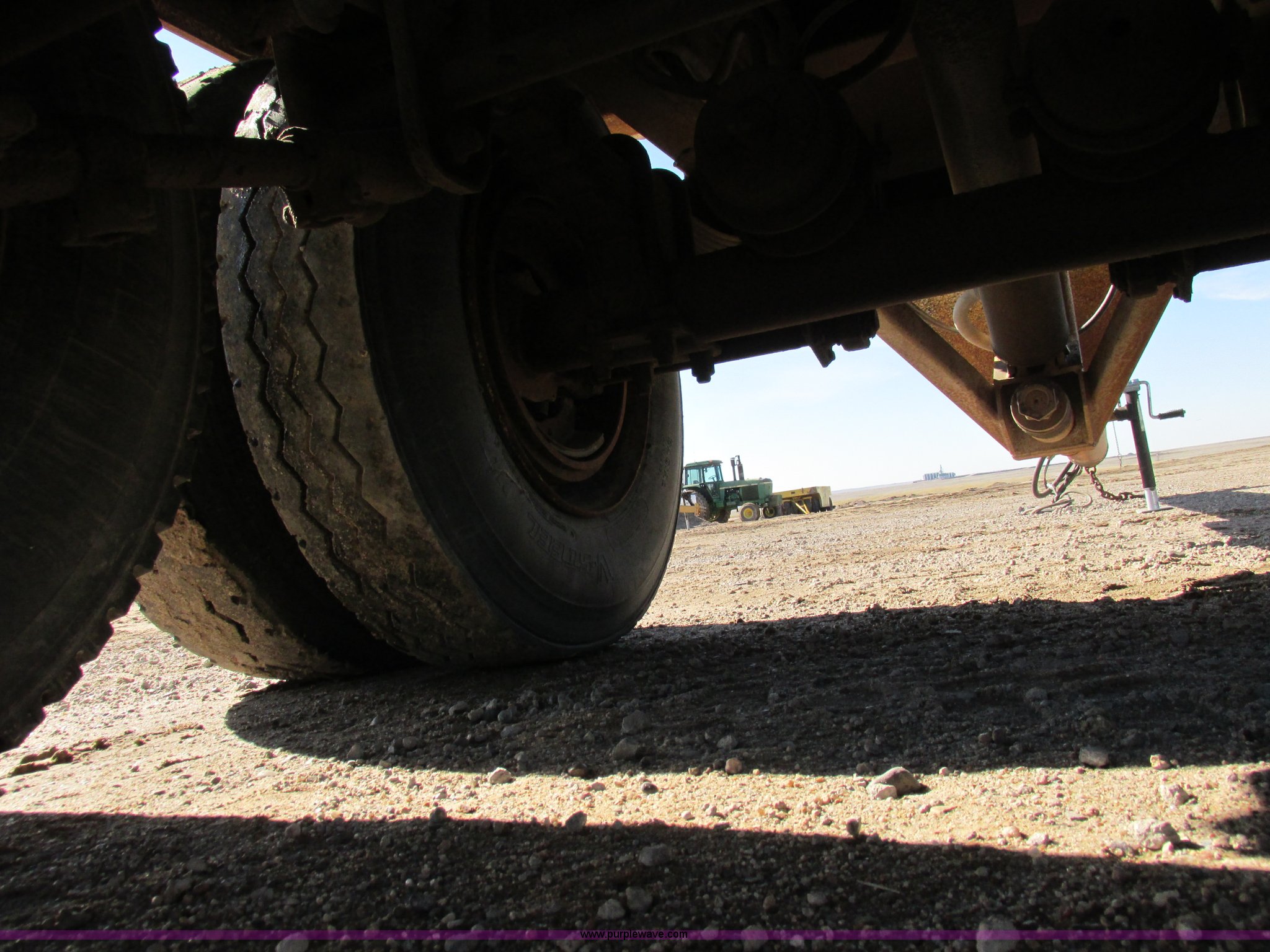 Purple Wave is selling a used Dump Trailer in Kansas. This item is a 1983 Clement end dump pup trailer with the following: 12'L x 86"W x 48"H, Approx. 12 to 13 yard capacity, Rounded floor corners, Air operated end gate, Aero electric rollover tarp, Single hydraulic ram, 17'L tongue, Pintle hitch, Spring suspension, Air brakes, 11R22.5 tires