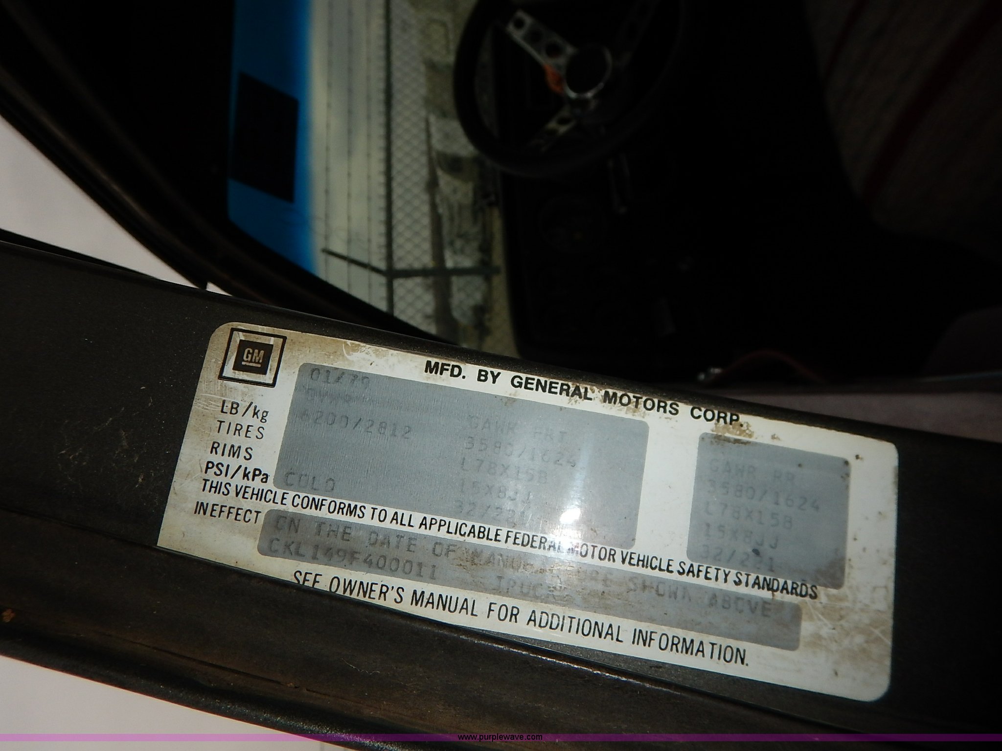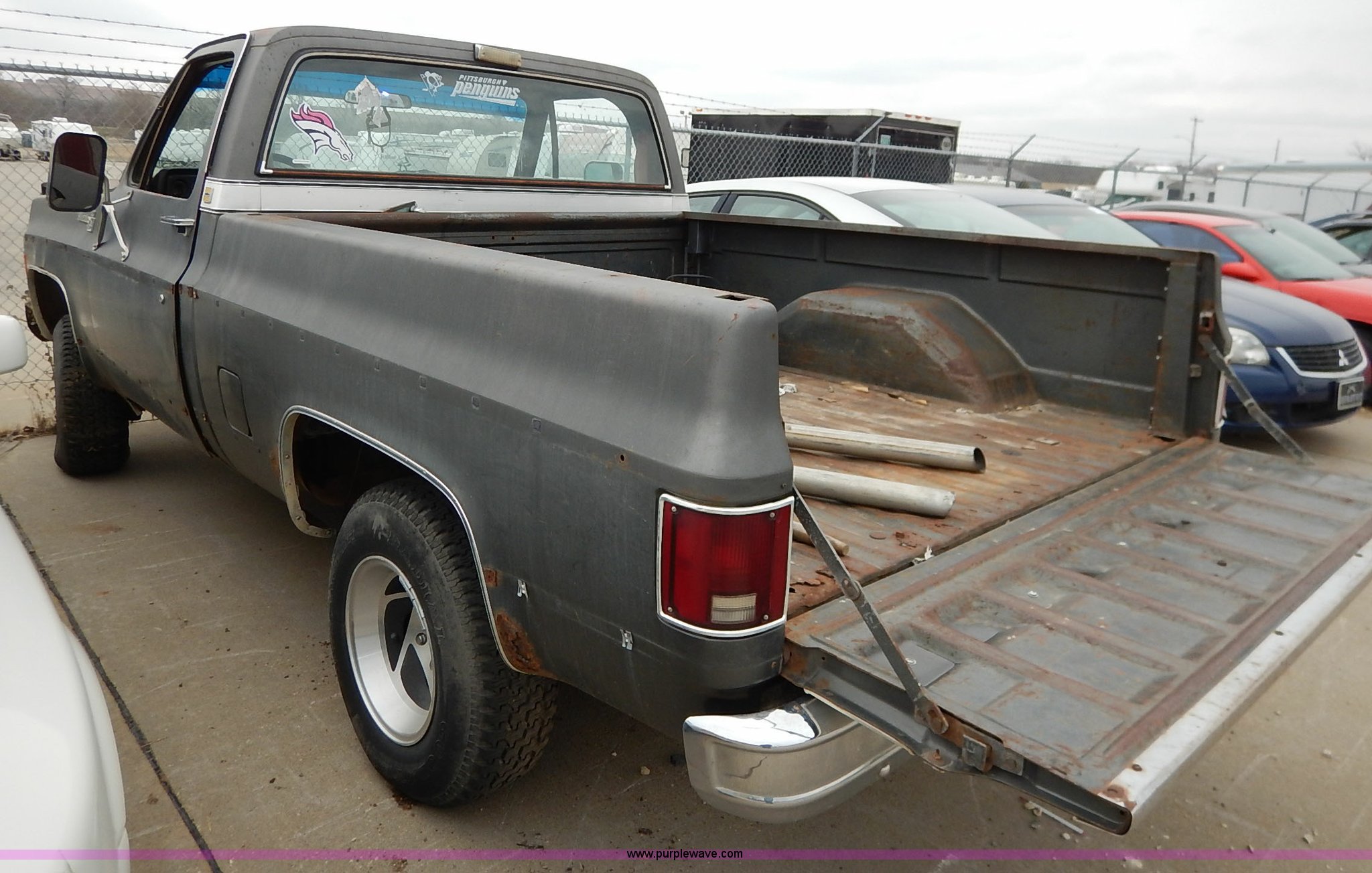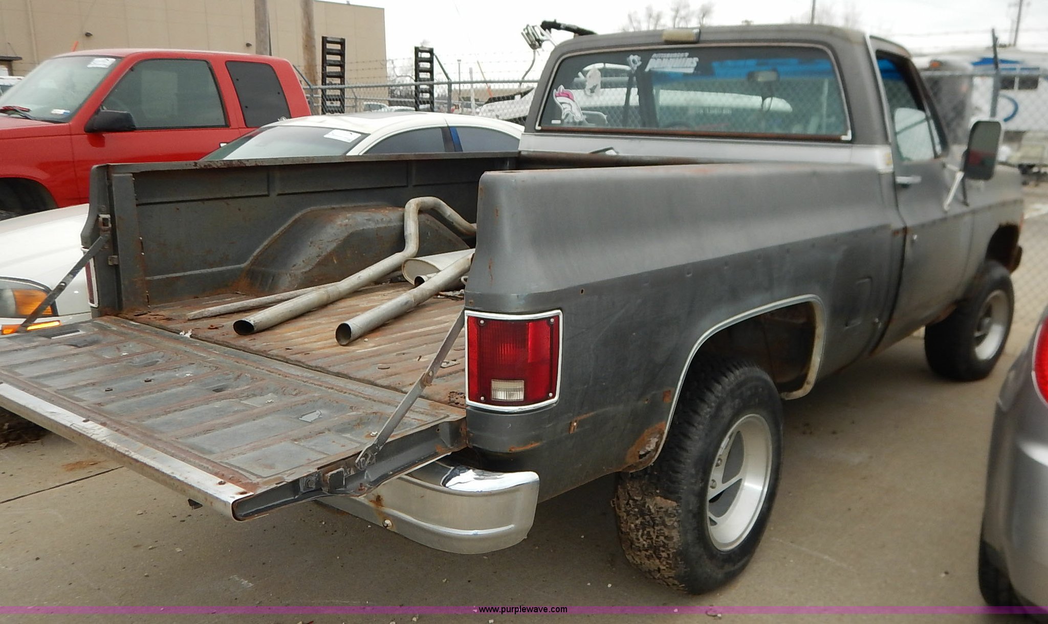 Purple Wave is selling a used 1/2 Ton Pickup or Van in Kansas. This item is a 1979 Chevrolet 1500 pickup truck with the following: 11,358 miles on odometer, V8 gas engine, Automatic transmission, Four wheel drive, Tilt, Cruise, Manual windows and locks, Manual lock out hubs, Receiver hitch, 235/75R15 tires, No keys, Interior/exterior cosmetic damage, Unknown operating condition, Unit# AV20123000