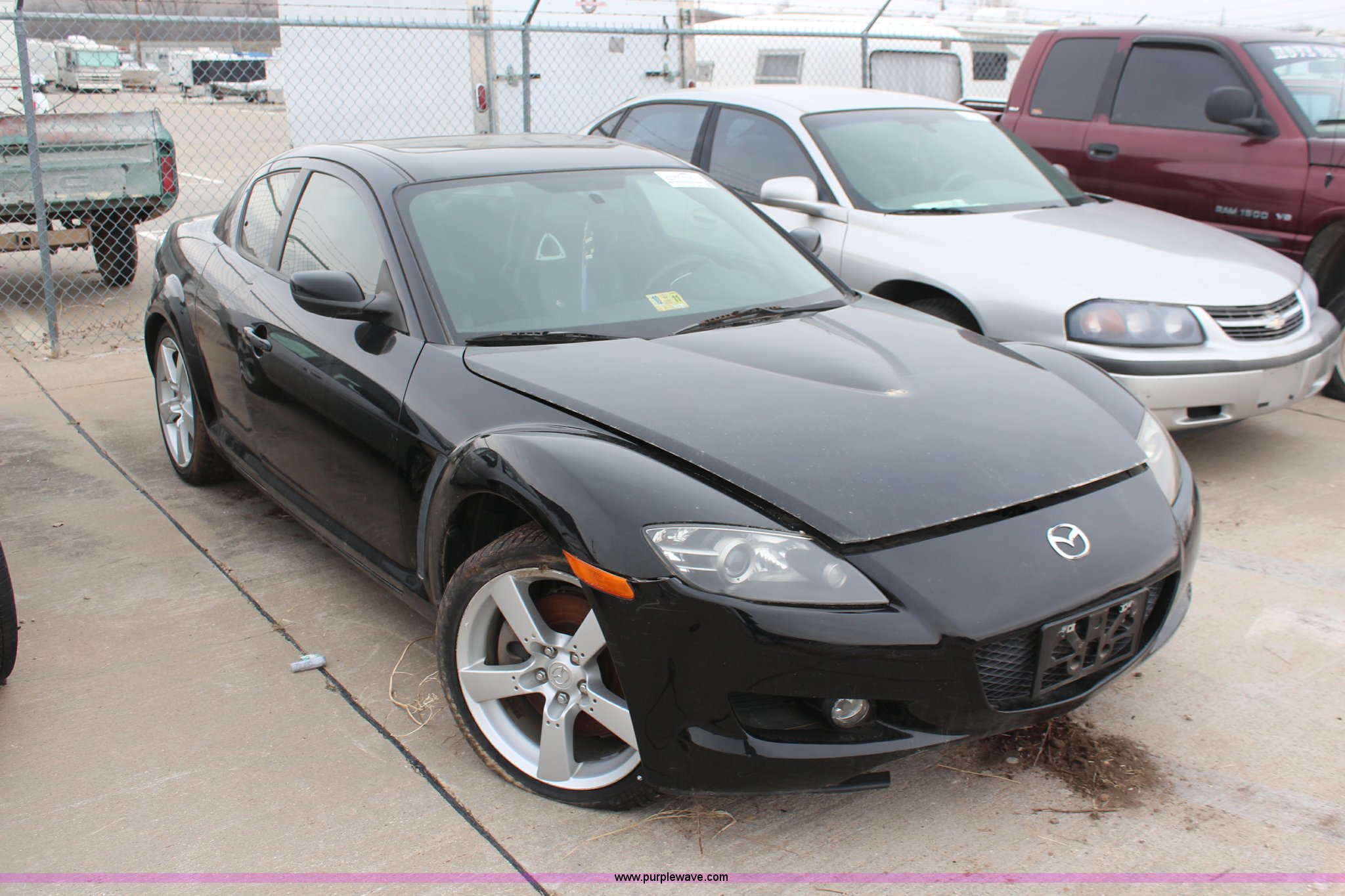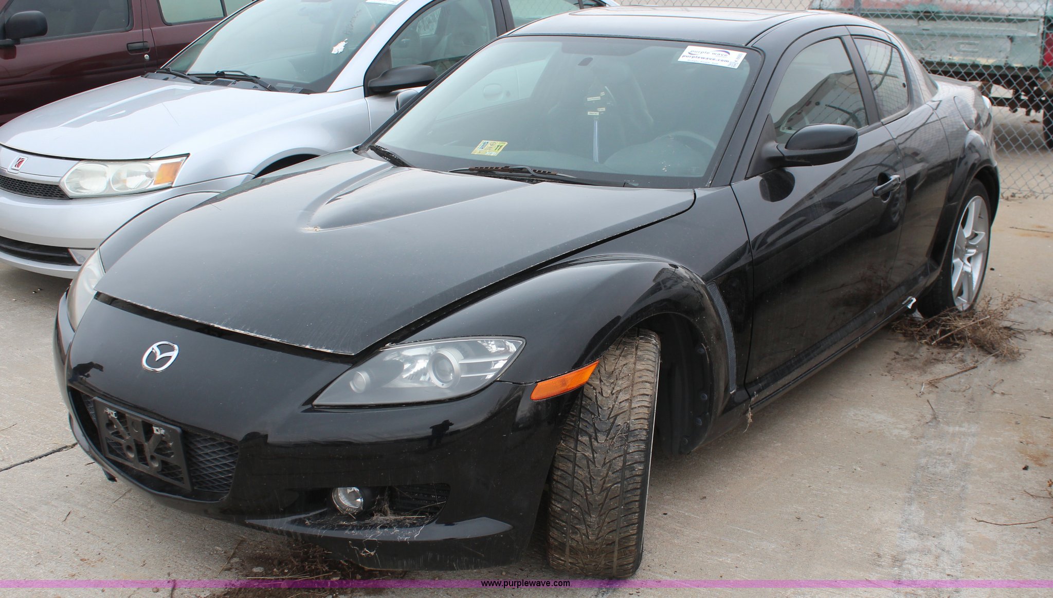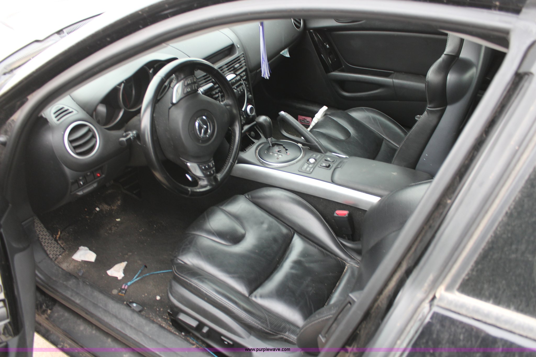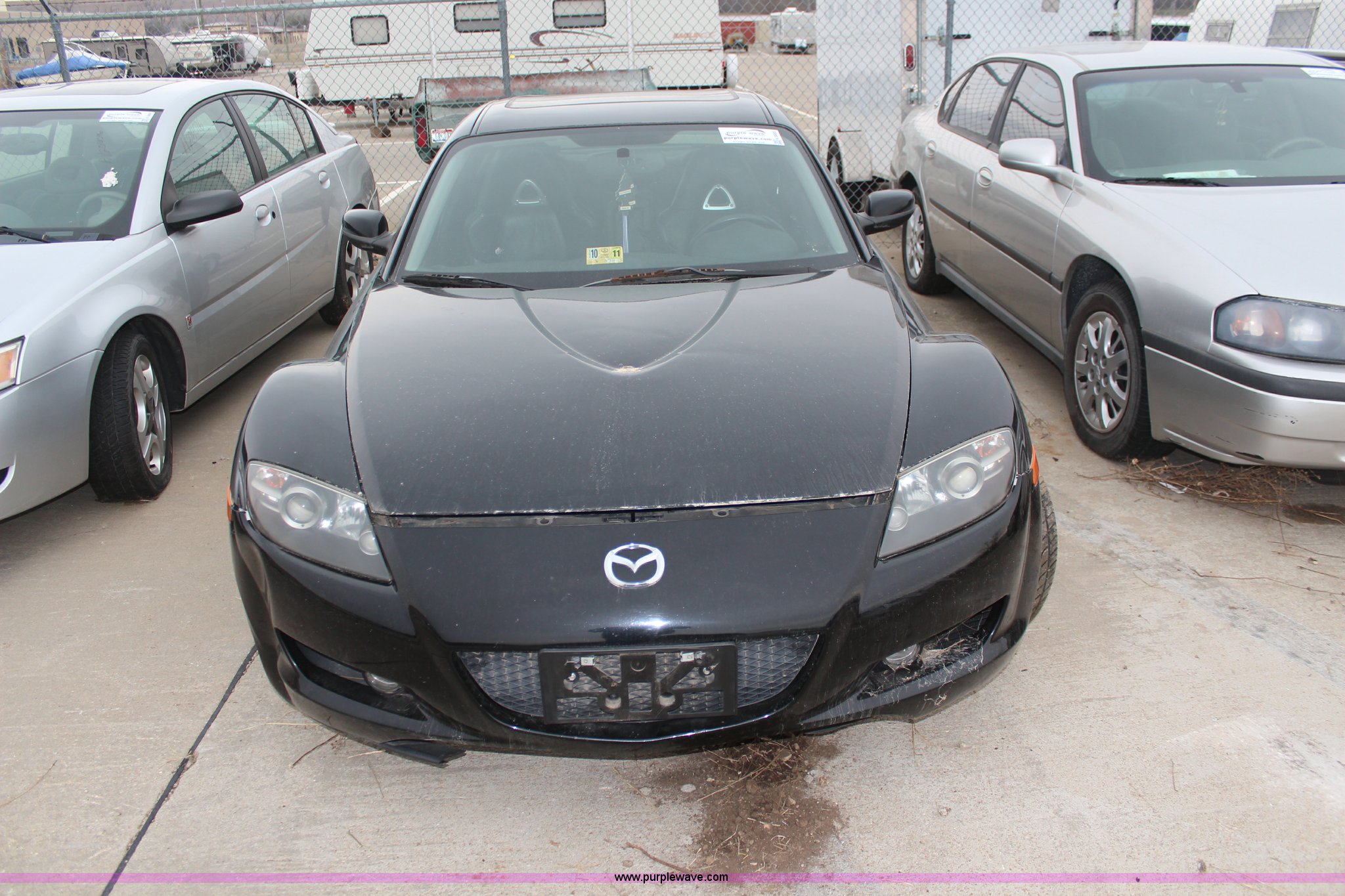 Purple Wave is selling a used Passenger Vehicle in Kansas. This item is a 2004 Mazda RX-8 with the following: Unknown miles on odometer, 1.3L L2 rotary gas engine, Automatic transmission, Cruise, AM/FM/CD, Power windows, seats, locks, and mirrors, Leather interior, Sunroof, 225/45R18 tires, No keys, Interior/exterior cosmetic damage, Unknown operating condition