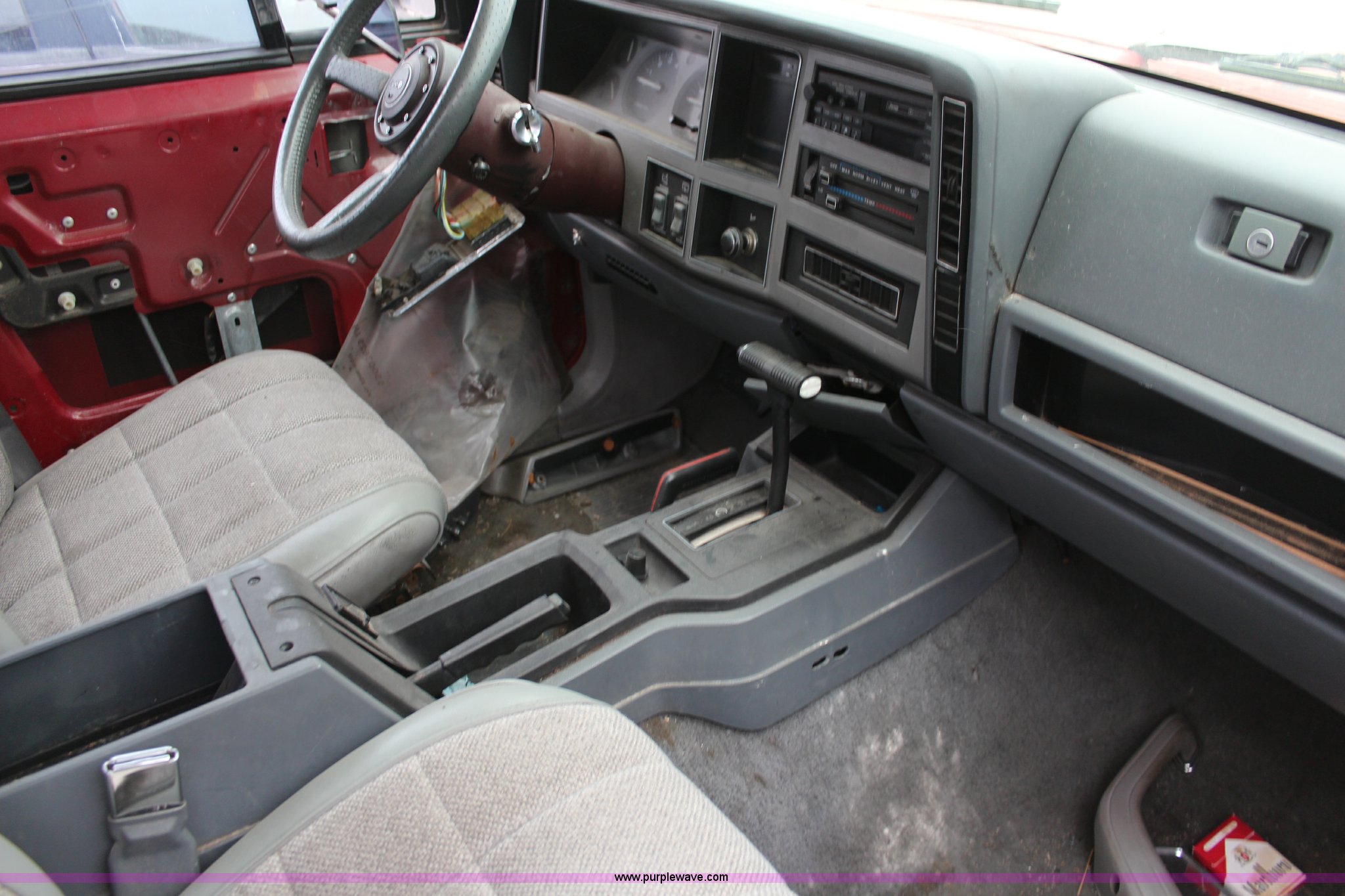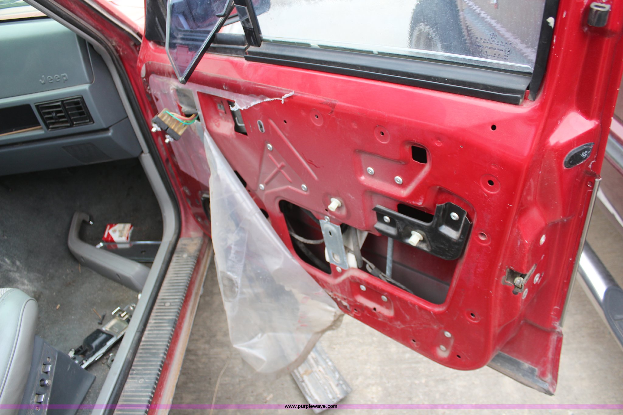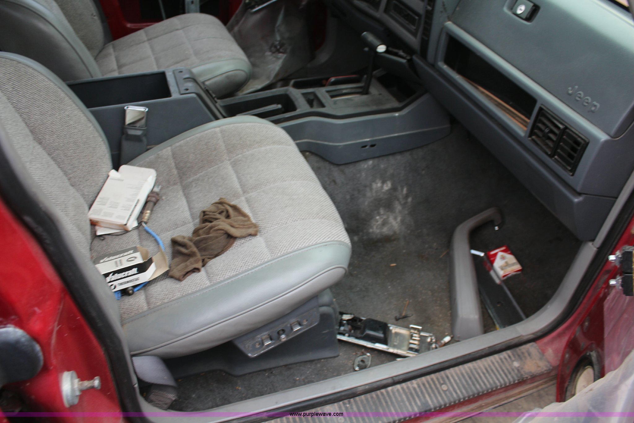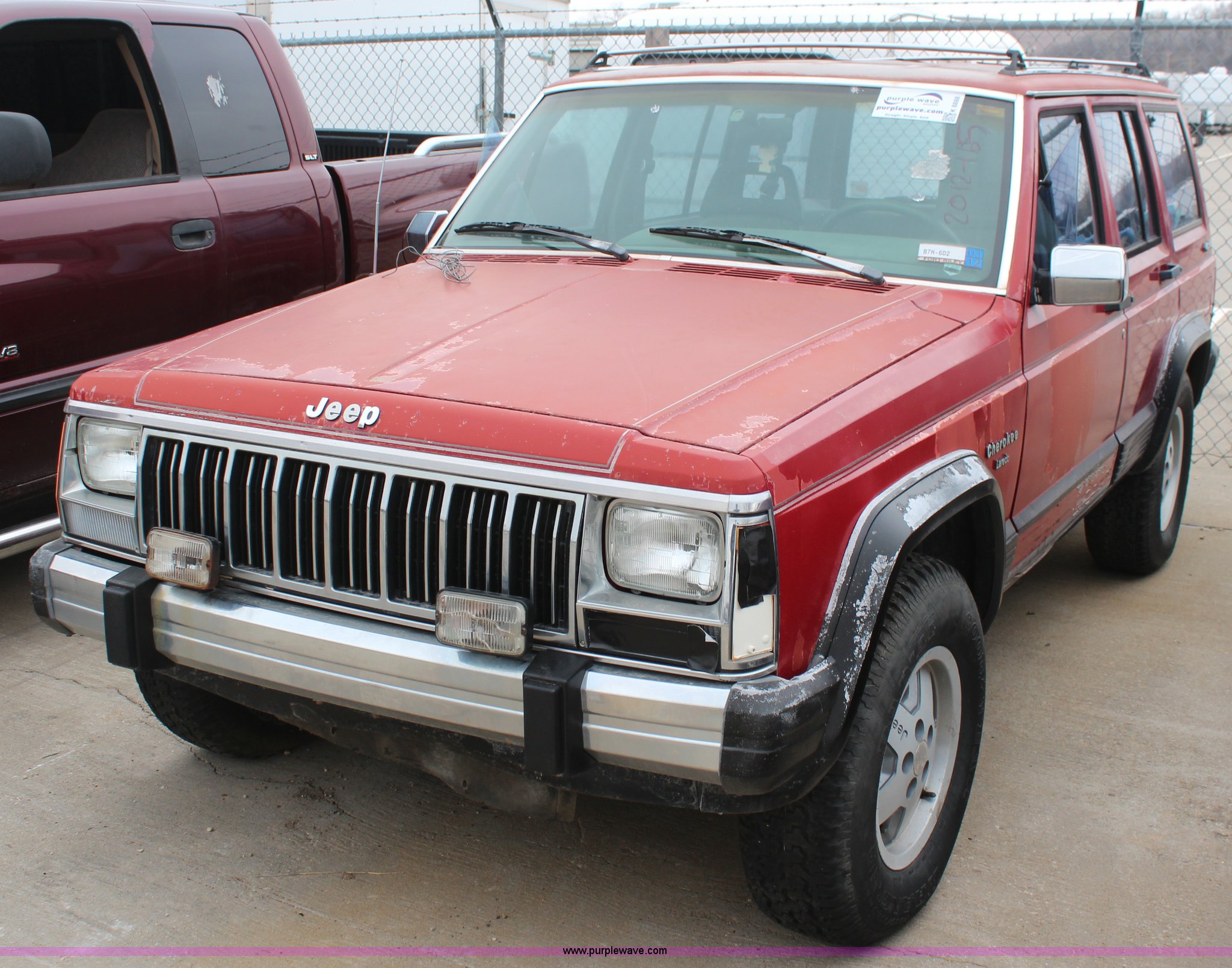 Purple Wave is selling a used Passenger Vehicle in Kansas. This item is a 1990 Jeep Cherokee SUV with the following: 144,167 miles on odometer, 4.0L L6 OHV 12V gas engine, Automatic transmission, Tilt, AM/FM/Cassette, Power windows and locks, Cloth interior, Receiver hitch, 235/75R15 tires, No keys, Interior/exterior cosmetic damage, Unknown operating condition, Unit# 2012-165