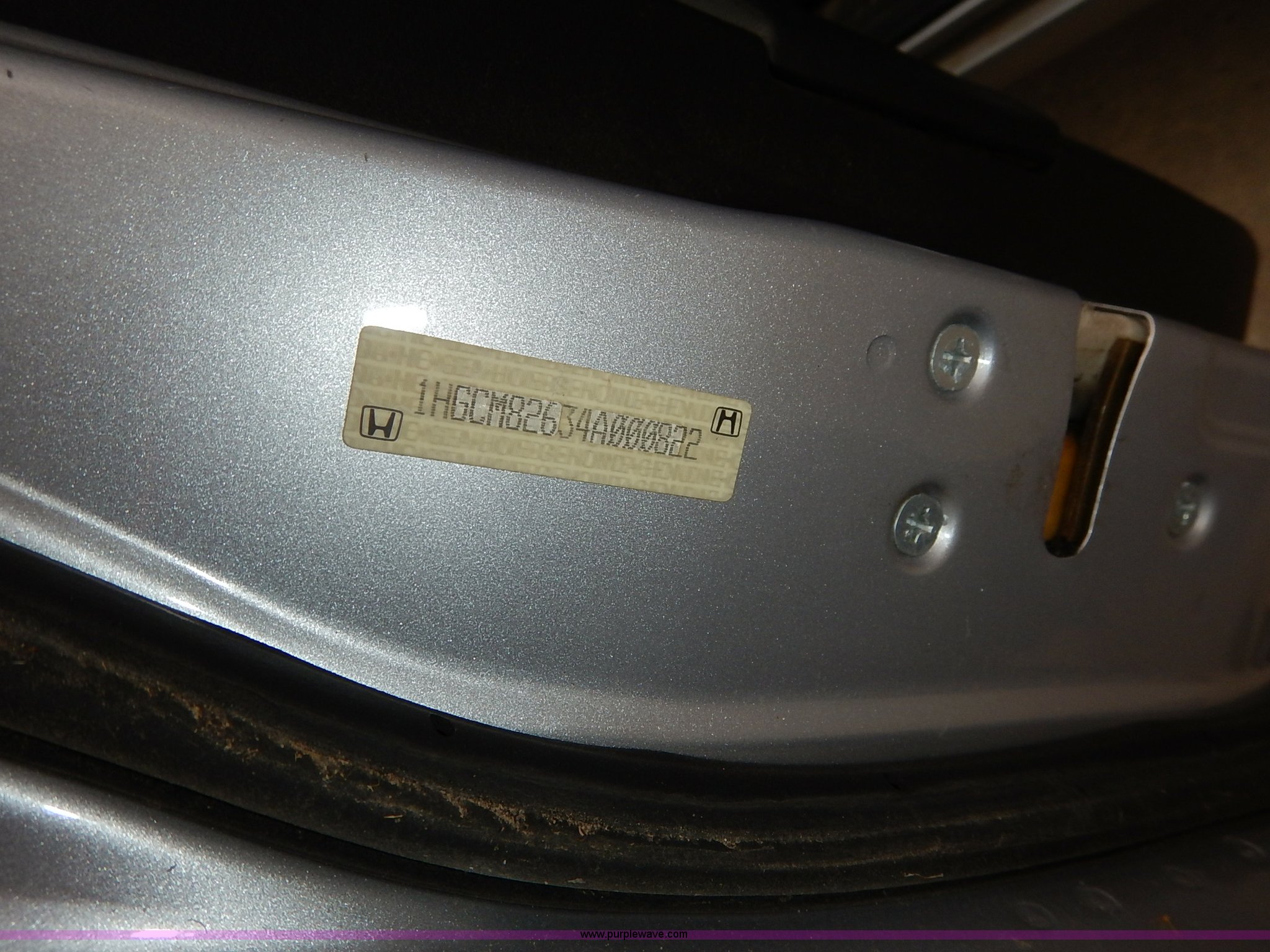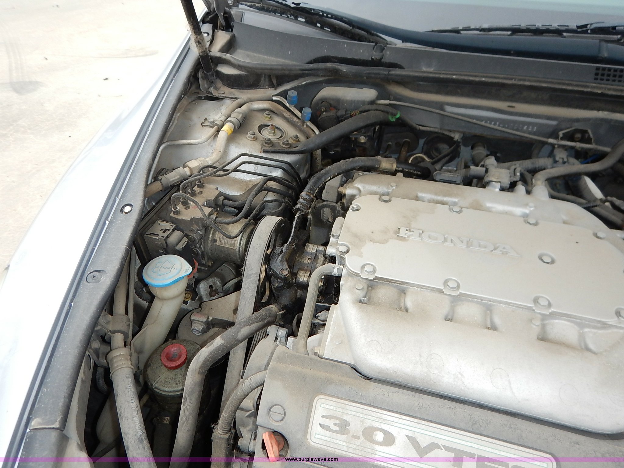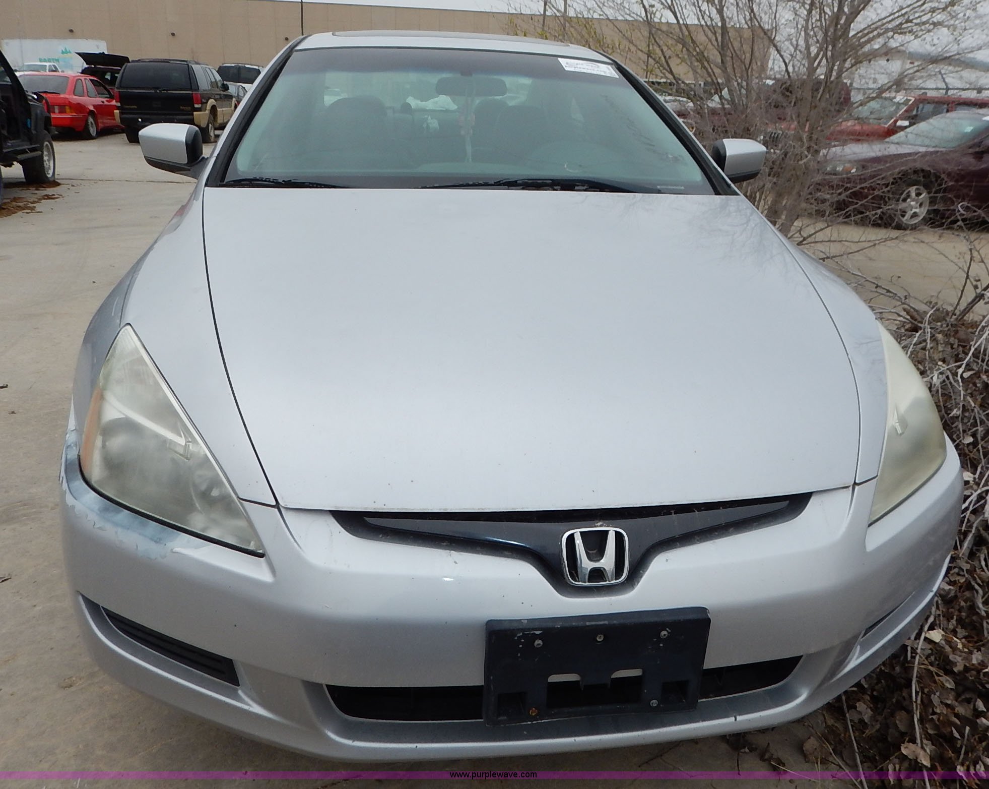 Purple Wave is selling a used Passenger Vehicle in Kansas. This item is a 2004 Honda Accord with the following: Unknown miles on odometer, 3.0L V6 SOHC 24V gas engine, Automatic transmission, Cruise, AM/FM/CD, Power windows, locks, seats, and mirrors, Leather interior, 205/60R16 tire size, No keys, Interior/exterior cosmetic damage, Windshield broken, Unknown operating condition, Unit# AV20122004