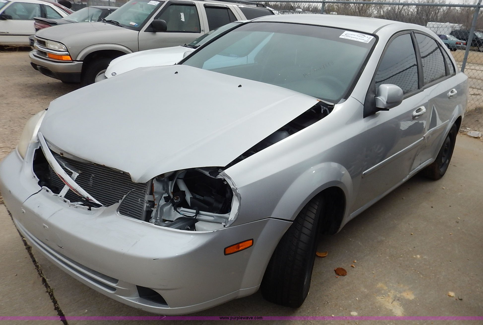 Purple Wave is selling a used Passenger Vehicle in Kansas. This item is a 2006 Suzuki Forenza with the following: Unknown miles on odometer, 2.0L L4 DOHC 16V gas engine, Automatic transmission, AC and heat, Tilt, AM/FM/CD, Power windows, locks and mirrors, Cloth interior, 195/60R15 tire size, No keys, Interior/exterior cosmetic damage, Unknown operating condition, Front end damage, Unit# AV7014118