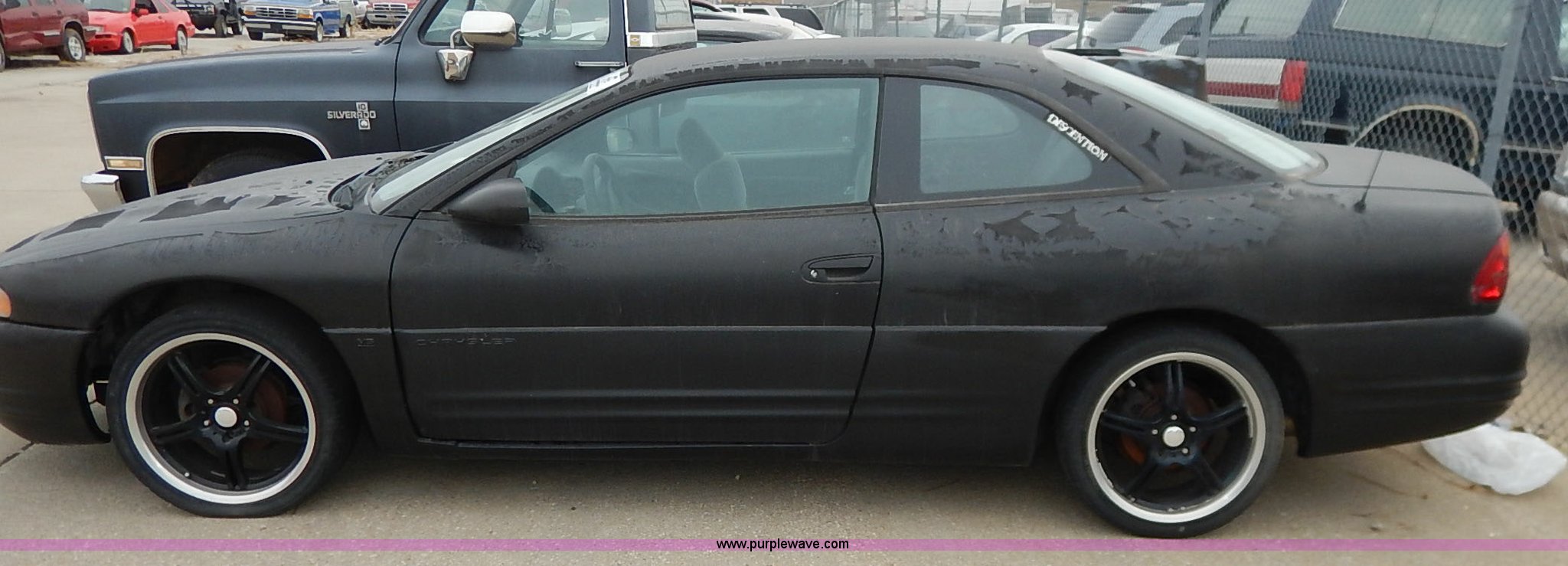 Purple Wave is selling a used Passenger Vehicle in Kansas. This item is a 2000 Chrysler Sebring LX with the following: 112,427 miles on odometer, 2.5L V6 SOHC 24V gas engine, Automatic transmission, AC and heat, Tilt, Cruise, Power windows, locks and mirror, Cloth interior, 225/402R18, No keys, Interior/exterior cosmetic damage, Unknown operating condition, Unit# 2012184