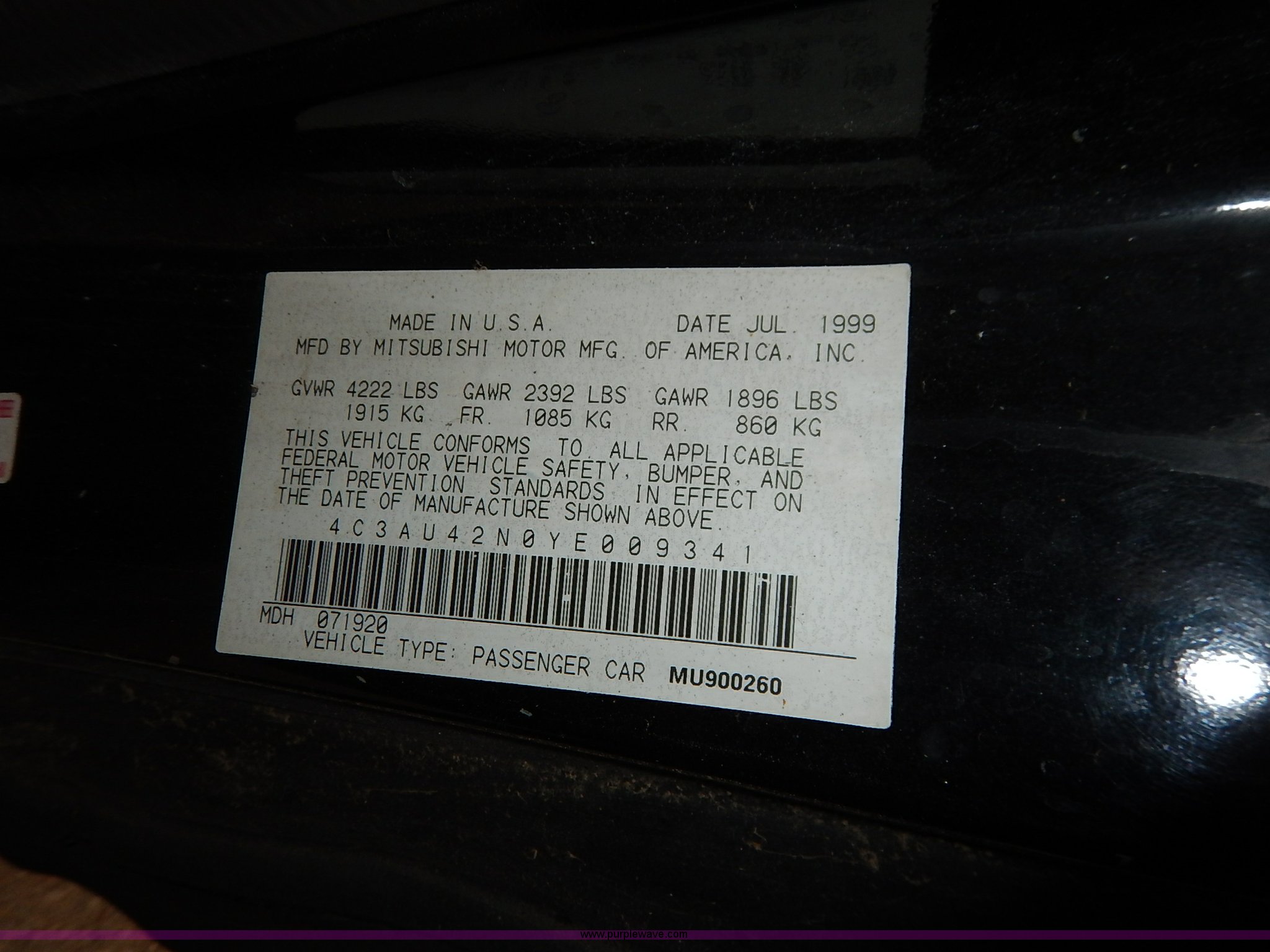 2000 Chrysler Sebring LX has sold in Fort Riley, Kansas for $412.50. Item K8914 sold on April 21st, 2015.