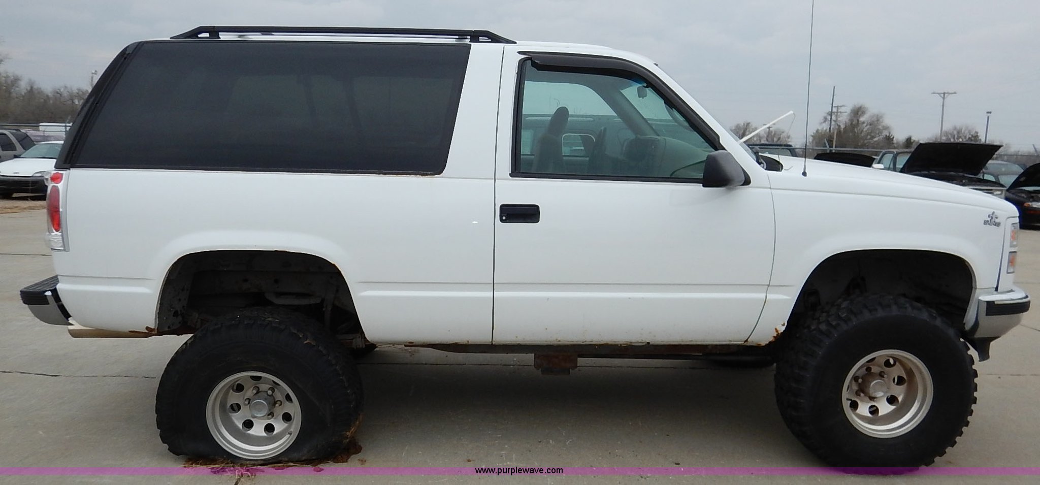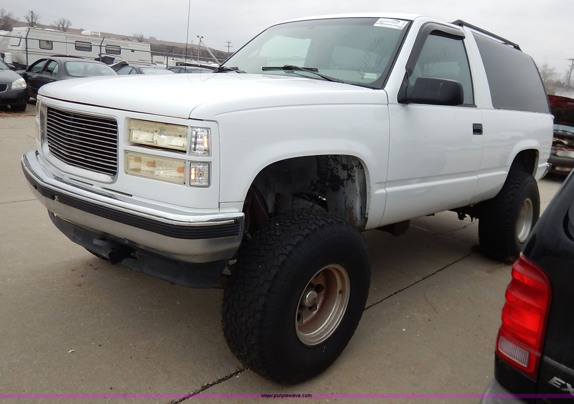 Purple Wave is selling a used Passenger Vehicle in Kansas. This item is a 1995 Chevrolet Blazer SUV with the following: Unknown miles on odometer, 5.7L V8 OHV 16V gas engine, Automatic transmission, Four wheel drive, Tilt, AM/FM/CD, Power windows, locks, seats, and mirrors, Cloth interior, Receiver hitch, 35X12.5/50R15 tires, No keys, Interior/exterior cosmetic damage, Unknown operating condition, Unit# AV2014081
