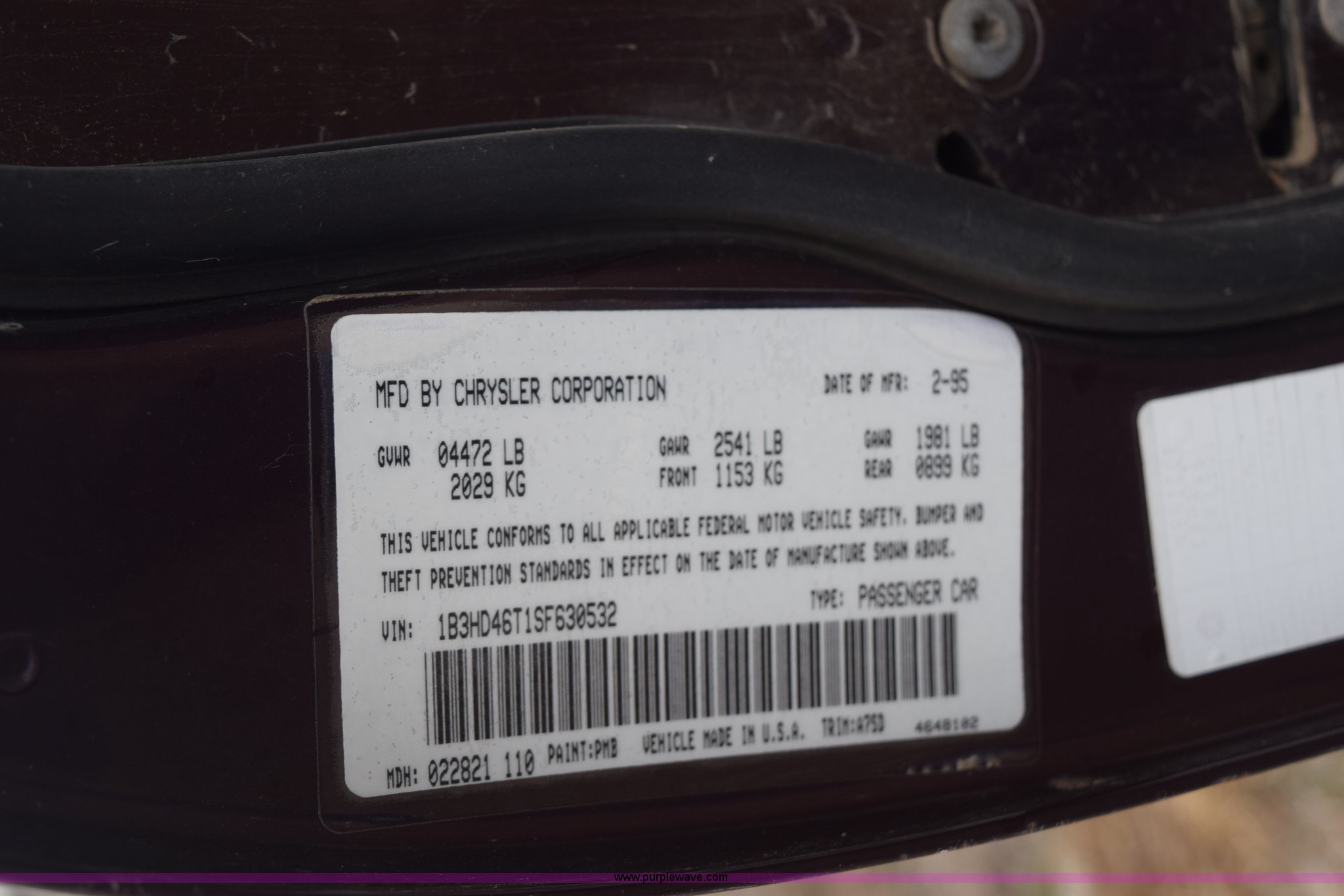 Purple Wave is selling a used Passenger Vehicle in Kansas. This item is a 1995 Dodge Intrepid with the following: 234,885 miles on odometer, 3.3L V6 OHV 12V gas engine, Automatic transmission, AC and heat, Tilt, Cruise, AM/FM/Cassette, Power windows, locks, and mirrors, Cloth interior, 225/60R16 tires, No keys, No battery, Interior/exterior cosmetic damage, Unknown operating condition, Unit# AV2014101